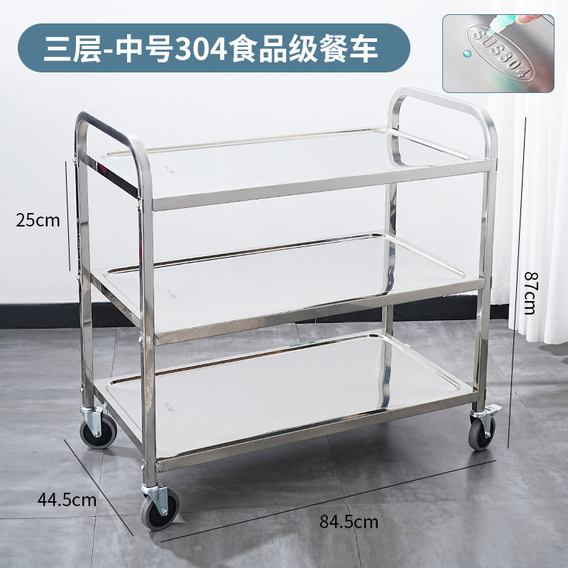 • 고급형: 두꺼운 소형 3단 다이닝 카트(사일런트 휠) 스테인리스 스틸