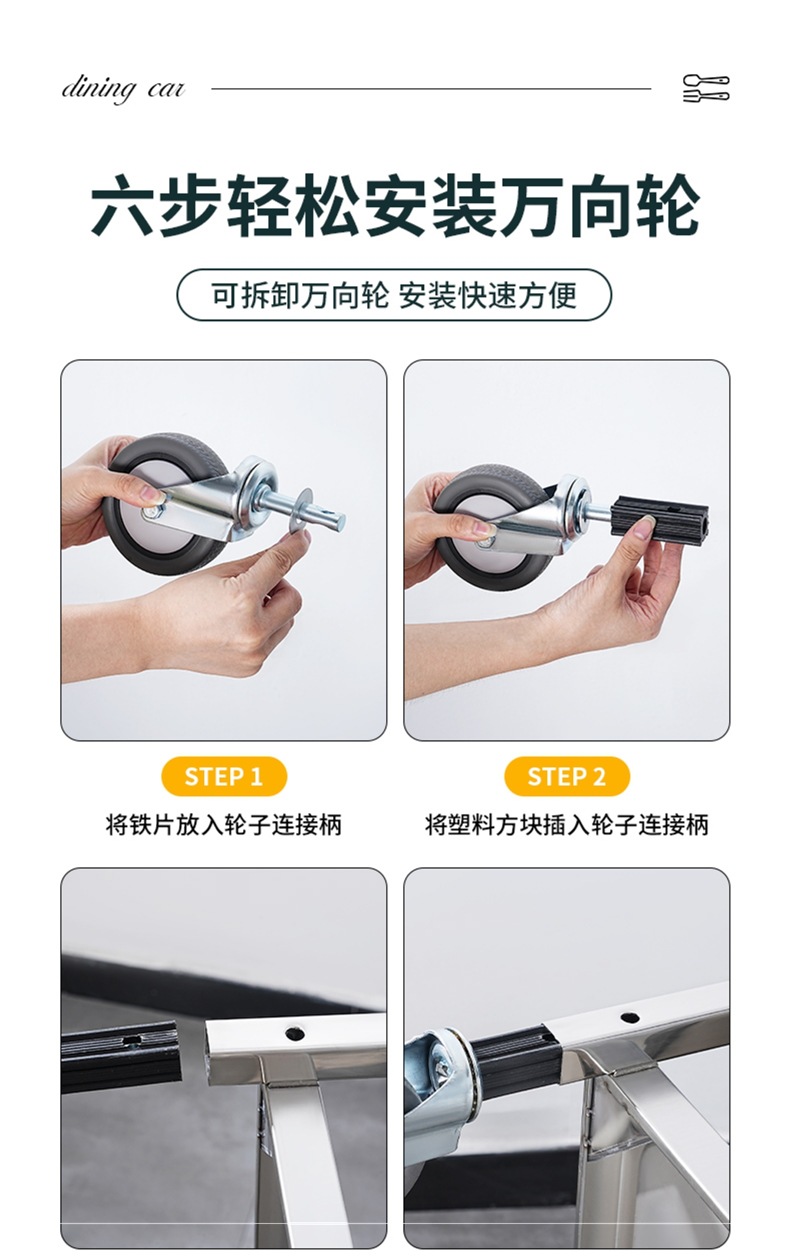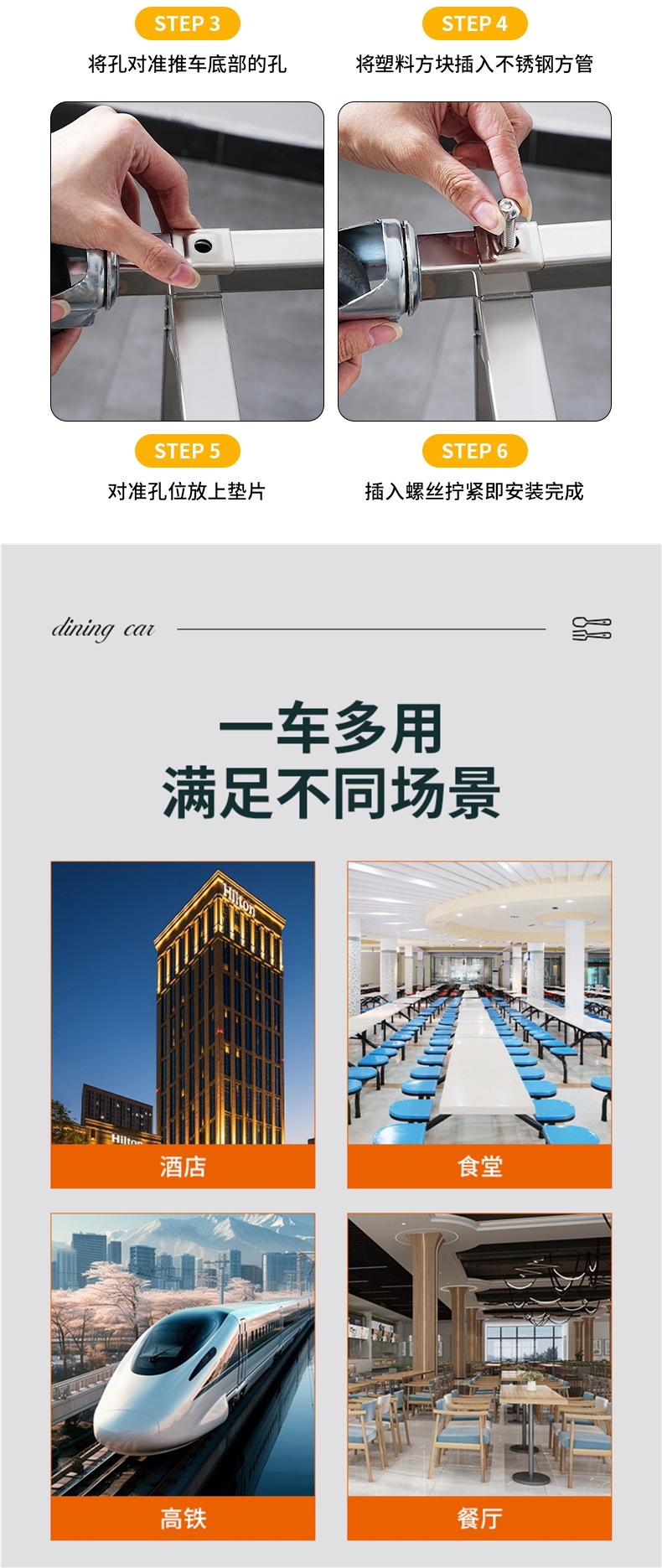 • 고급형: 두꺼운 대형 2층 다이닝 카트(사일런트 휠) 스테인리스 스틸