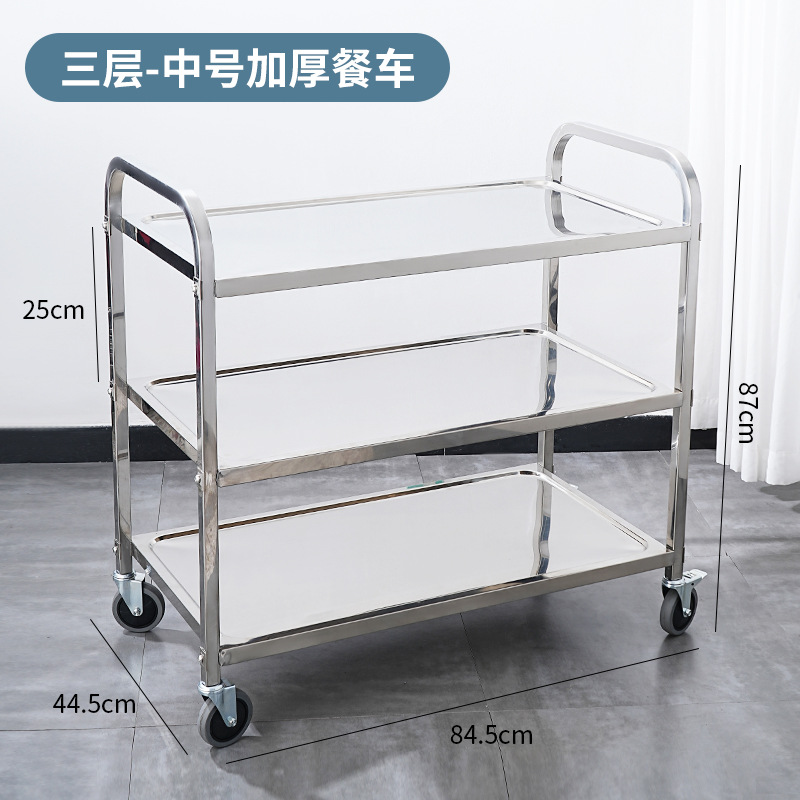 • 고급형: 두꺼운 중형 3단 다이닝 카트(사일런트 휠) 스테인리스 스틸