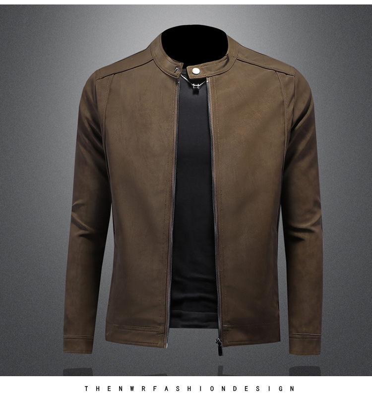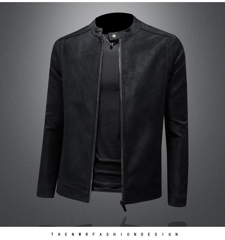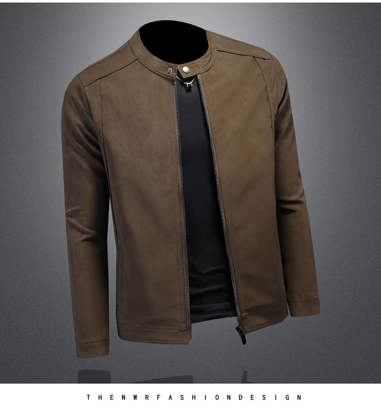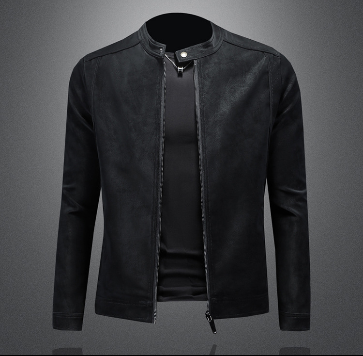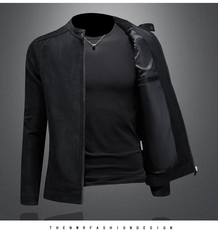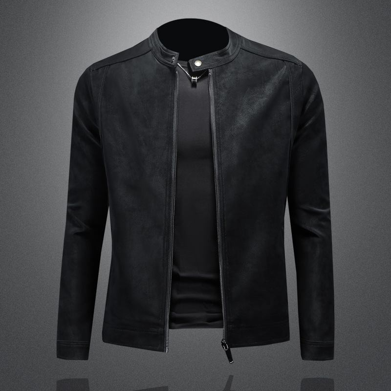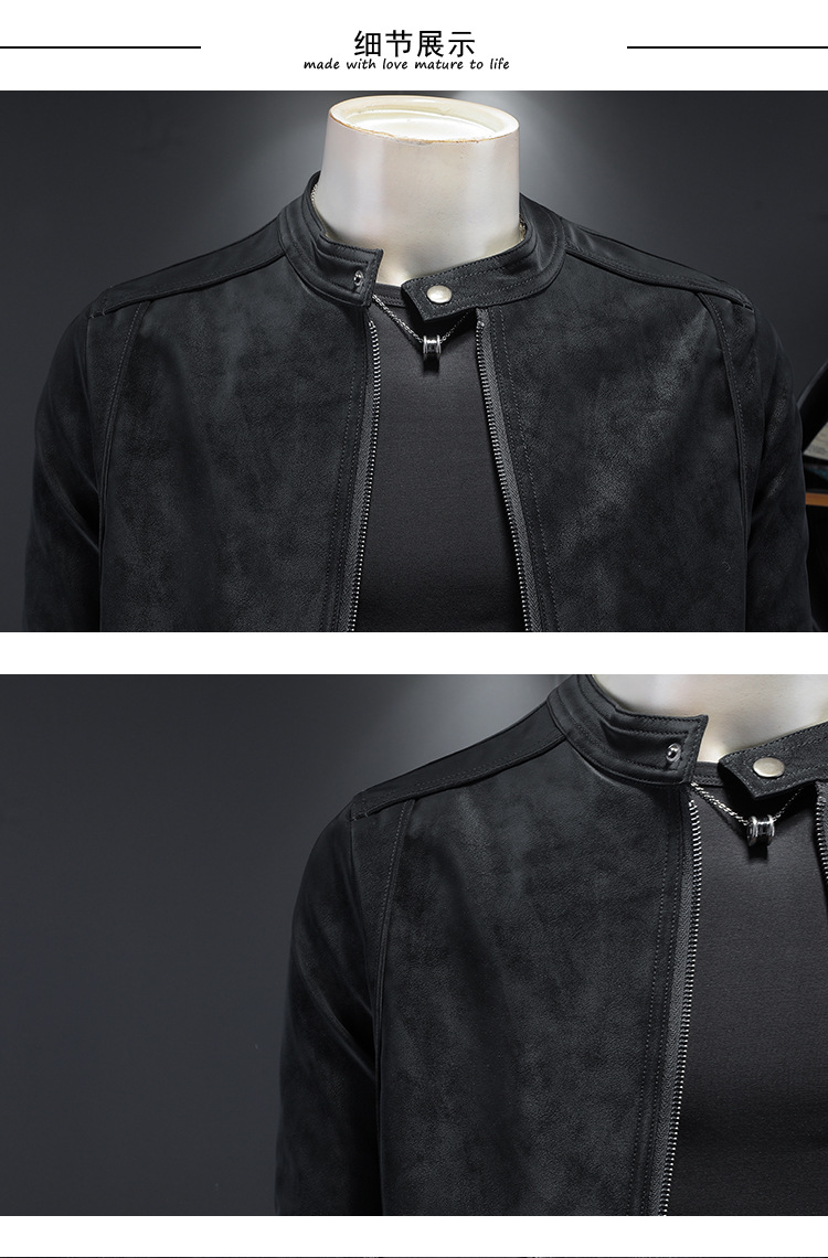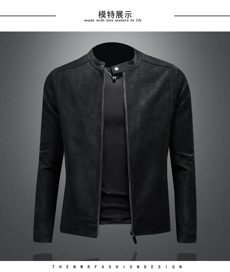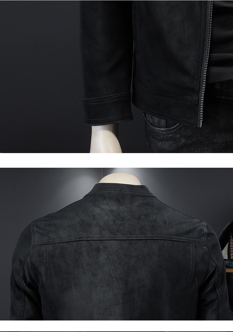 오토바이 스탠드 칼라 가죽 남성 2025 년 봄과 가을 새로운 안티 스웨이드 재킷 슬림 잘 생긴 패션 브랜드 코트 패션스토어 가기