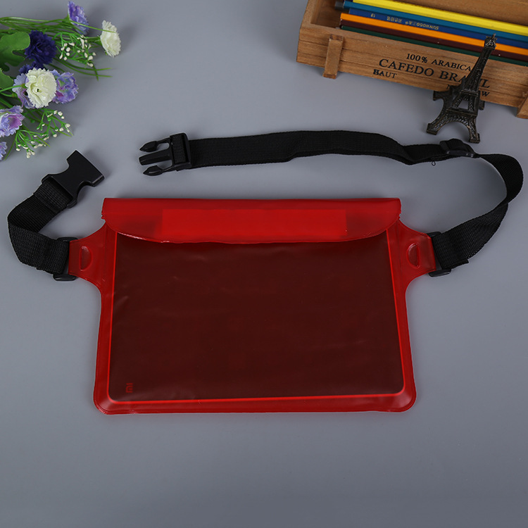 재고 휴대 전화 방수 허리 가방 pvc 3 방향 밀봉 방수 가방 야외 해변 남성과 여성의 단색 두꺼운 젖빛 가방스토어 가기