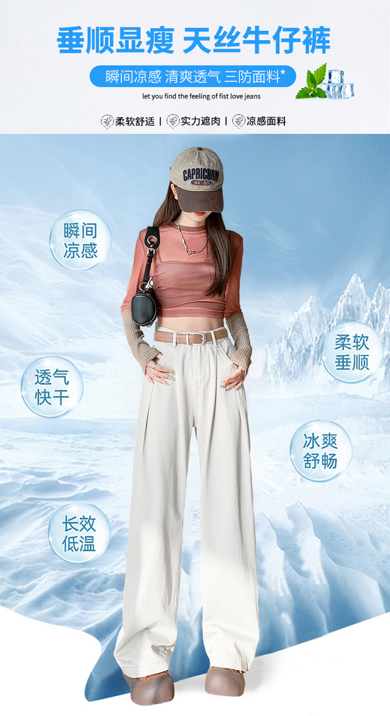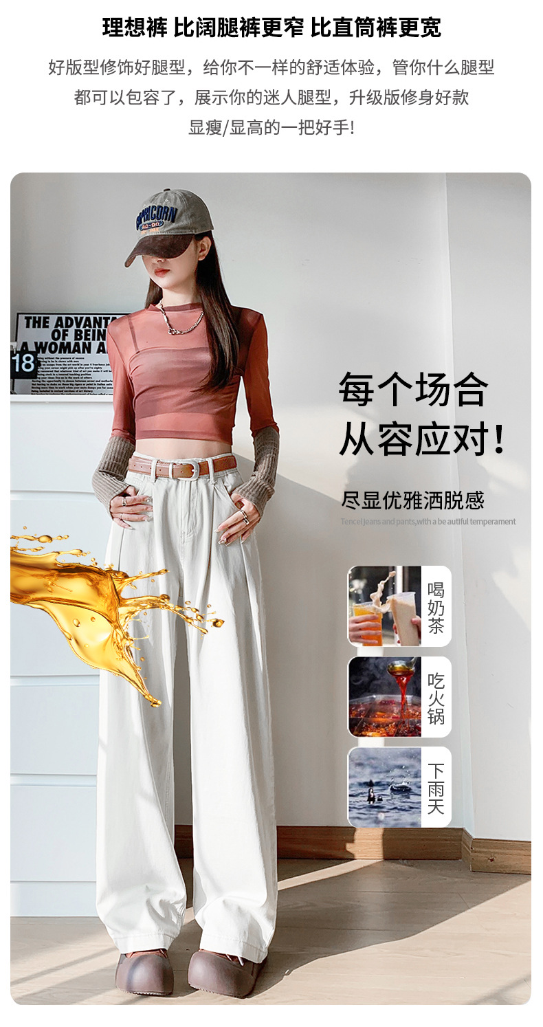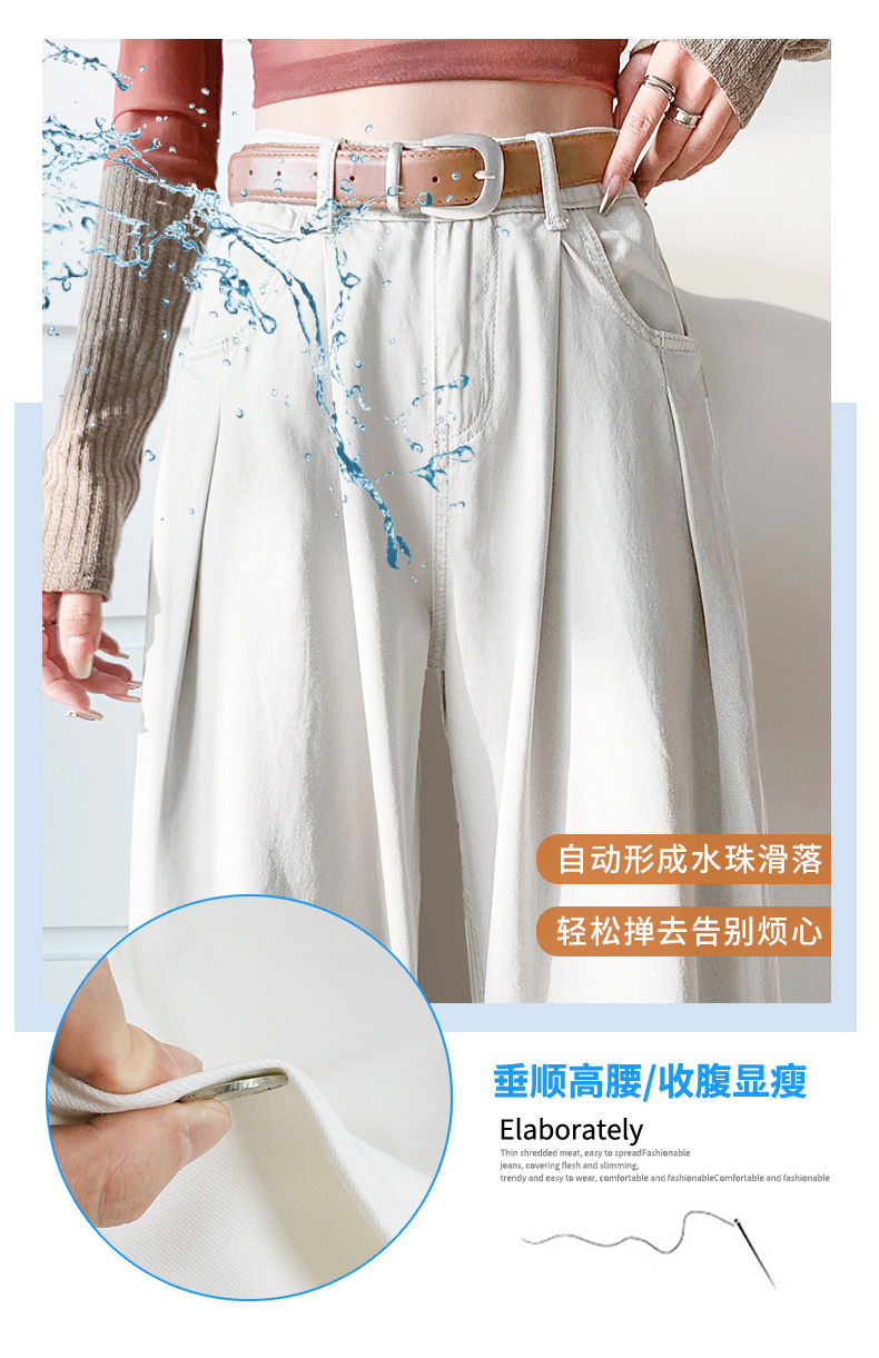 흰 청바지 여성의 3 가지 방지 패브릭 딥 스트레이트 팬츠 봄과 여름 2025 높은 허리 느슨한 넓은 다리 바지스토어 가기