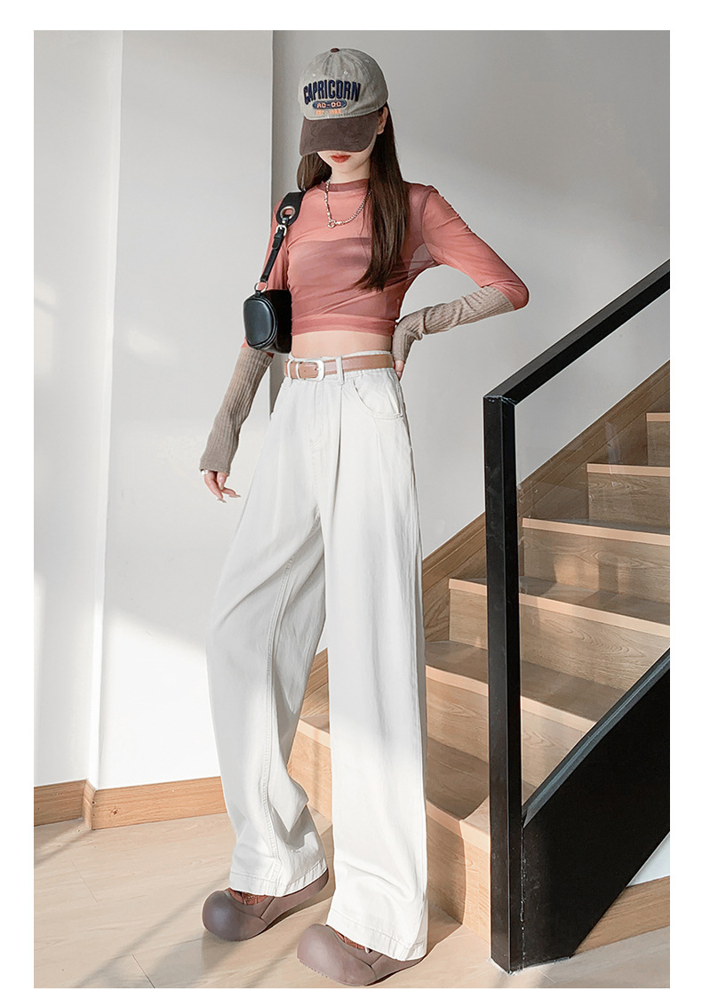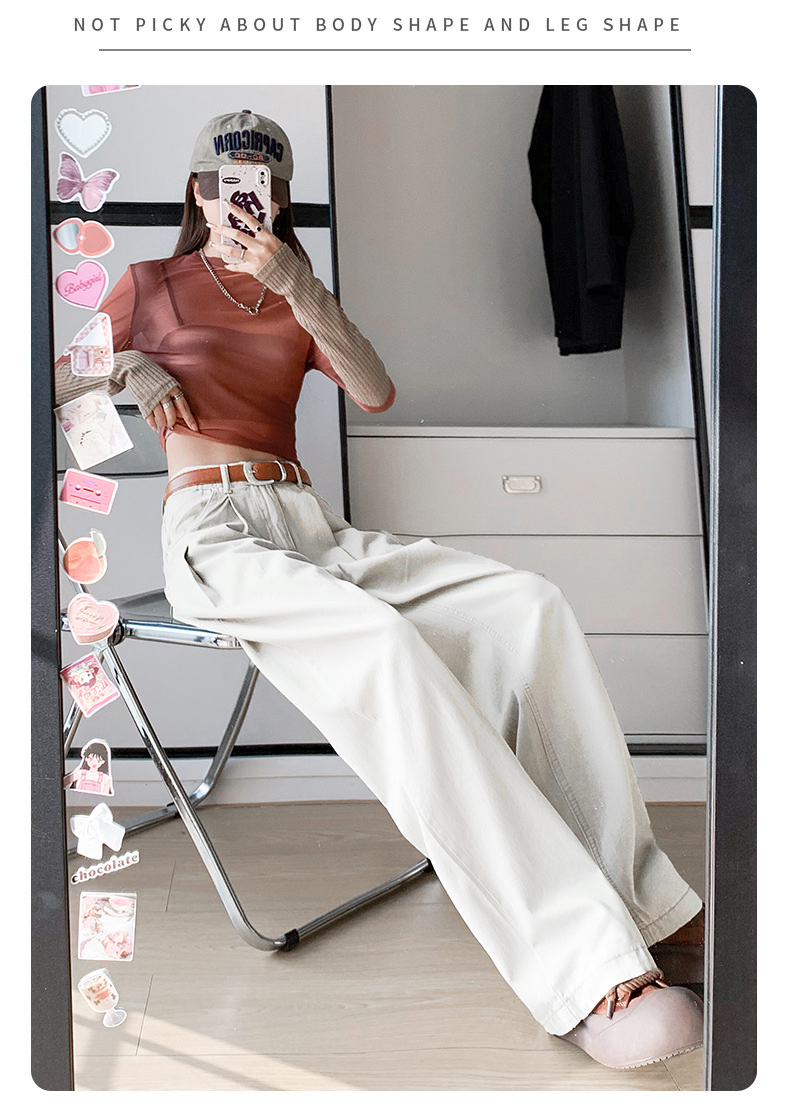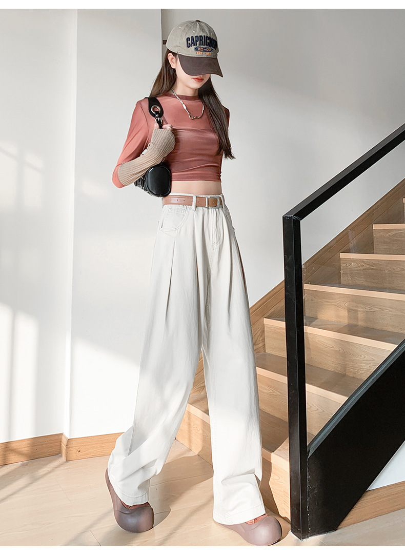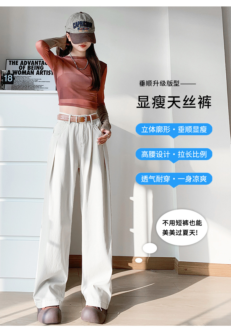 흰 청바지 여성의 3 가지 방지 패브릭 딥 스트레이트 팬츠 봄과 여름 2025 높은 허리 느슨한 넓은 다리 바지스토어 가기