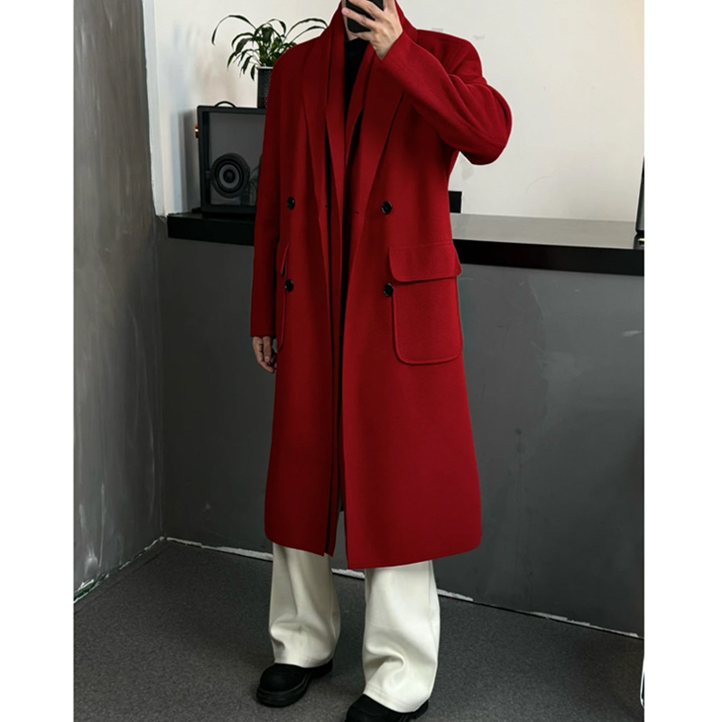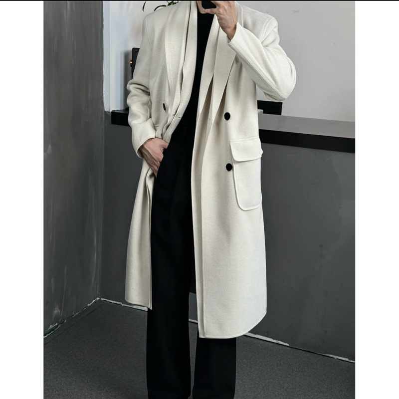 2025 년 봄과 가을 새로운 더블 칼라 남성과 여성을위한 중간 길이의 코트 무릎 위 코트 영국 모직 외부