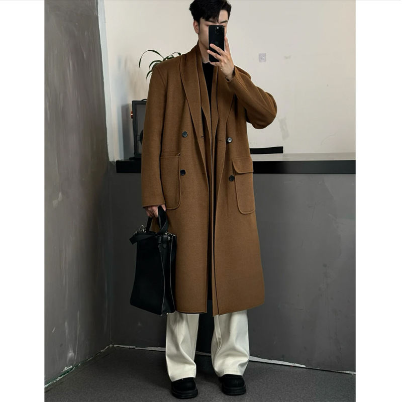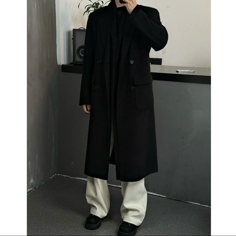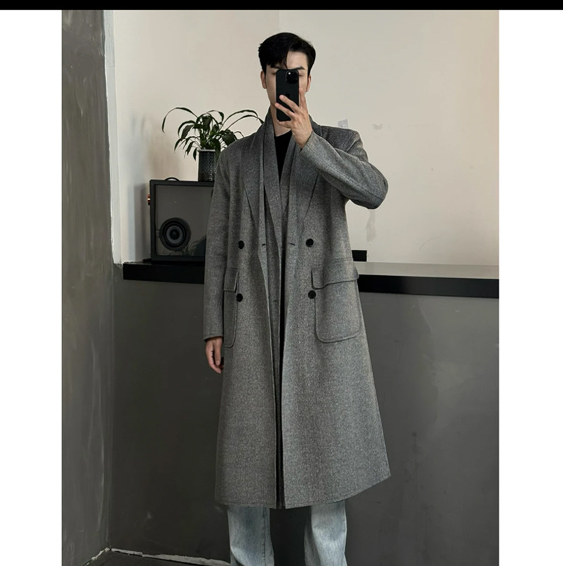 2025 년 봄과 가을 새로운 더블 칼라 남성과 여성을위한 중간 길이의 코트 무릎 위 코트 영국 모직 외부스토어 가기