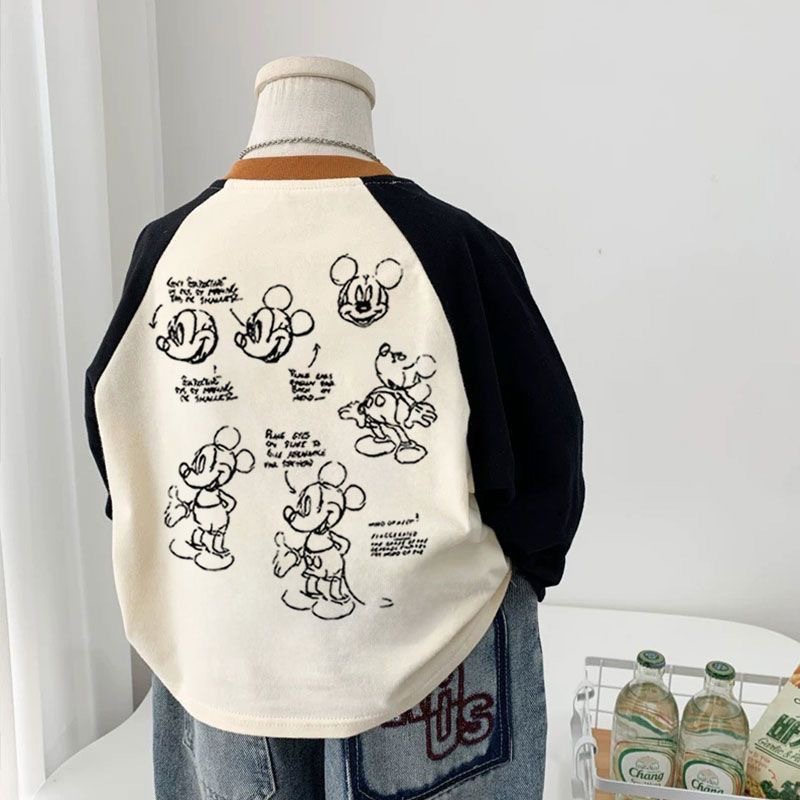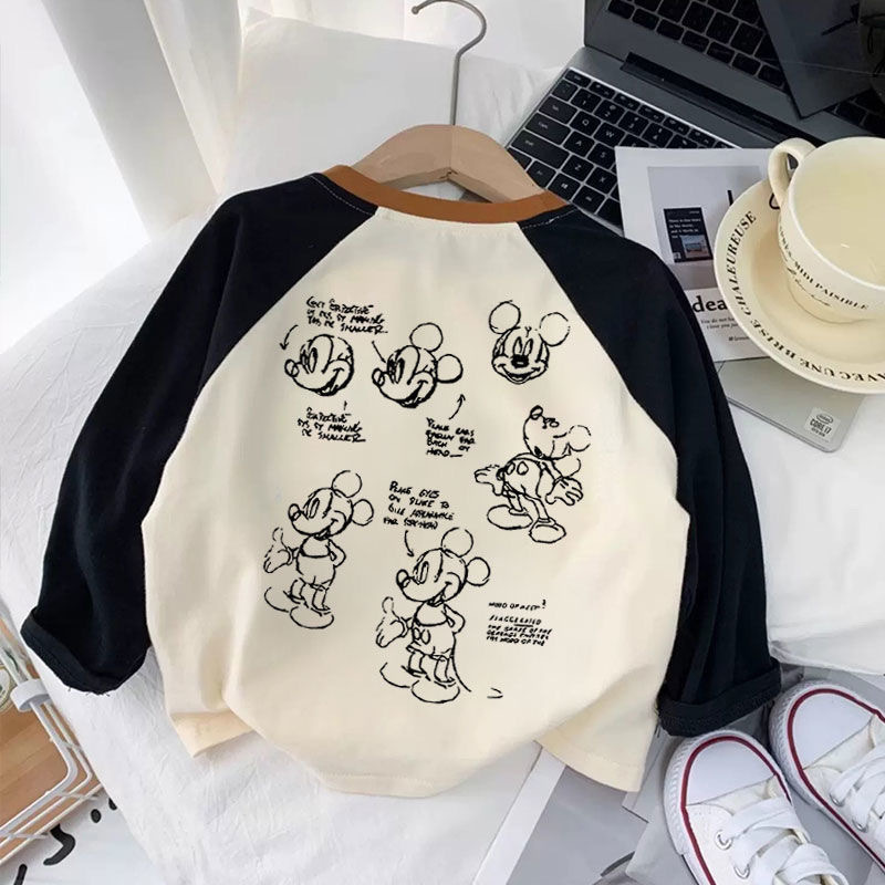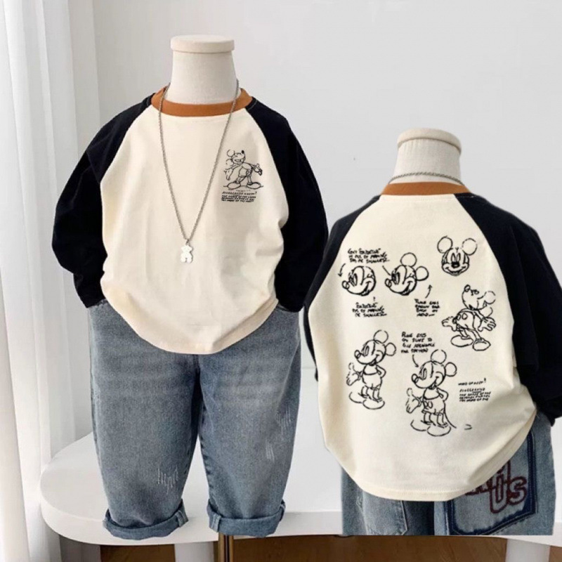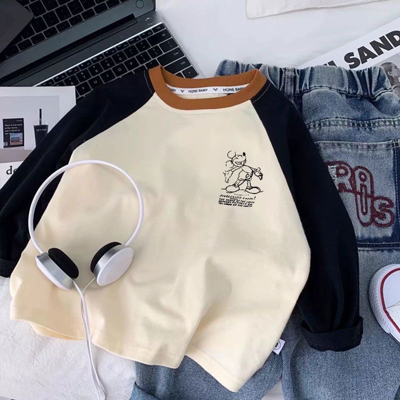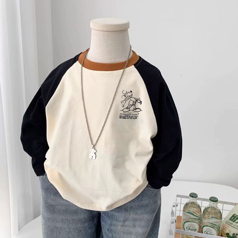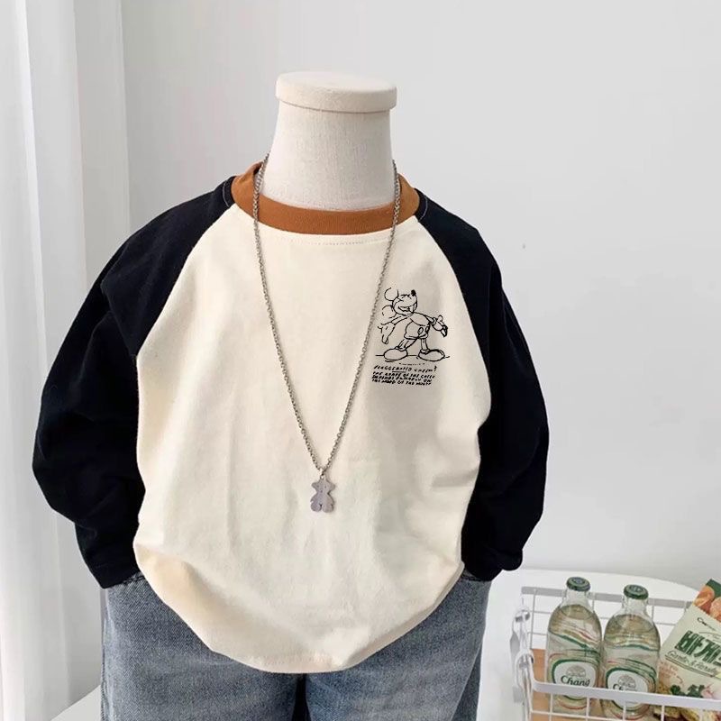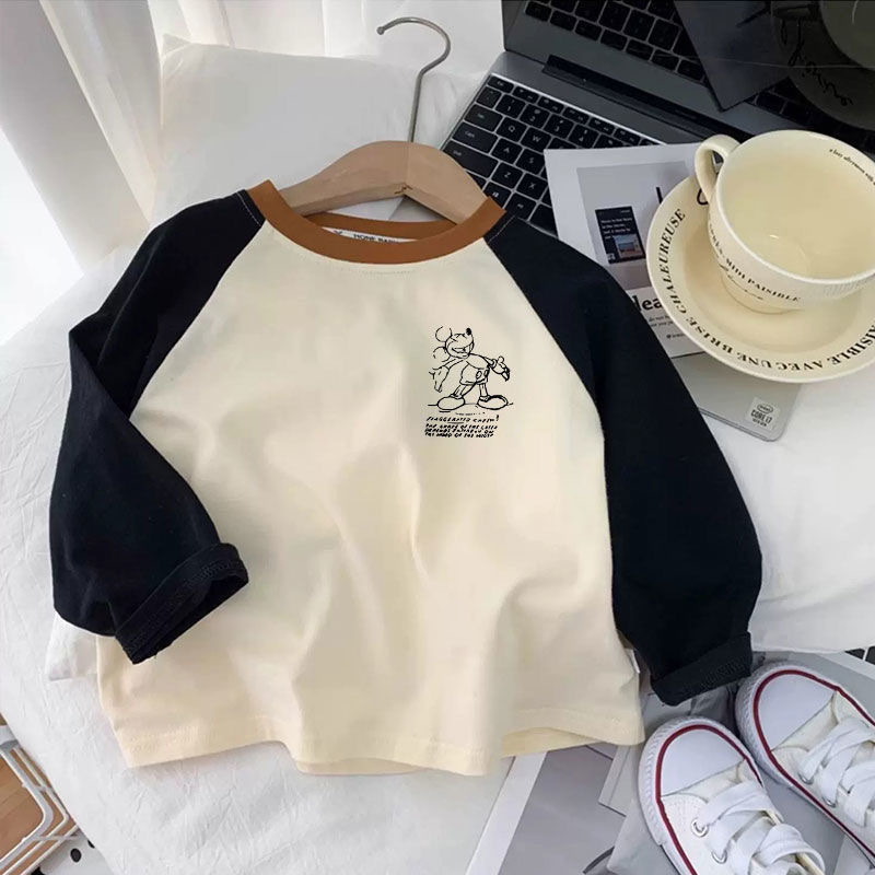 소년의 새로운 Raglan 소매 티셔츠 면 긴 소매베이스 셔츠 대조 색 봄과 가을 만화 아기 서양식 탑스토어 가기
