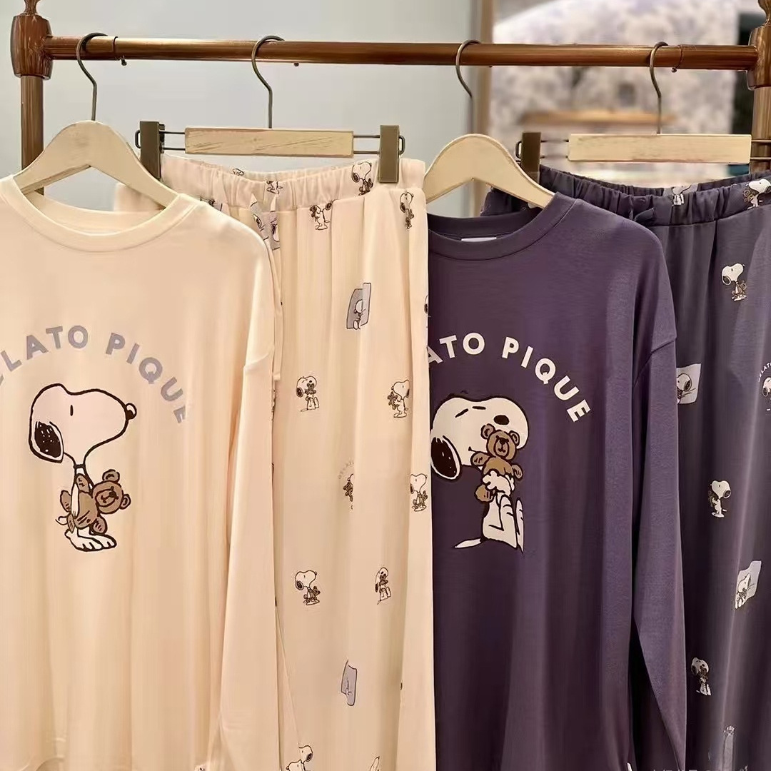 GP 소프트 아이스크림 봄과 여름 새로운 잠옷 여성 스누피 긴 소매 커플 남녀 홈 의류 세트