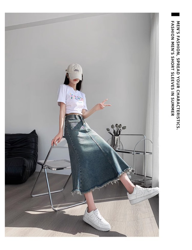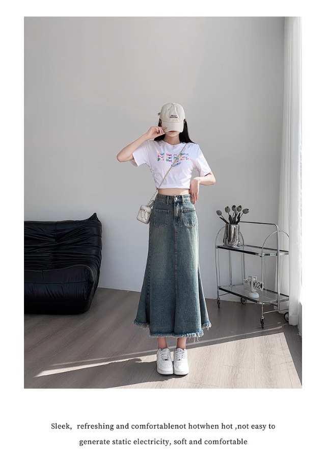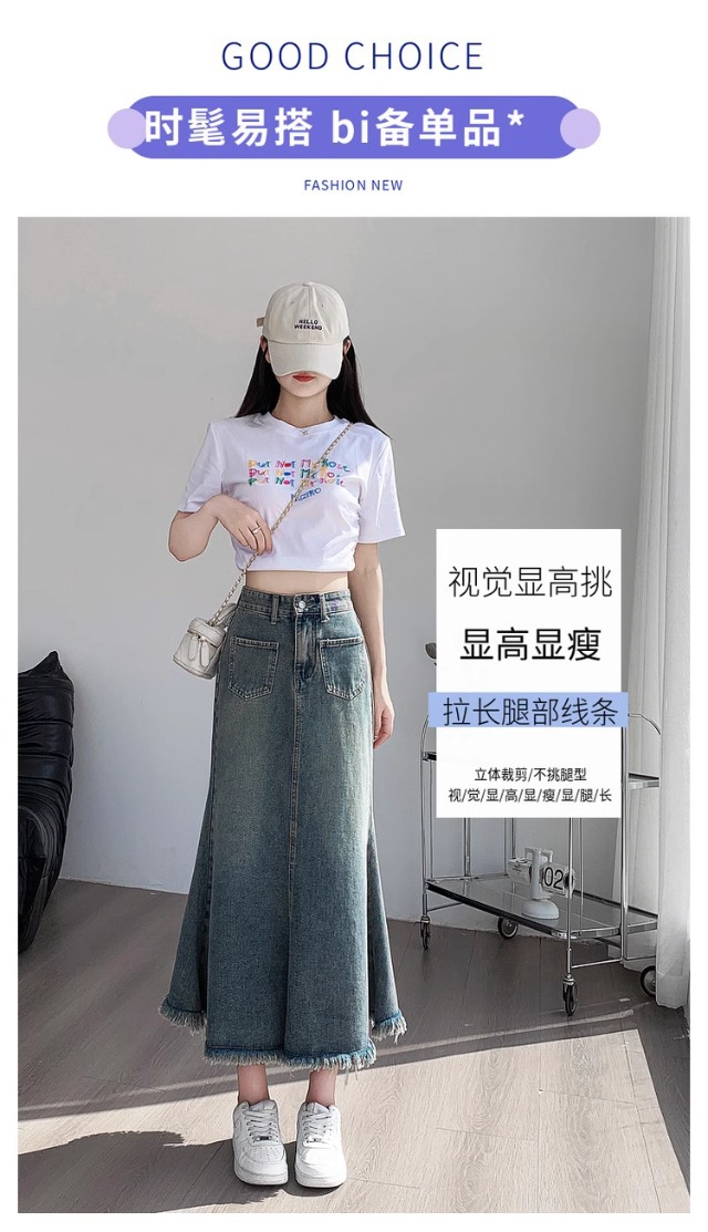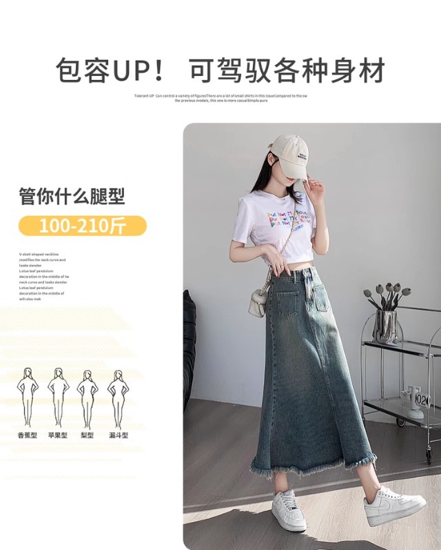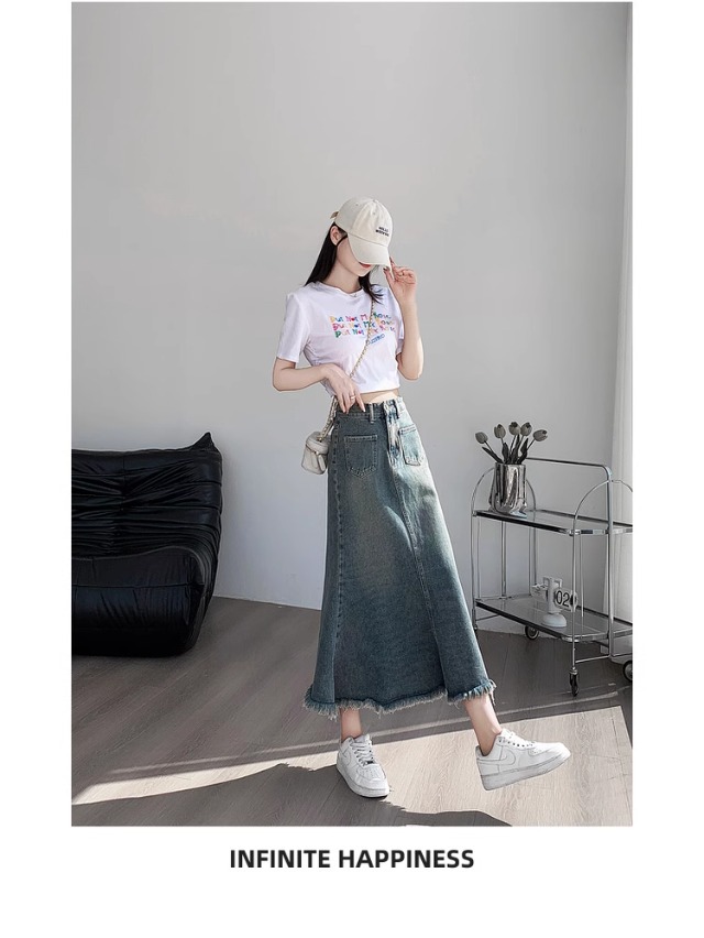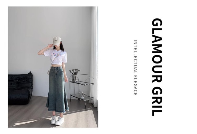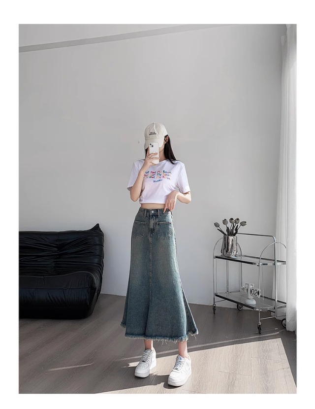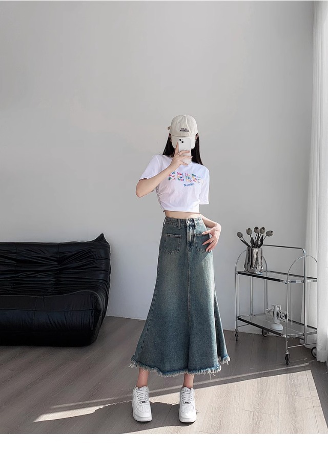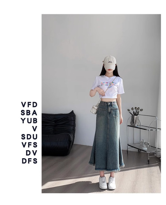 빈티지 데님 스커트 여자 2025 유행 올매치 새로운 도착 봄 및 가을 모직 A 라인 팔 피스트테일 중간 길이 스커트
