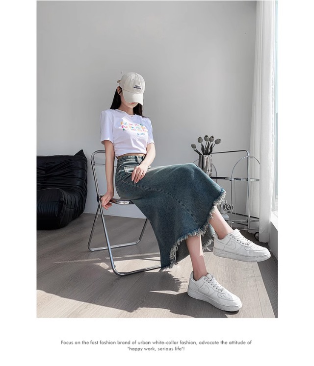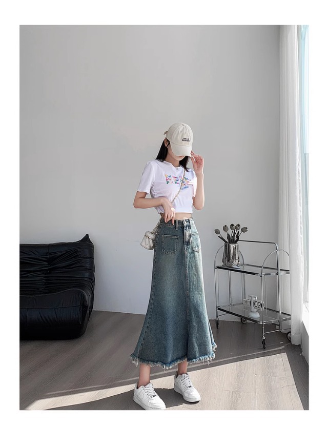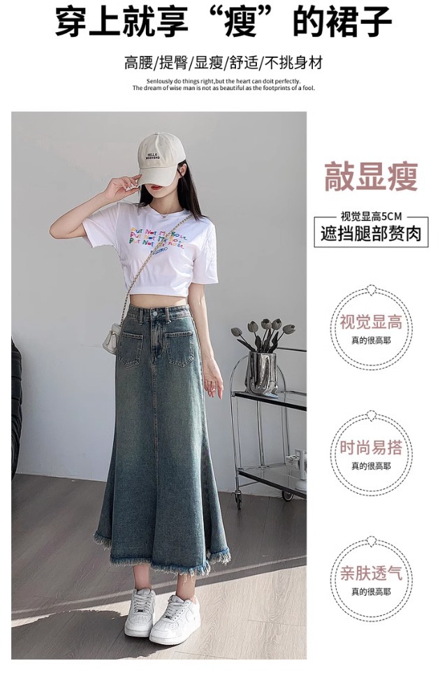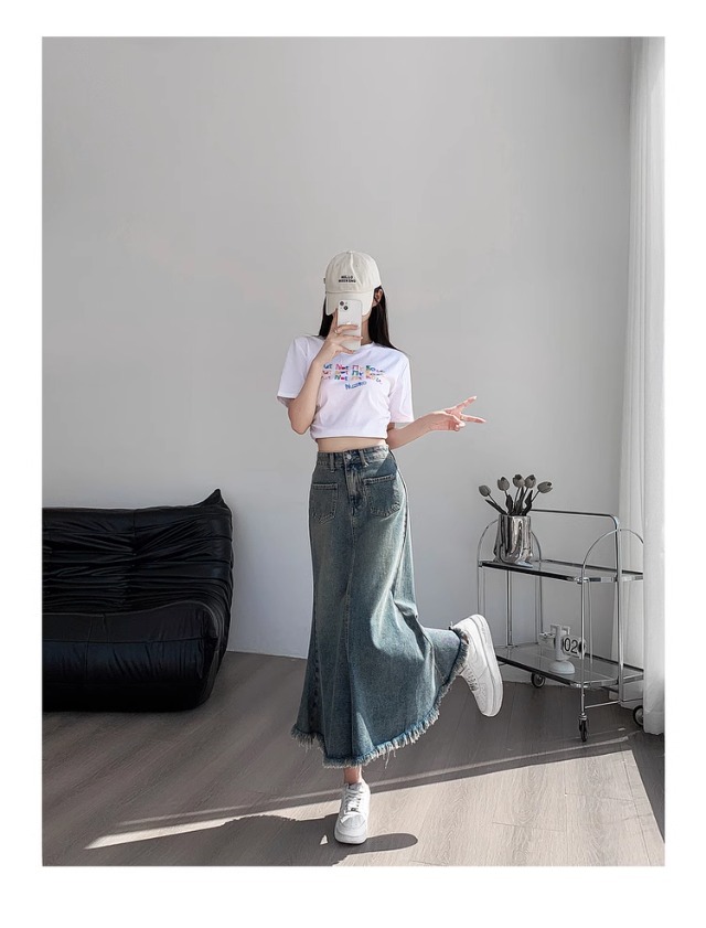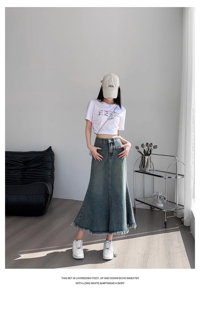 빈티지 데님 스커트 여자 2025 유행 올매치 새로운 도착 봄 및 가을 모직 A 라인 팔 피스트테일 중간 길이 스커트스토어 가기