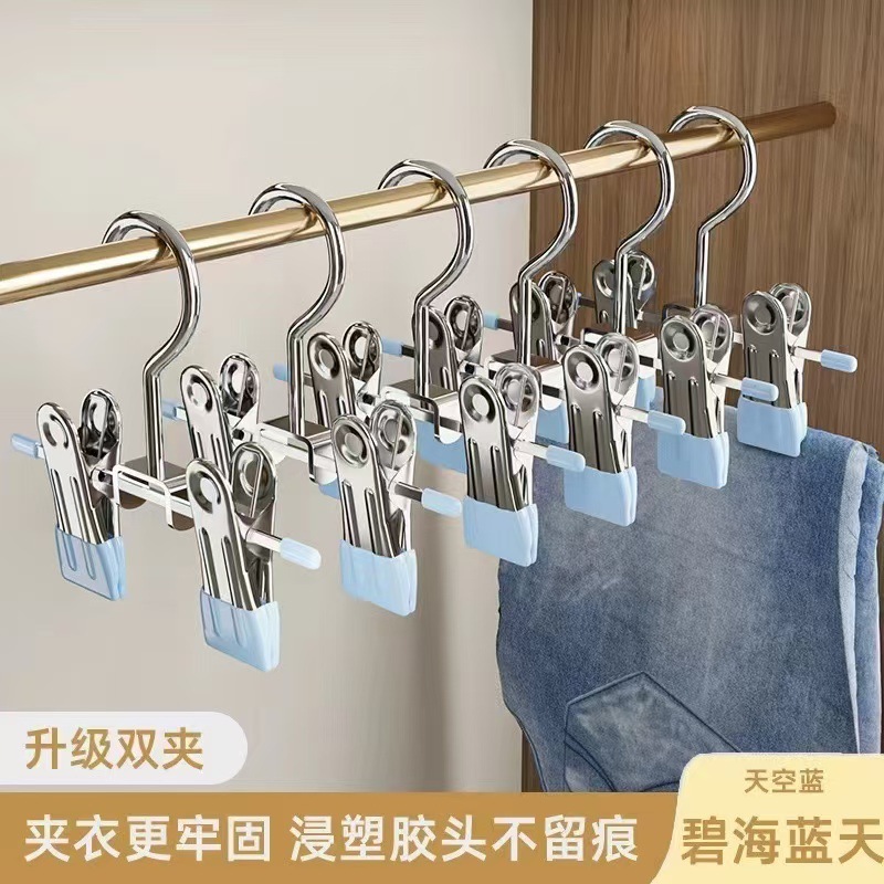 새로운 다기능 클립 후크 가정용 원활한 바지 랙 스테인레스 스틸 바지 건조 클립 휴대용 어린이 플랫 바지 클립