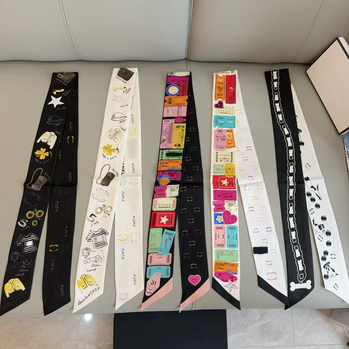 Xiaoxiang 실크 스카프 넥타이 팩 핸들 리본 폴카 도트 다이아몬드 격자 헤어 밴드 활 머리 루프 뽕나무 실크 스카프