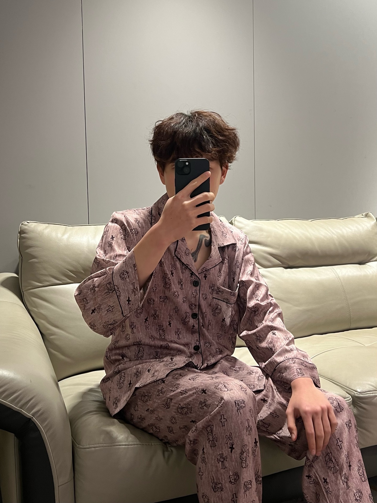 봄 2025 새로운 악 KT 모방 실크 파자마 여성용 옷깃 아이스 실크 캐주얼 편안한 커플 홈 의류 남성스토어 가기