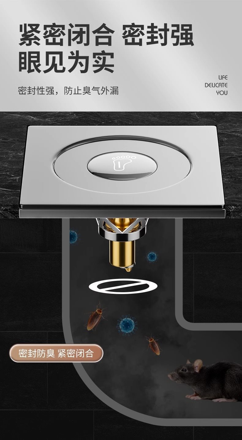 바운스 바닥 배수 탈취제 화장실 하수도 유니버설 반향 냄새 누출 폐쇄 프레스 바닥 배수 커버 풋 타입