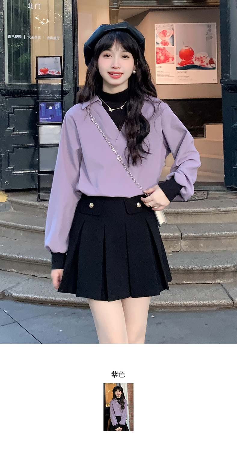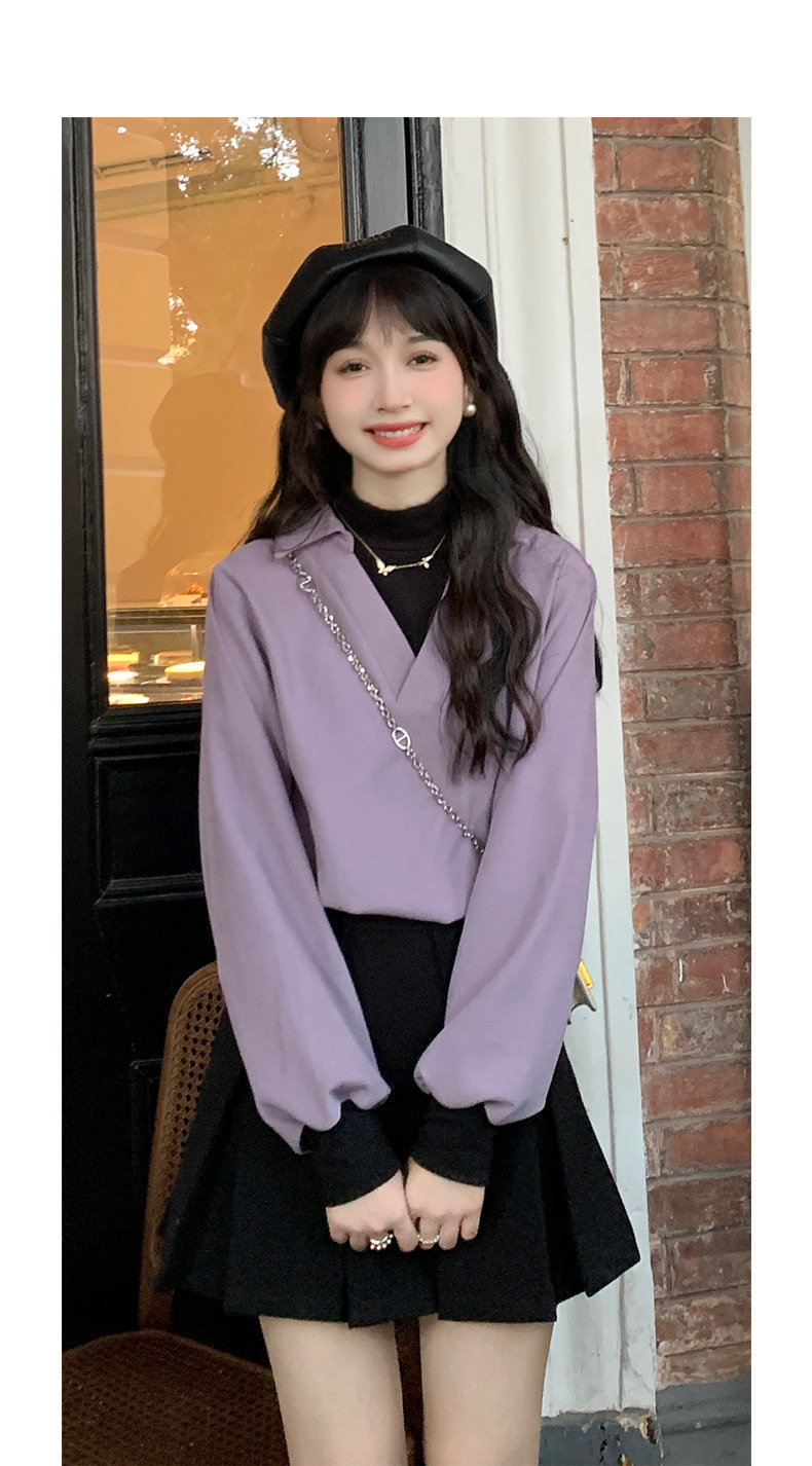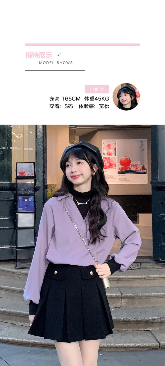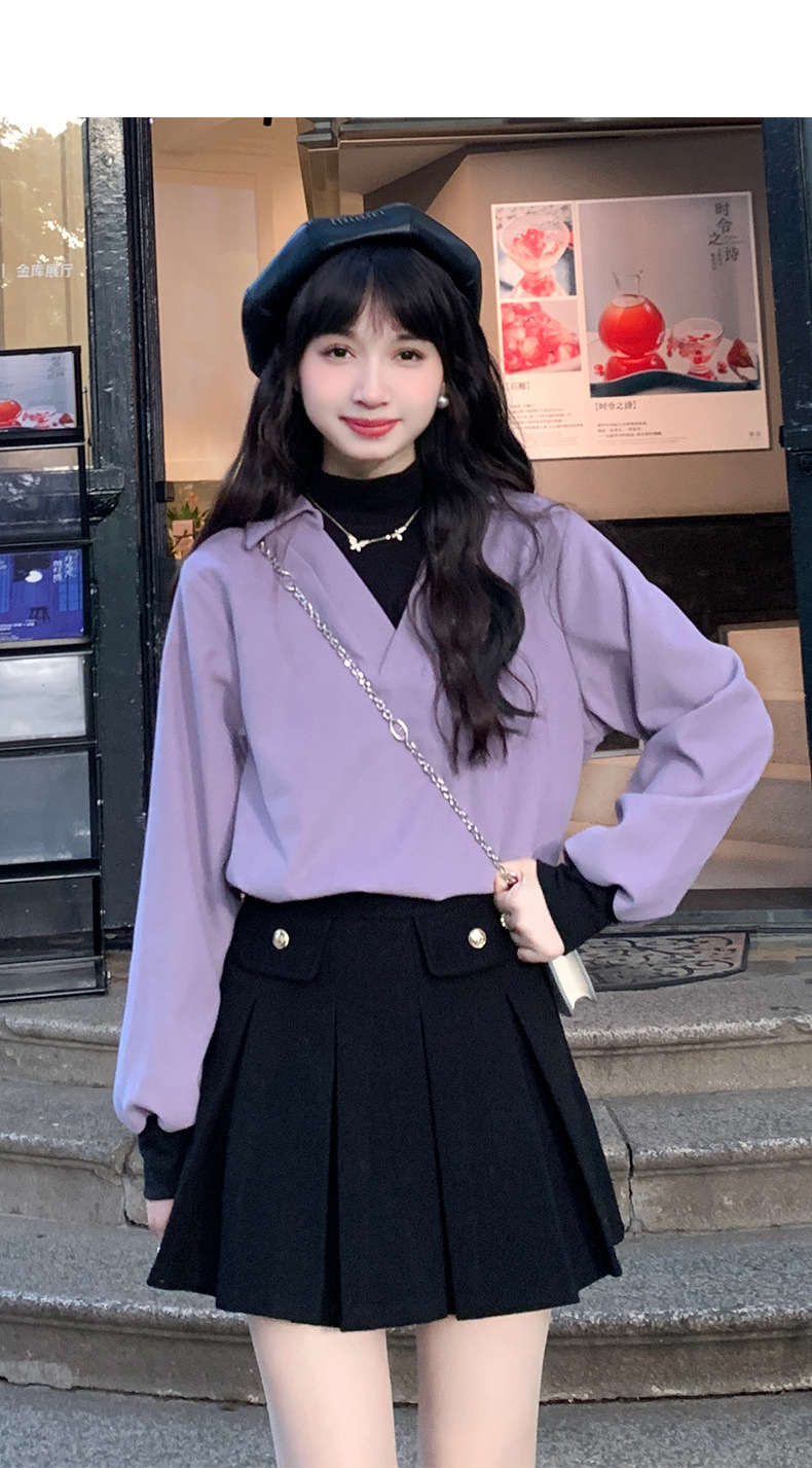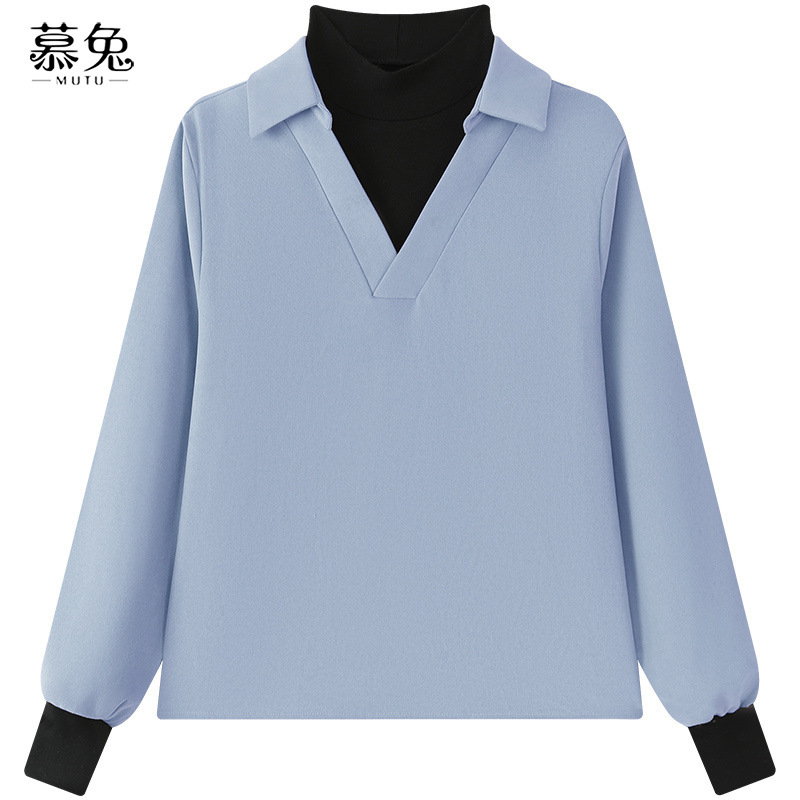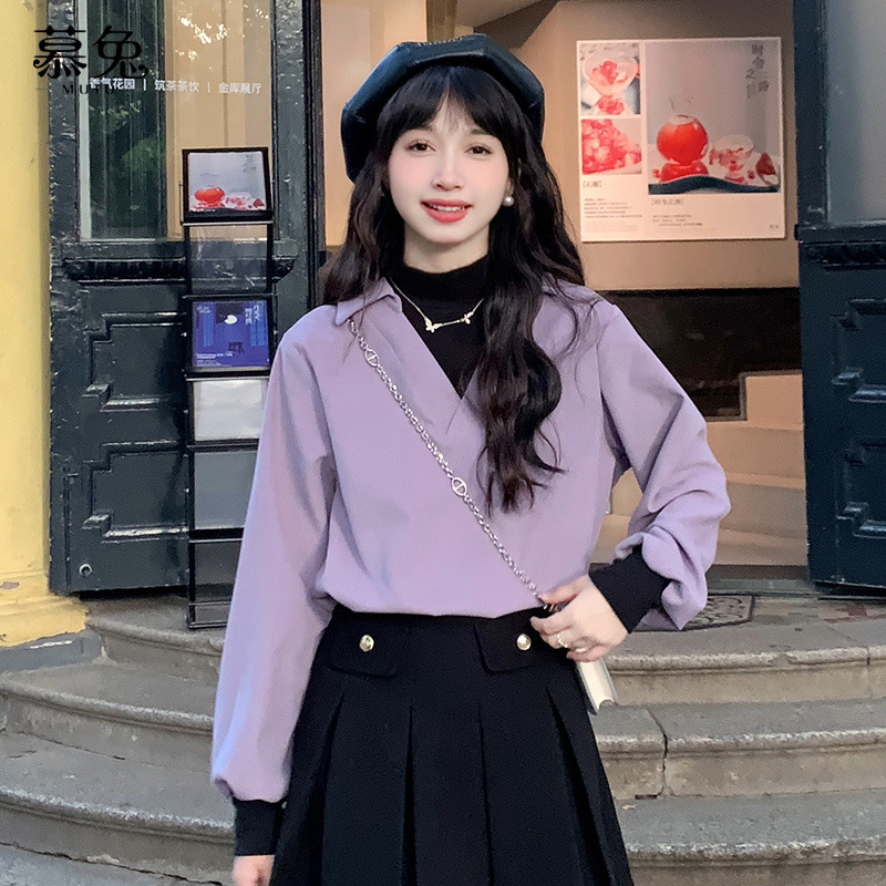 Mu Rabbit 프렌치 레트로 가짜 투피스 긴팔 셔츠 여성의 가을 2024 새로운 디자인 감각 느슨한 틈새 내부 탑