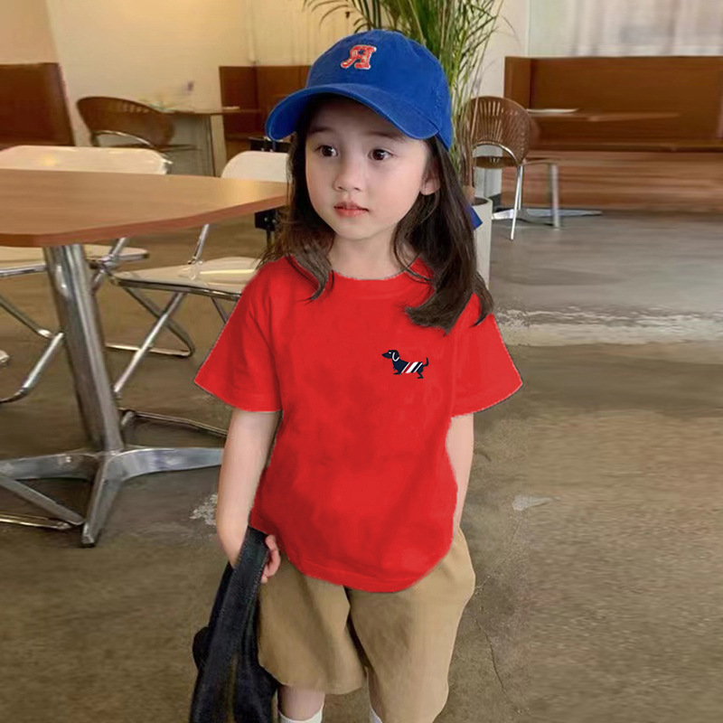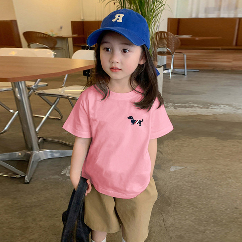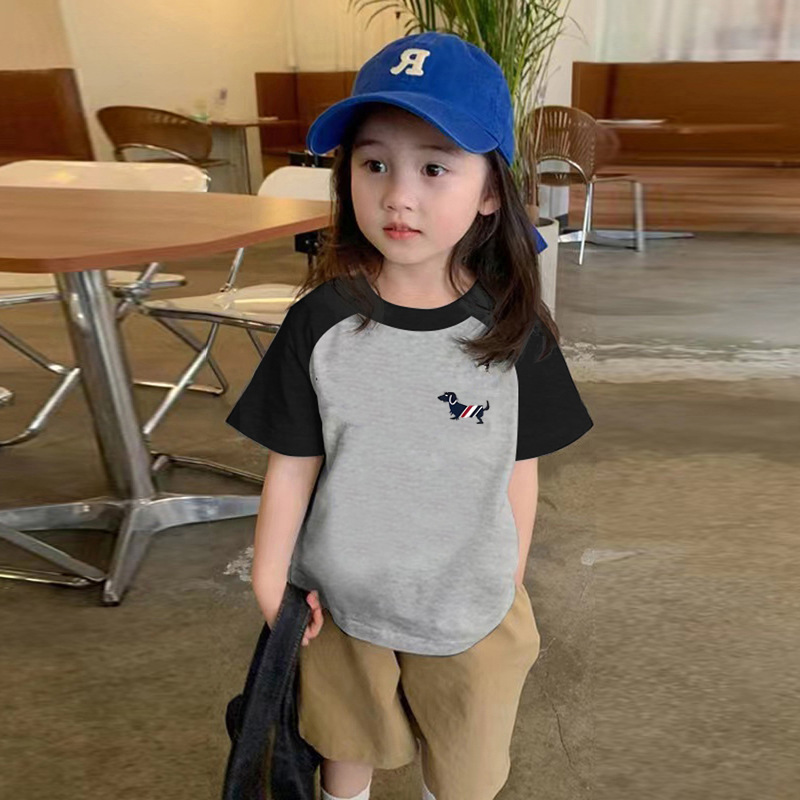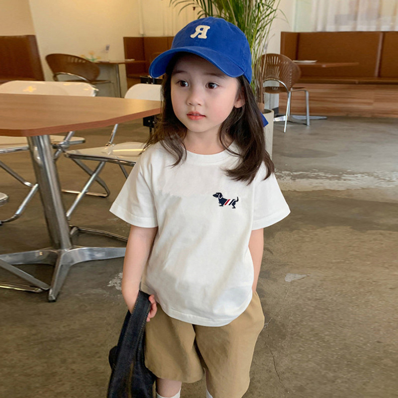 국경 간 어린이 코튼 화이트 반팔 티셔츠 여름 새 소년과 소녀 패션 브랜드 라운드 넥 캐주얼 Ins 반소매 탑스토어 가기