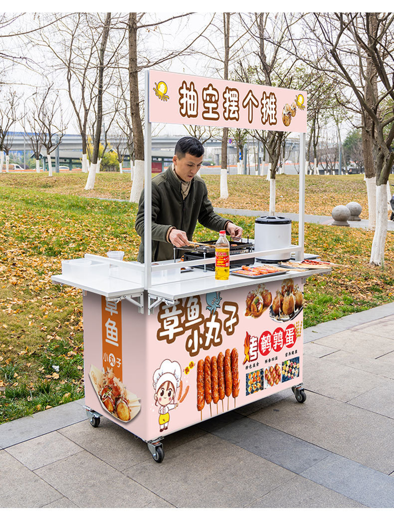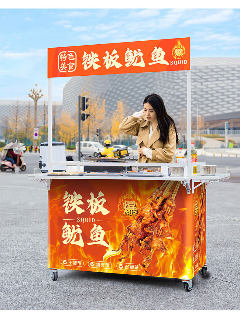 Net Red Night Market Stall 트롤리 로스트 소시지 바베큐 Guandong 요리 접이식 이동식 상업용 스톨 스낵 다이닝 카