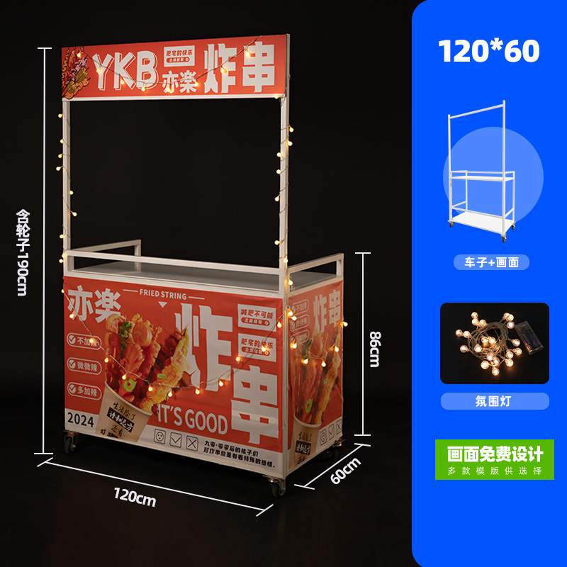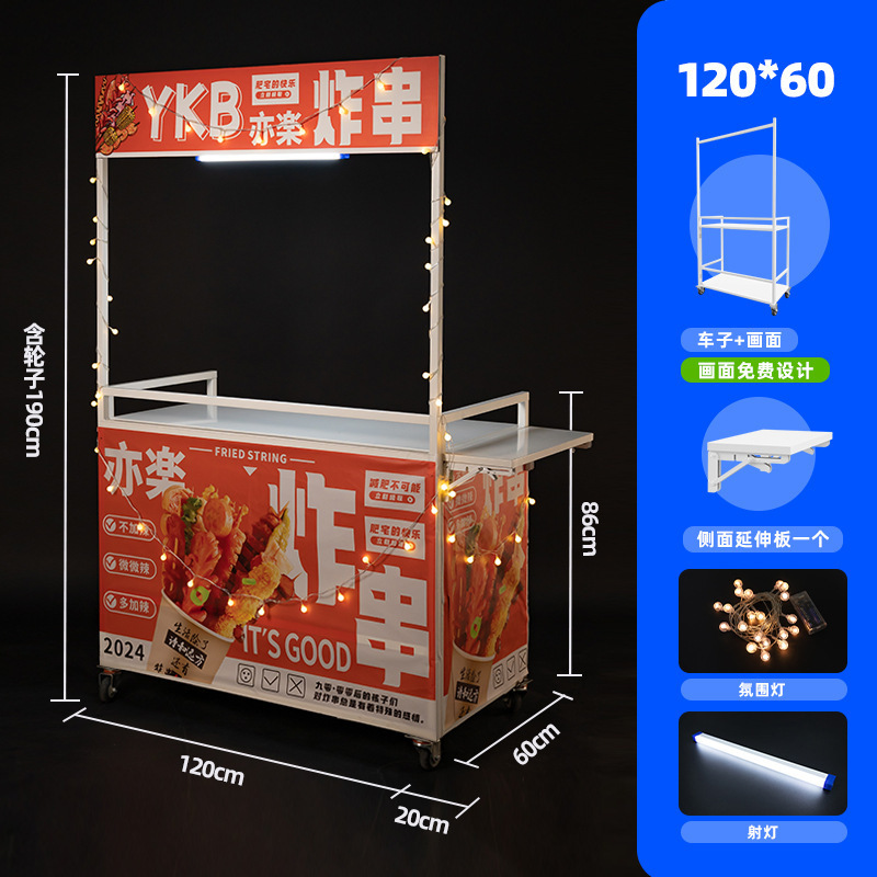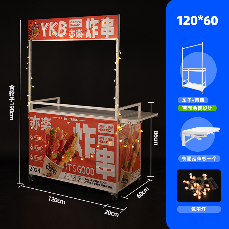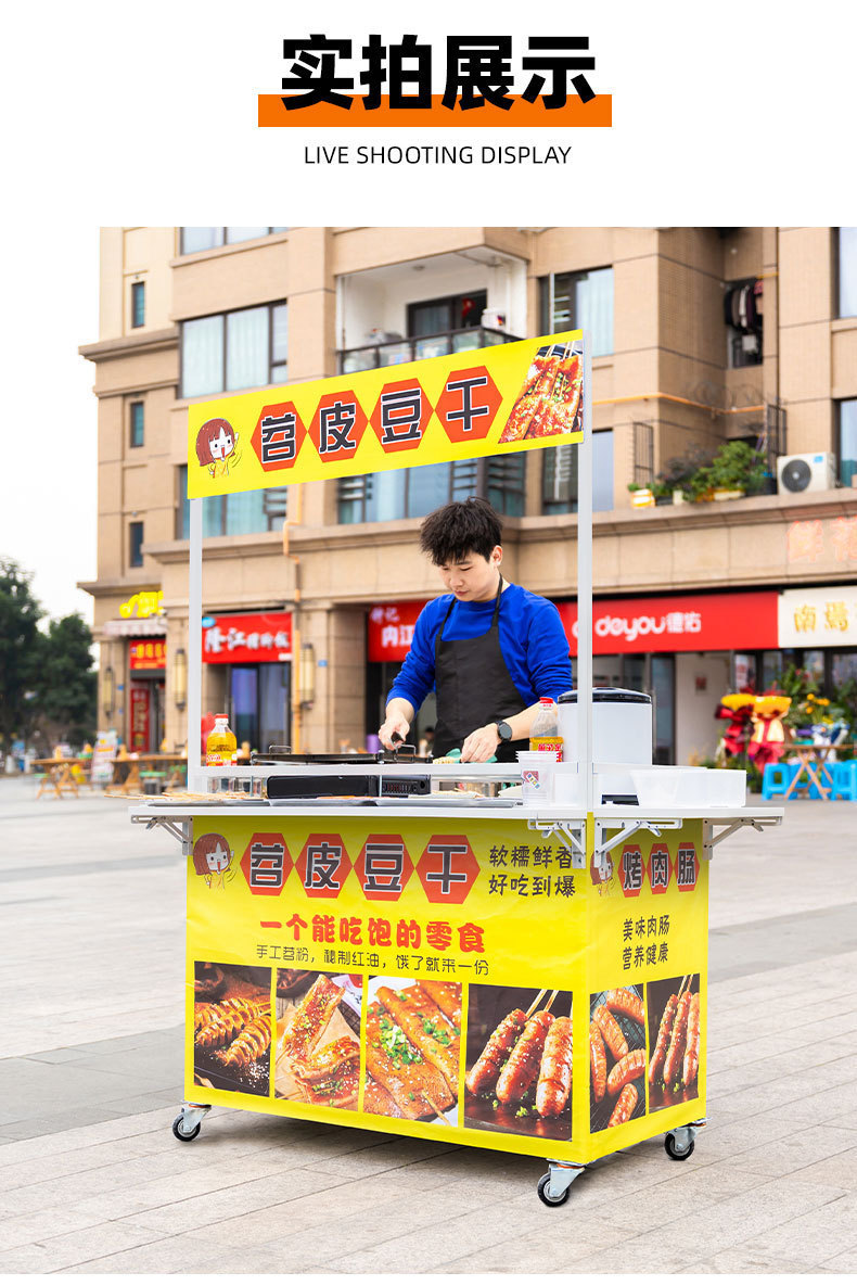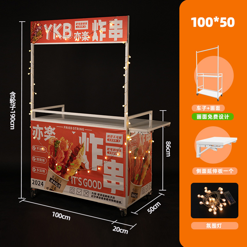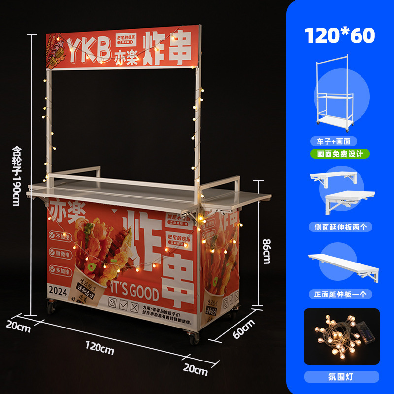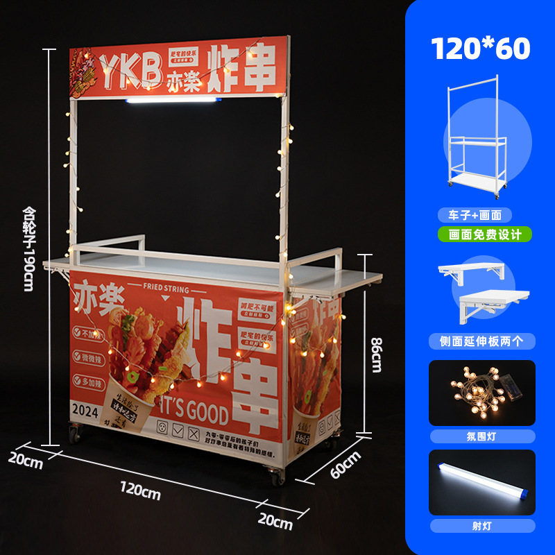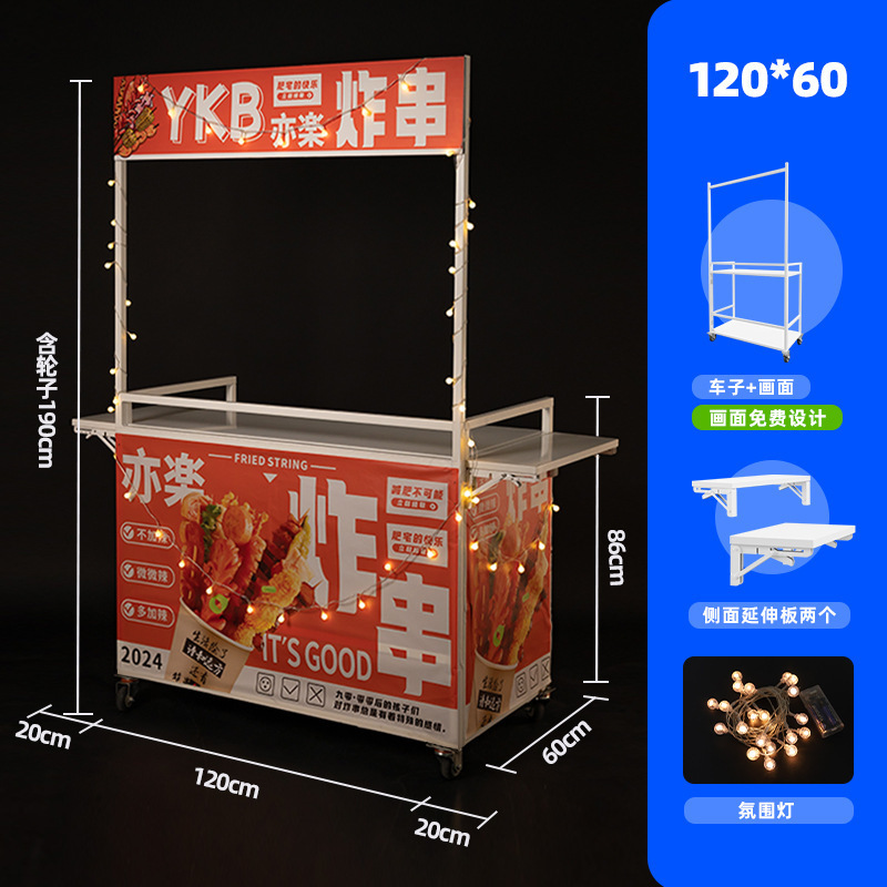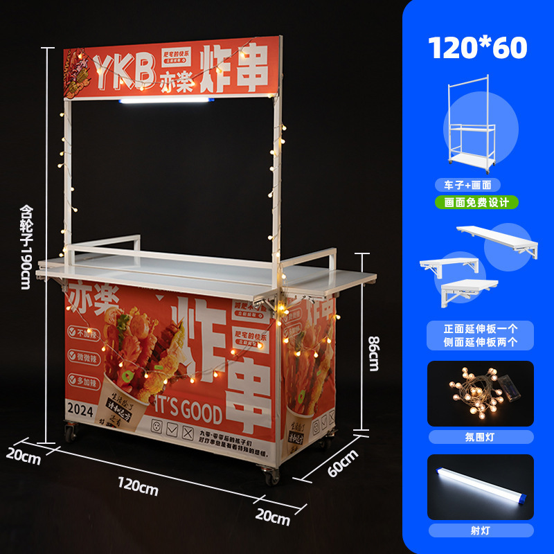Net Red Night Market Stall 트롤리 로스트 소시지 바베큐 Guandong 요리 접이식 이동식 상업용 스톨 스낵 다이닝 카스토어 가기