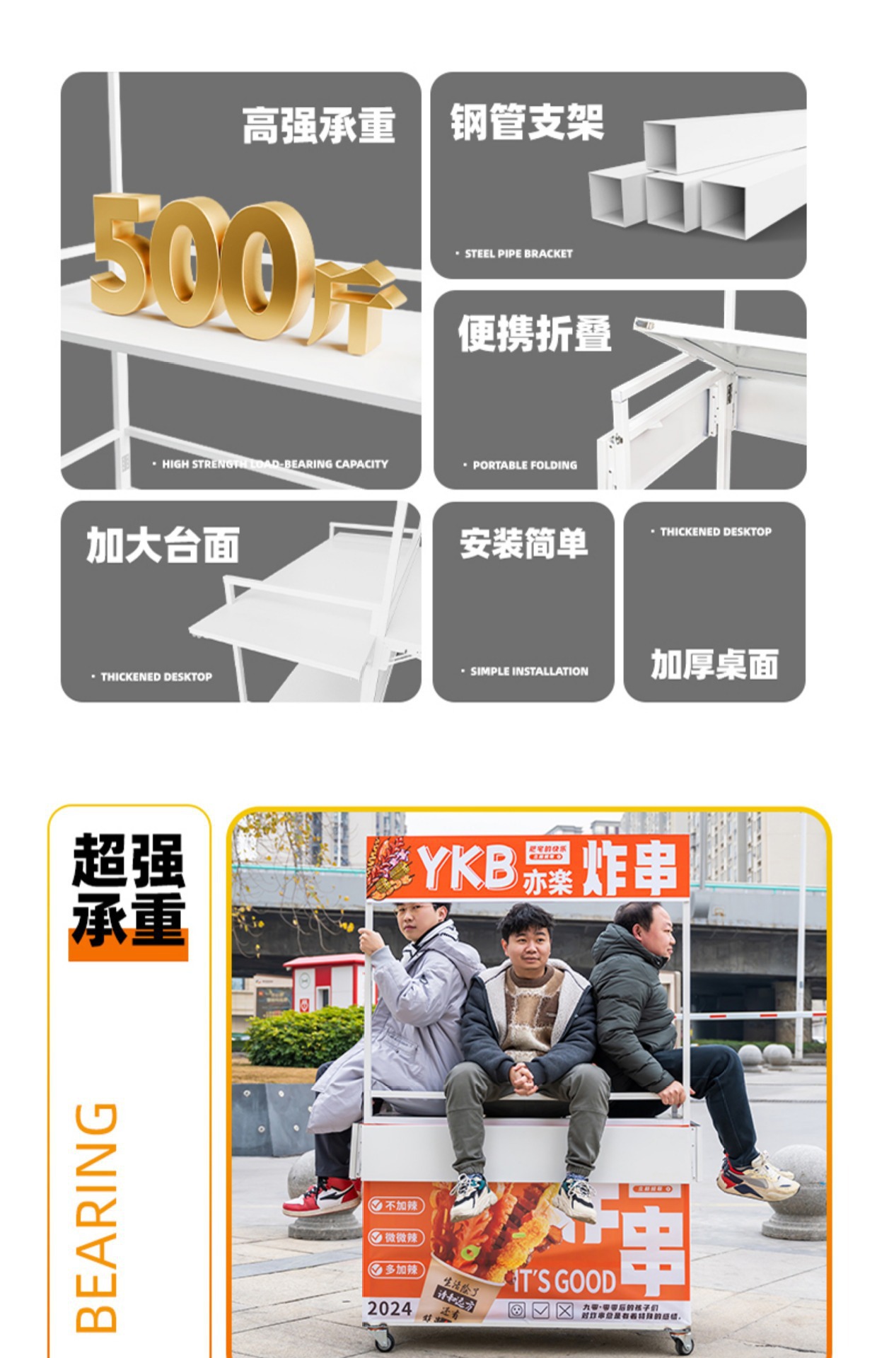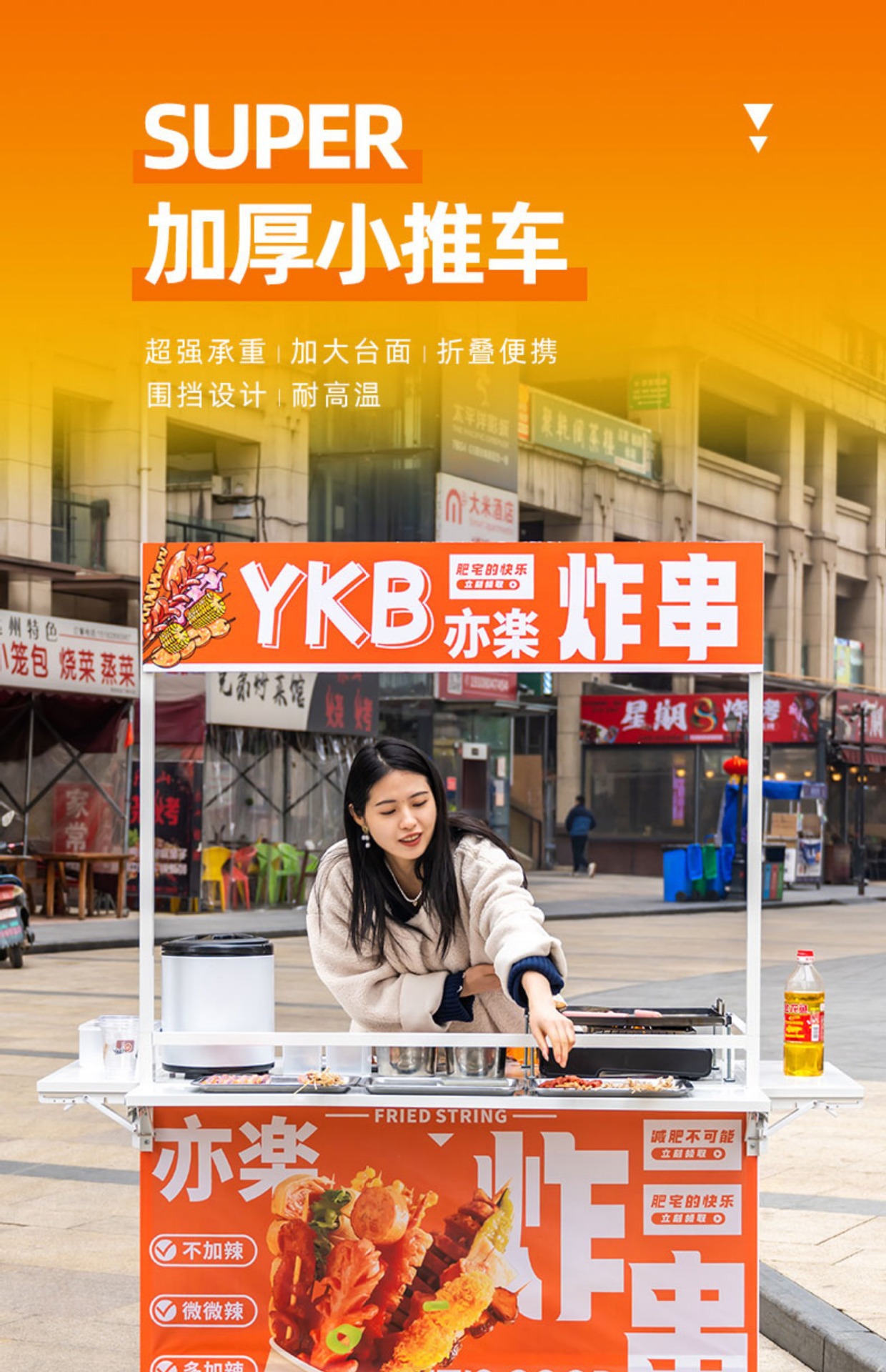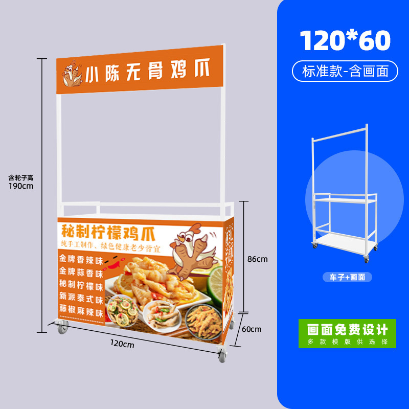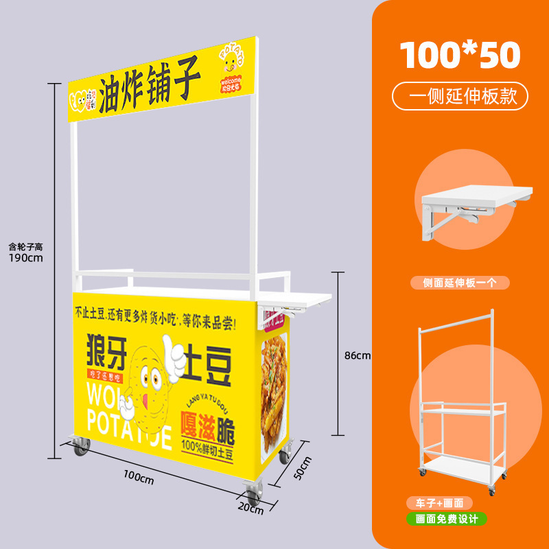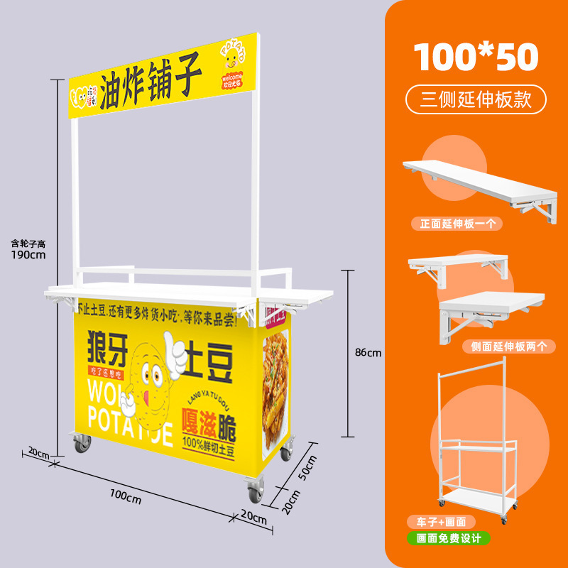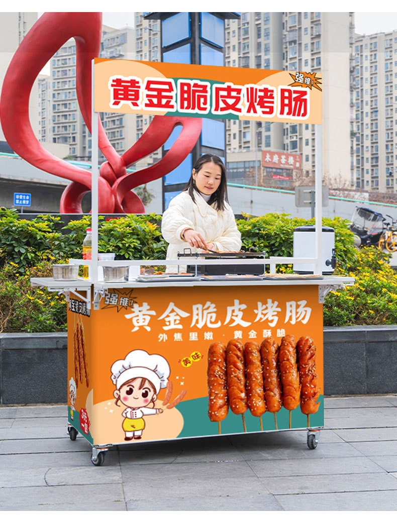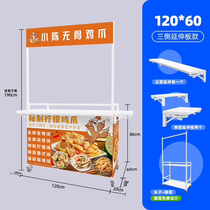 Net Red Night Market Stall 트롤리 로스트 소시지 바베큐 Guandong 요리 접이식 이동식 상업용 스톨 스낵 다이닝 카스토어 가기