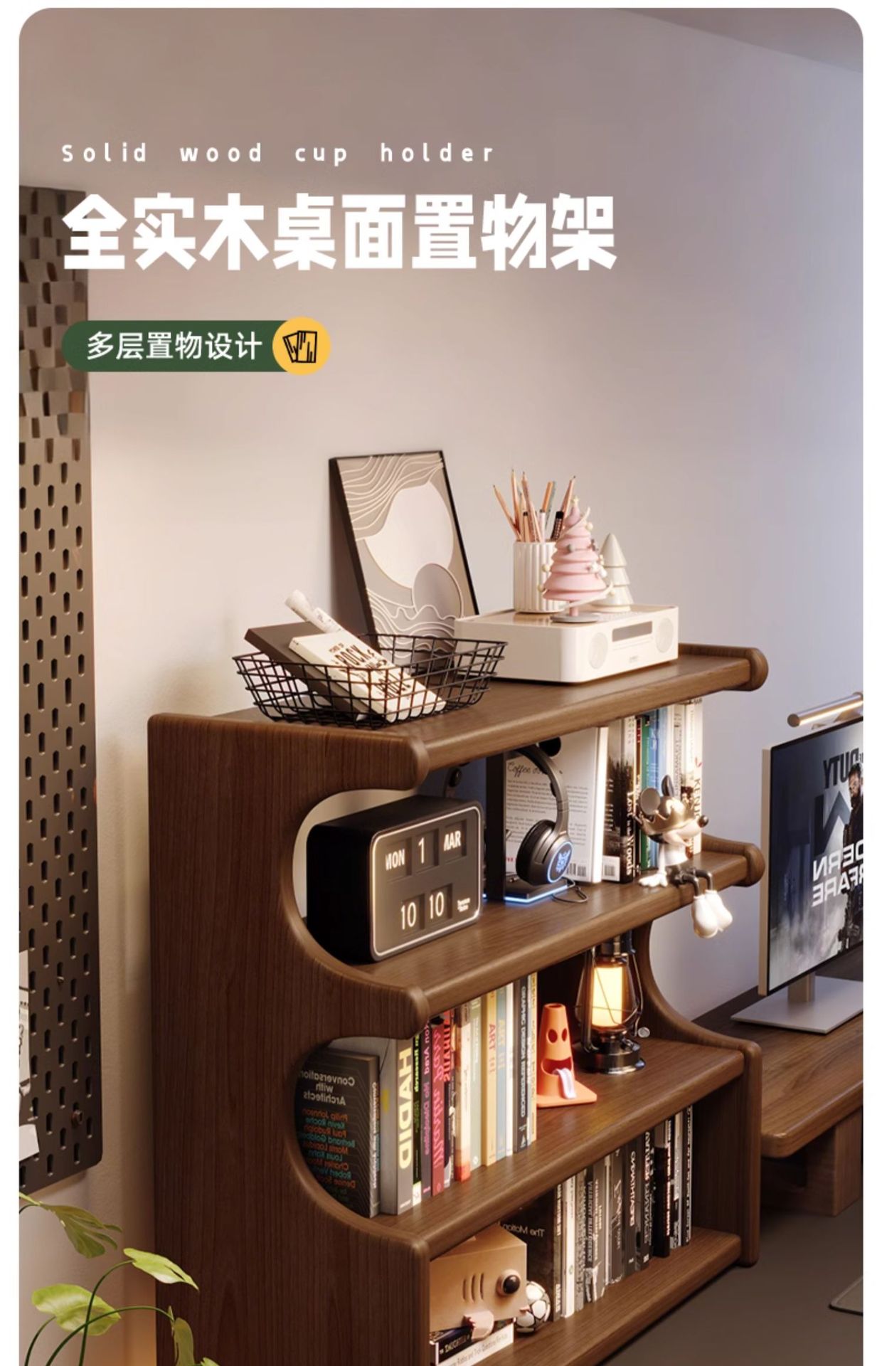 实木桌面置物架学生电脑桌上收纳架家用书桌多层整理架办公展示柜