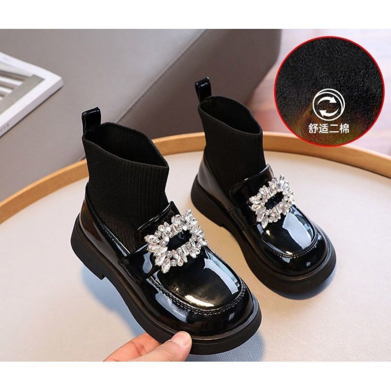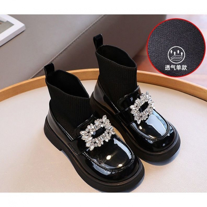 여자 양말 부츠 2025 봄과 가을 새로운 공주 마틴 부츠 어린이 가죽 신발 소녀 소프트 단독 기모 짧은 부츠 블랙스토어 가기