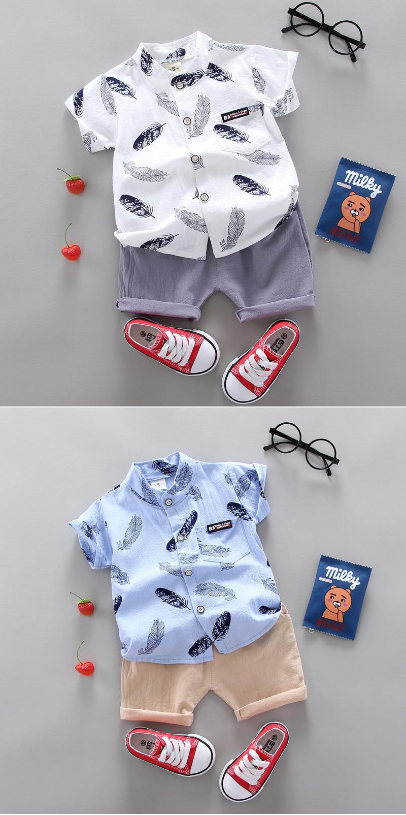 대외 무역 어린이 세트 여름 새로운 작은 소년 반팔 티셔츠 캐주얼 칼라 2 피스 세트 도매 아기 아이들