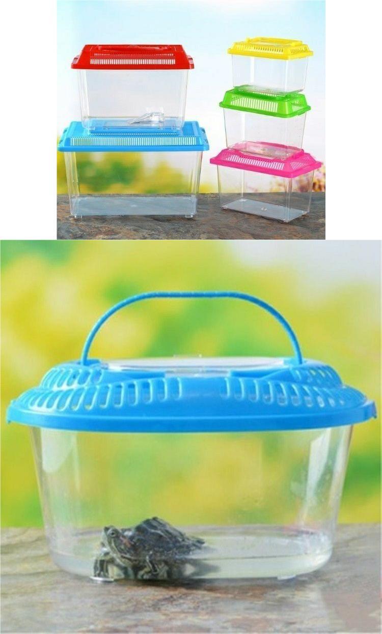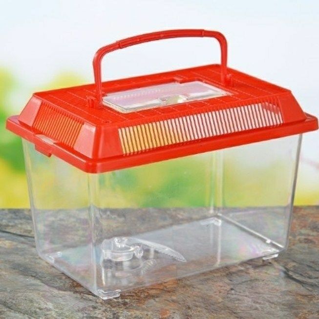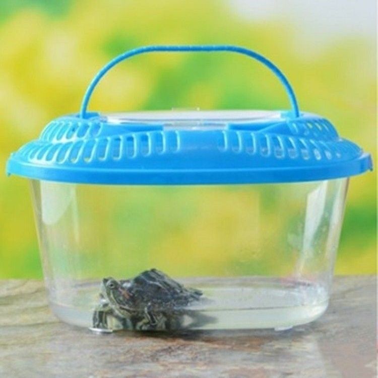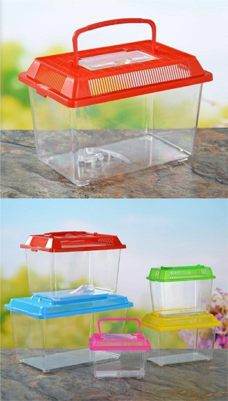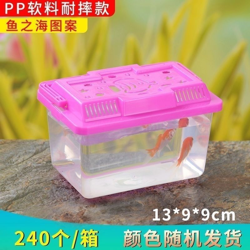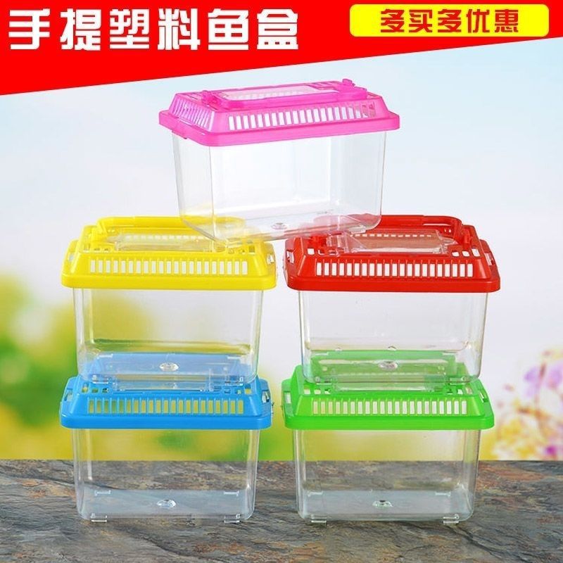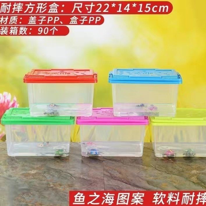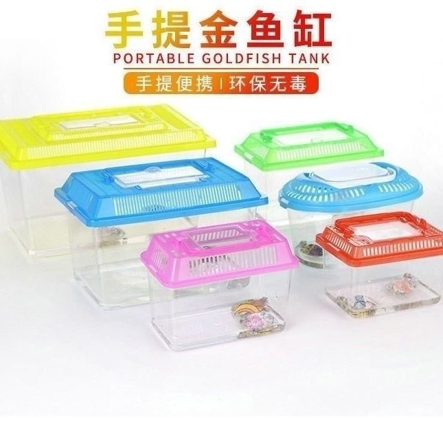 휴대용 작은 황금 물고기 탱크 크고 중간 스몰 사이즈 투명한 애완 동물 상자 다채로운 거북이 탱크 플라스틱 상자 덮개 닫힌 상자스토어 가기
