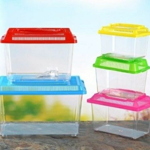 휴대용 작은 황금 물고기 탱크 크고 중간 스몰 사이즈 투명한 애완 동물 상자 다채로운 거북이 탱크 플라스틱 상자 덮개 닫힌 상자