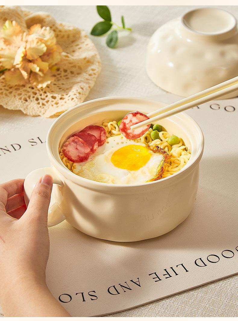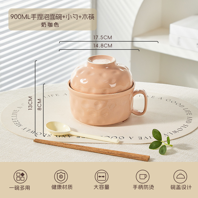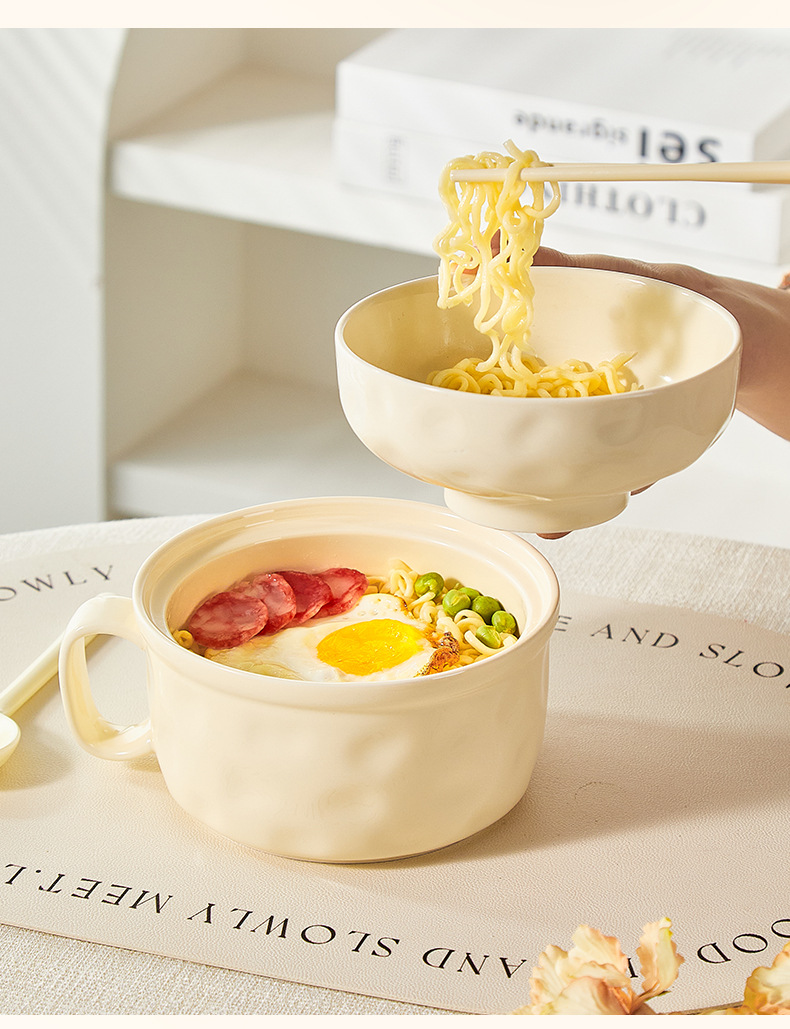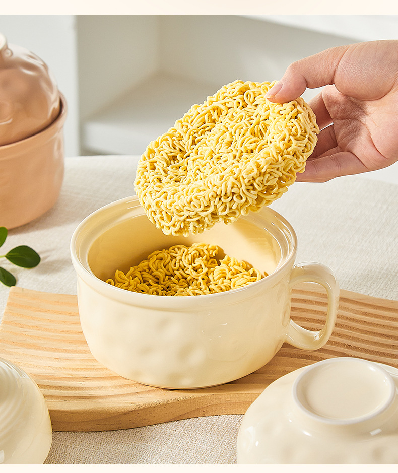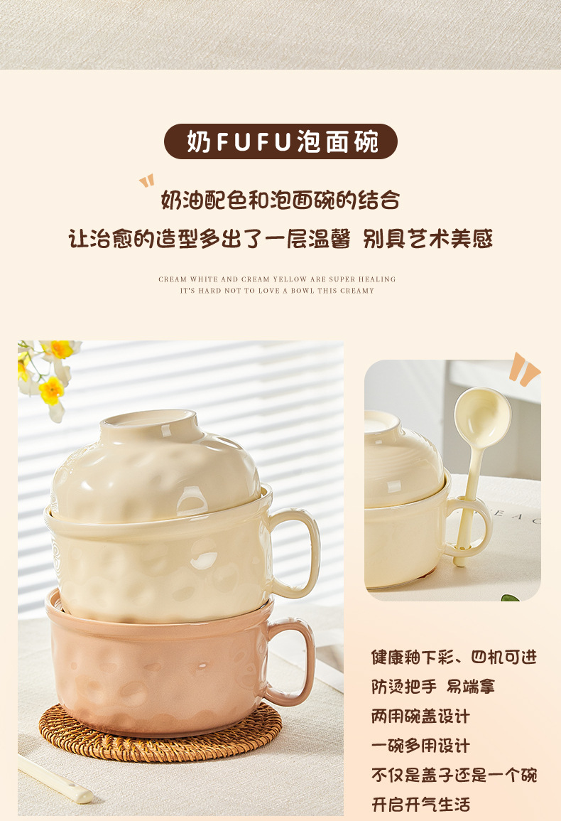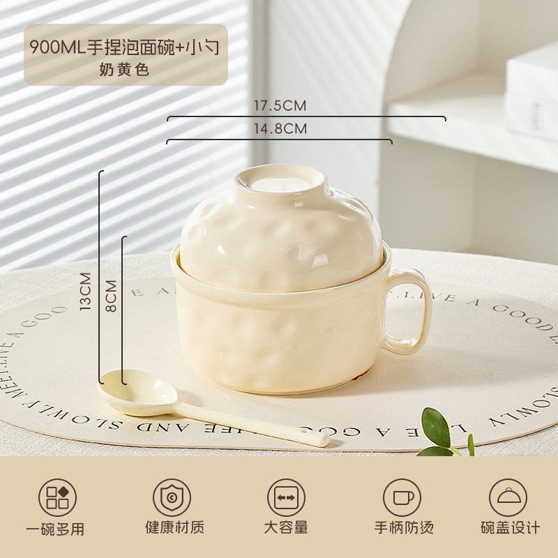 건강한 유약 세라믹 인스턴트 국수 그릇 손잡이가 달린 뚜껑과 숟가락이 달린 인스턴트 국수 그릇 크림 스타일 대형 수프 그릇 및 젓가락 세트스토어 가기