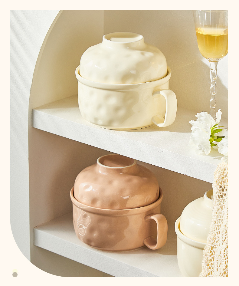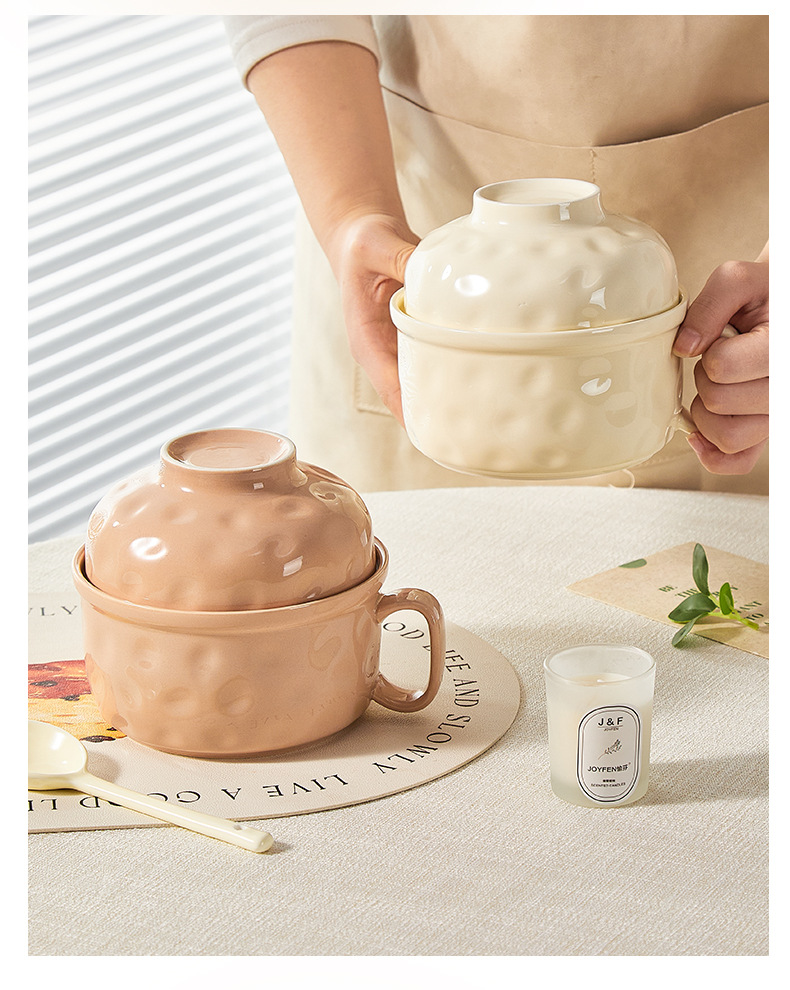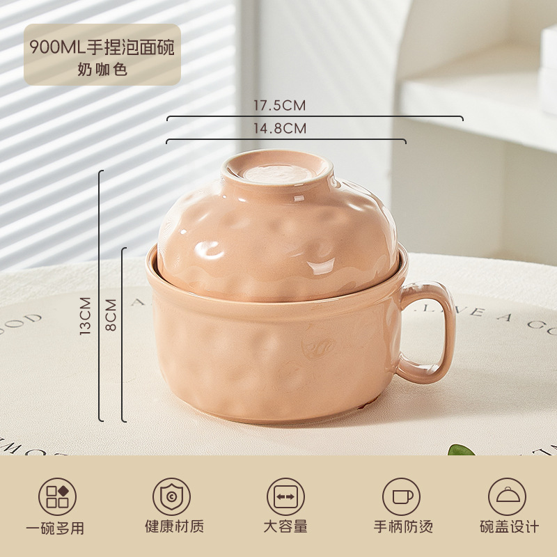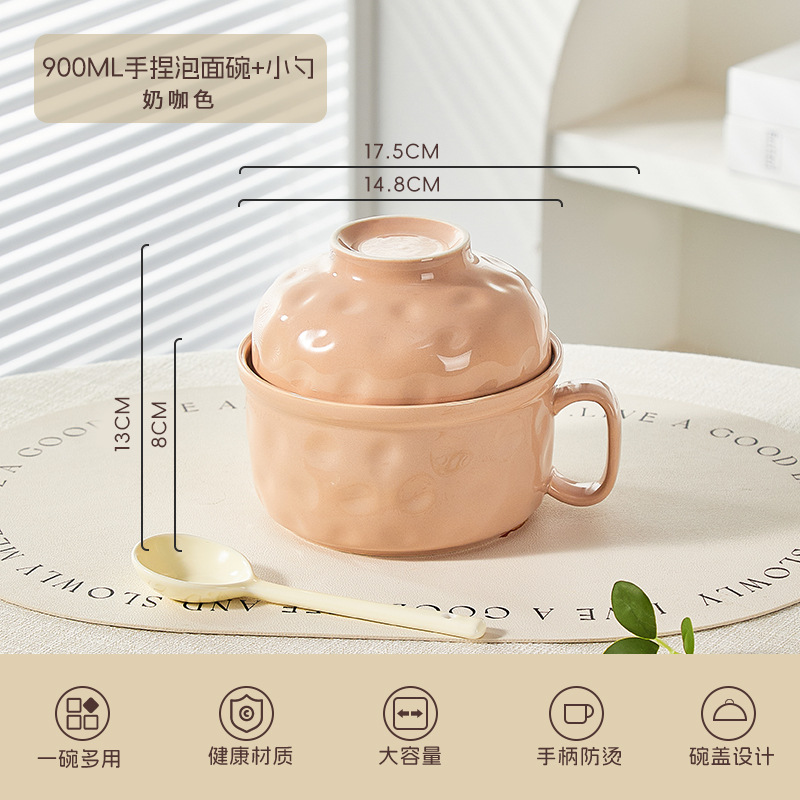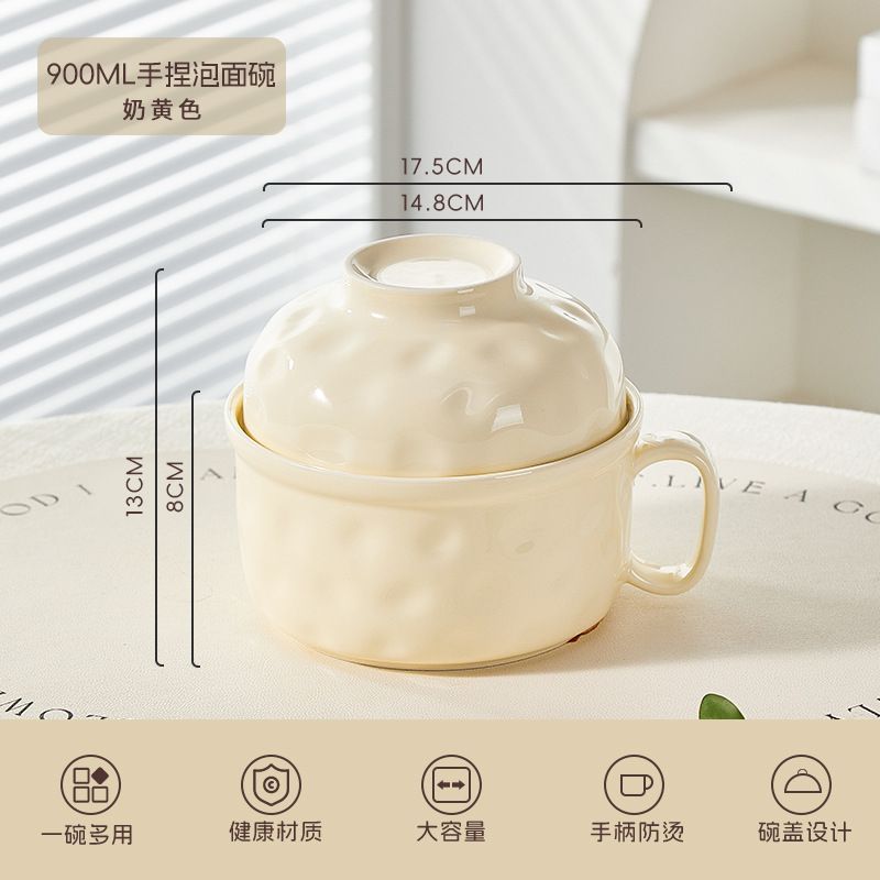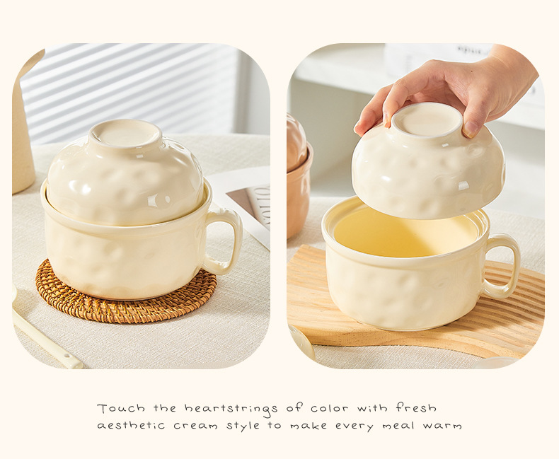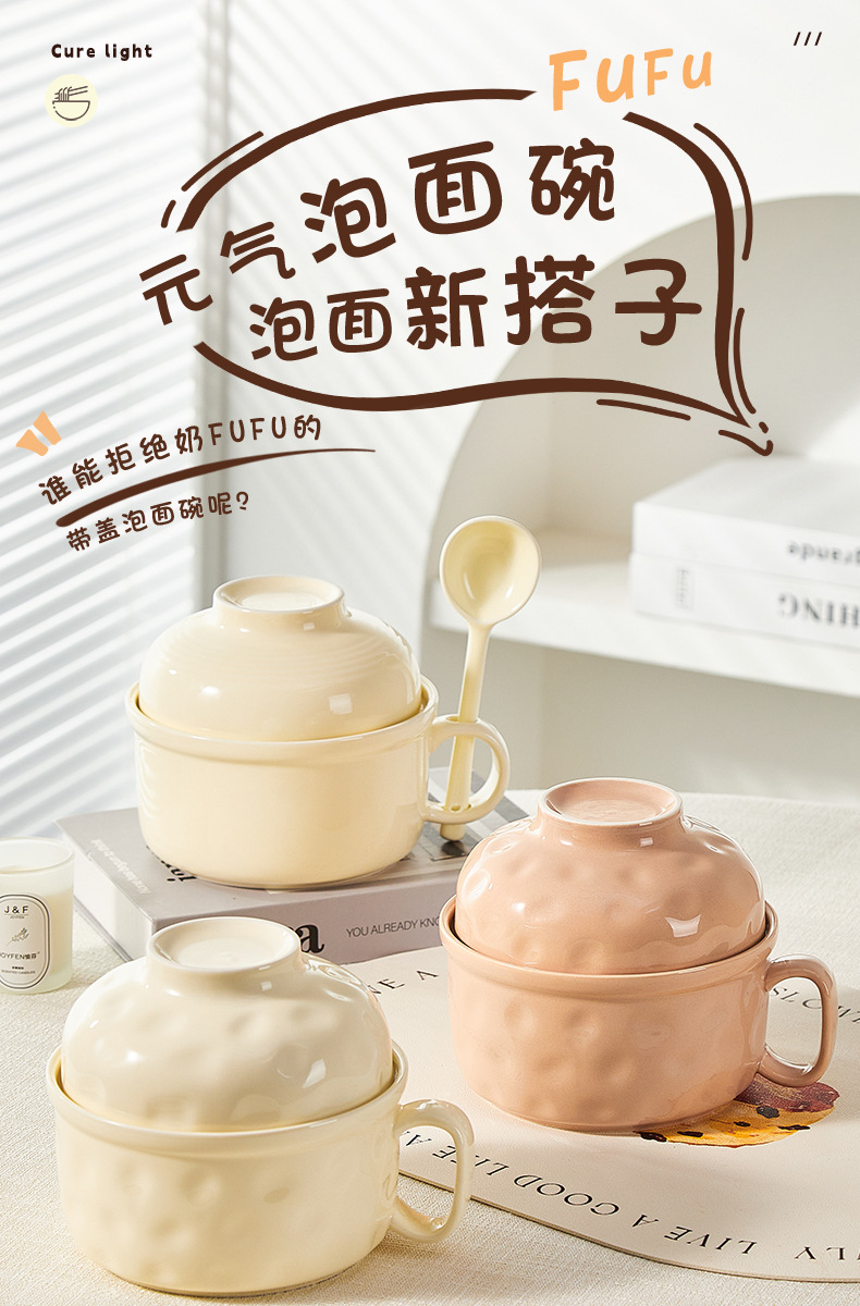 건강한 유약 세라믹 인스턴트 국수 그릇 손잡이가 달린 뚜껑과 숟가락이 달린 인스턴트 국수 그릇 크림 스타일 대형 수프 그릇 및 젓가락 세트스토어 가기