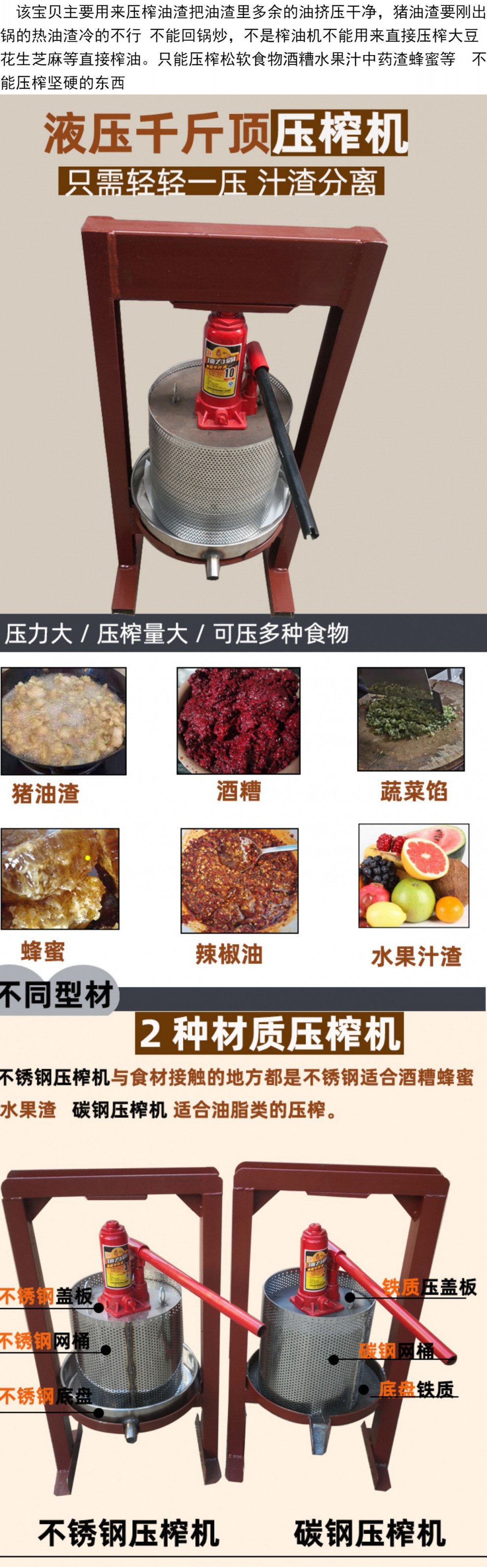 잭 스퀴저 수동 가정용 소형 오일 잔류 물 와인 곡물 꿀 과일 잔류 물 소형스토어 가기