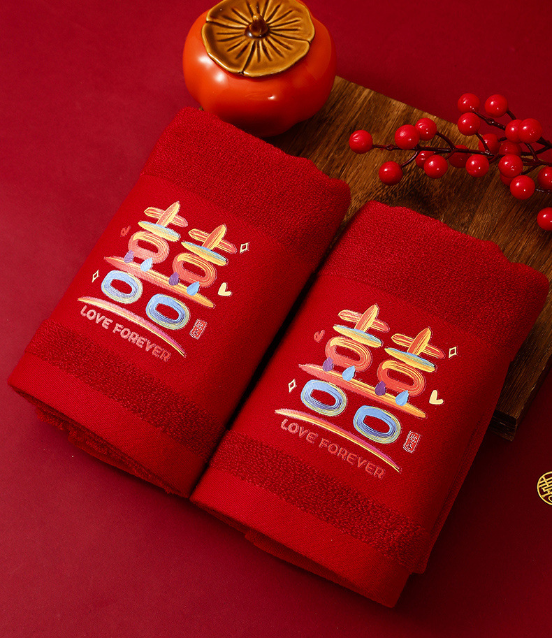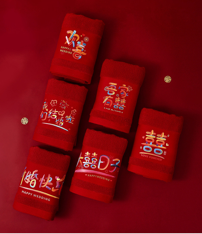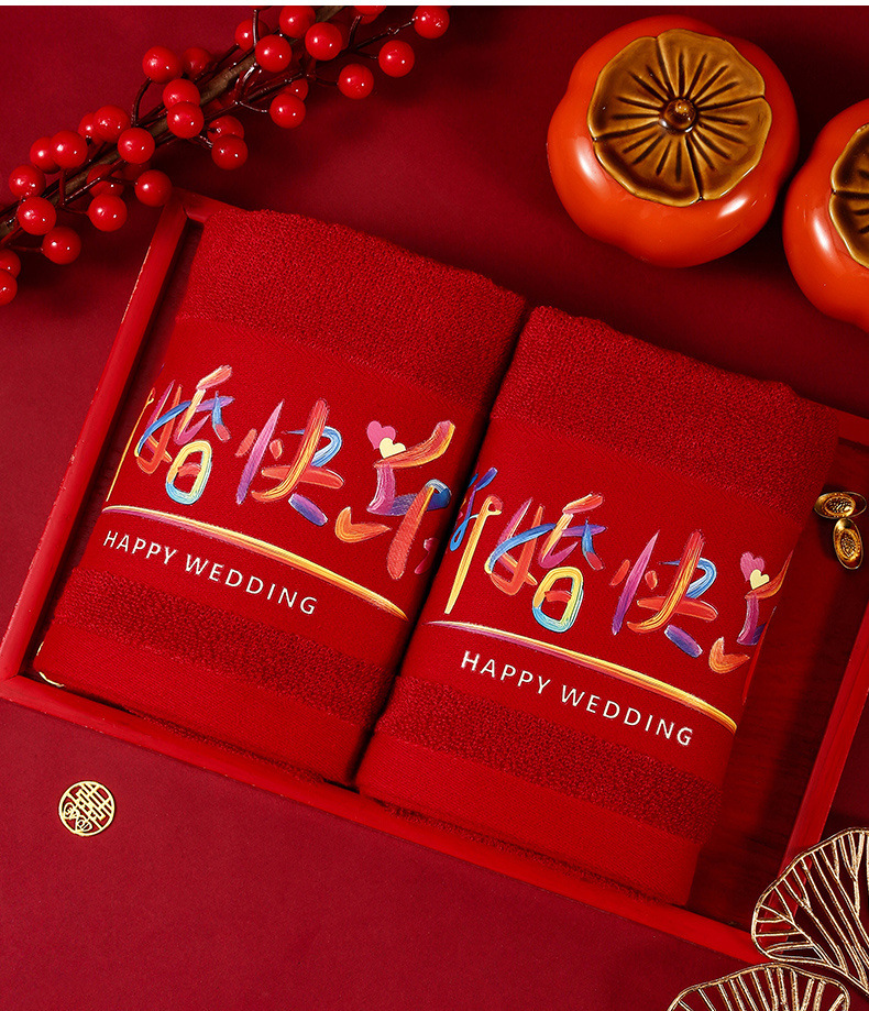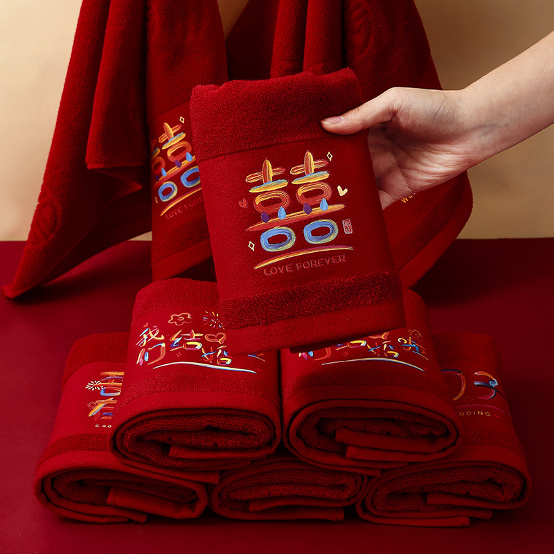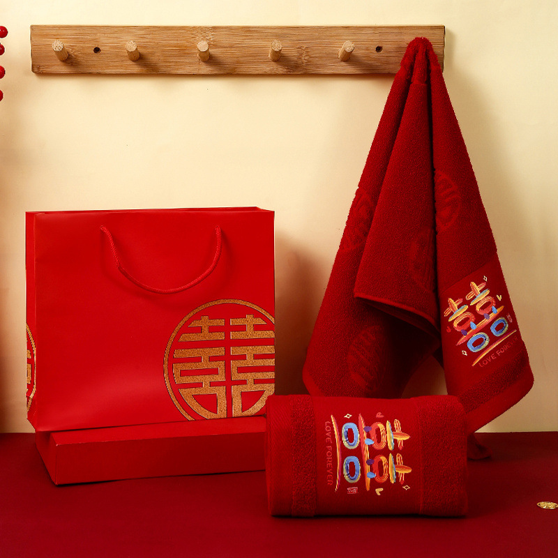 웨딩 타월 한 쌍의 레드 축제 선물 가방 동반 세탁 용품 선물 동반 선물 신부 결혼식스토어 가기