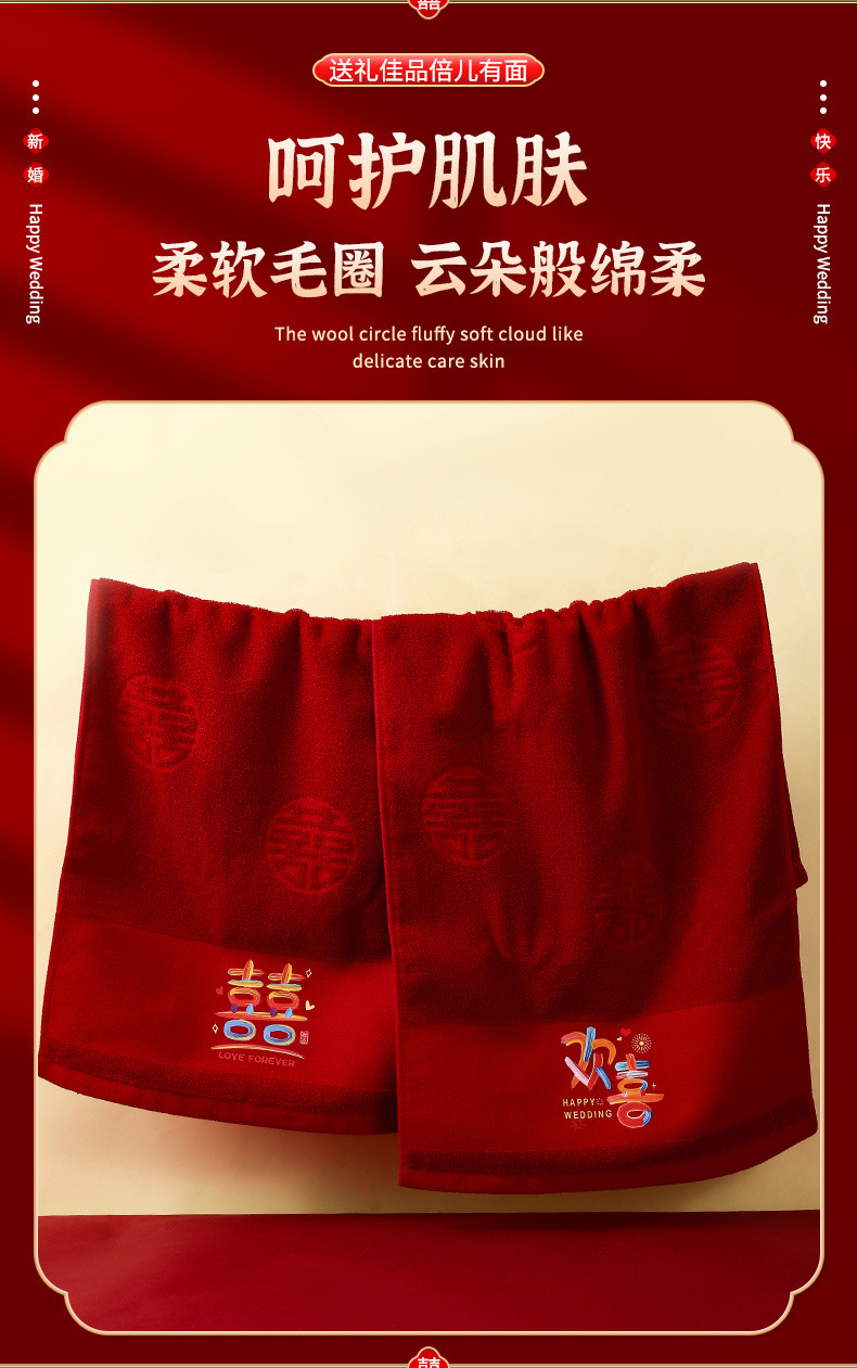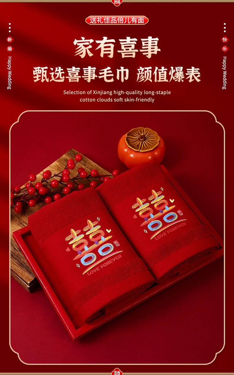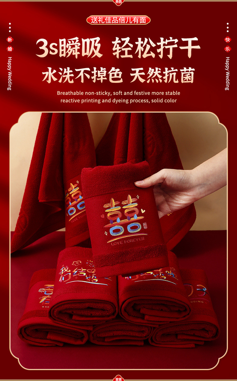웨딩 타월 한 쌍의 레드 축제 선물 가방 동반 세탁 용품 선물 동반 선물 신부 결혼식스토어 가기
