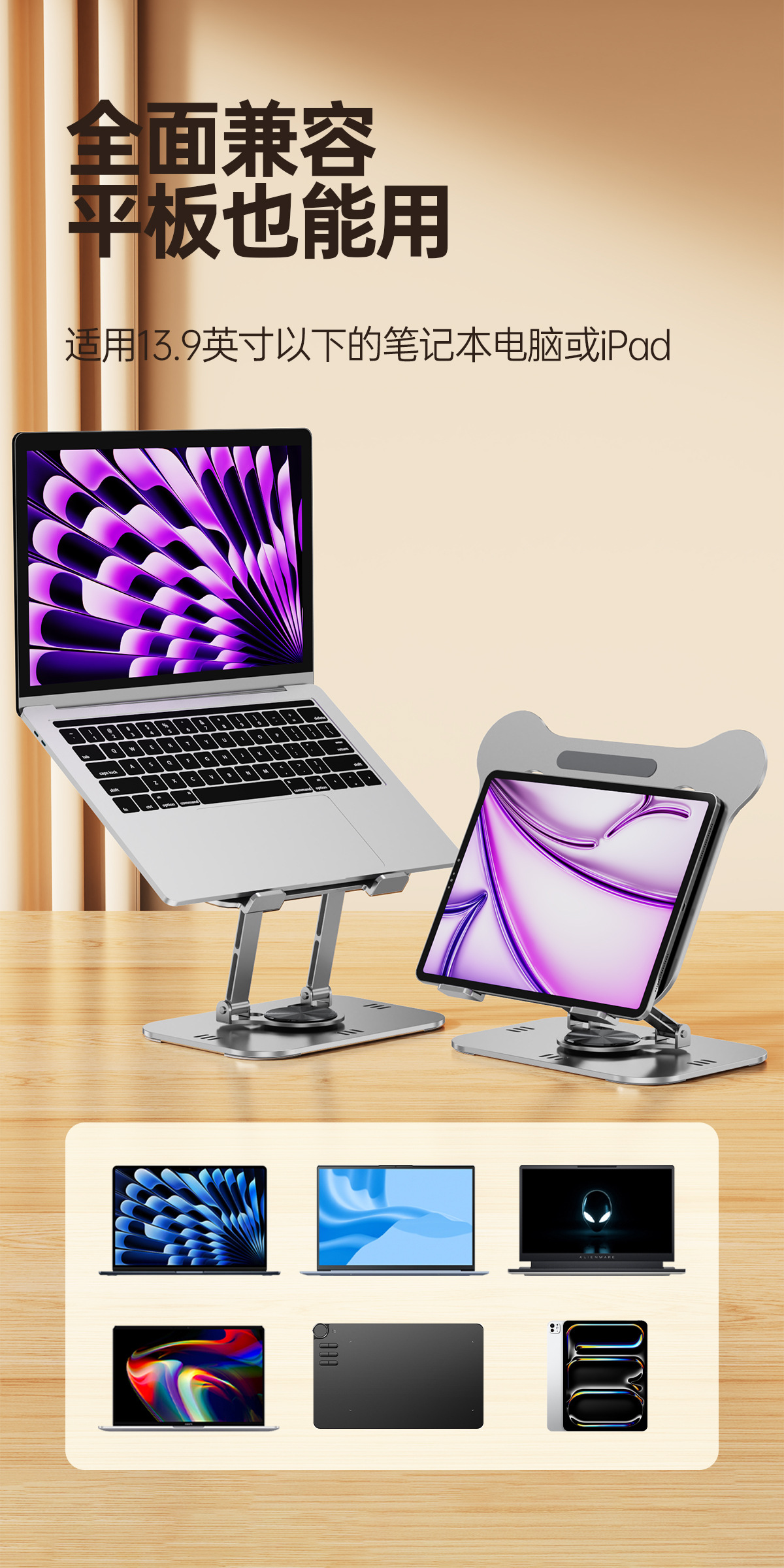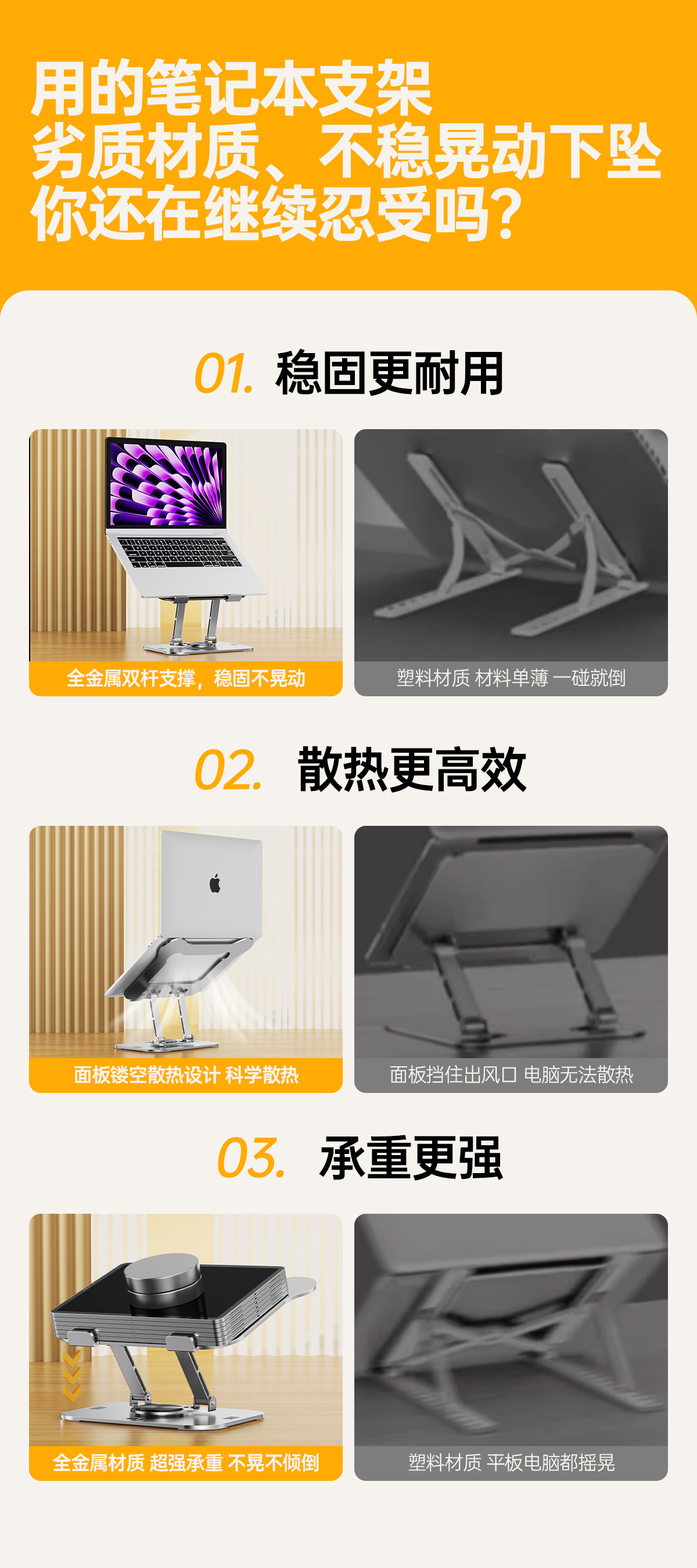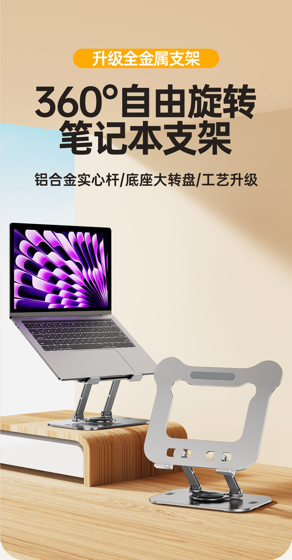노트북 브래킷 브래킷 강화 방열판 모든 금속 360 도 회전 리프팅 프레임은 안정적이고 미끄럼 방지