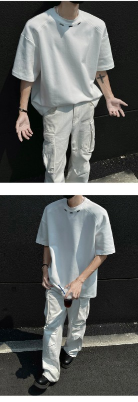 반팔 티셔츠 남성용 여름 뉴 아메리칸 핸드 메이드 스틸 표준 반소매 240g 중량용 루즈 캐주얼 반소매 티셔츠
