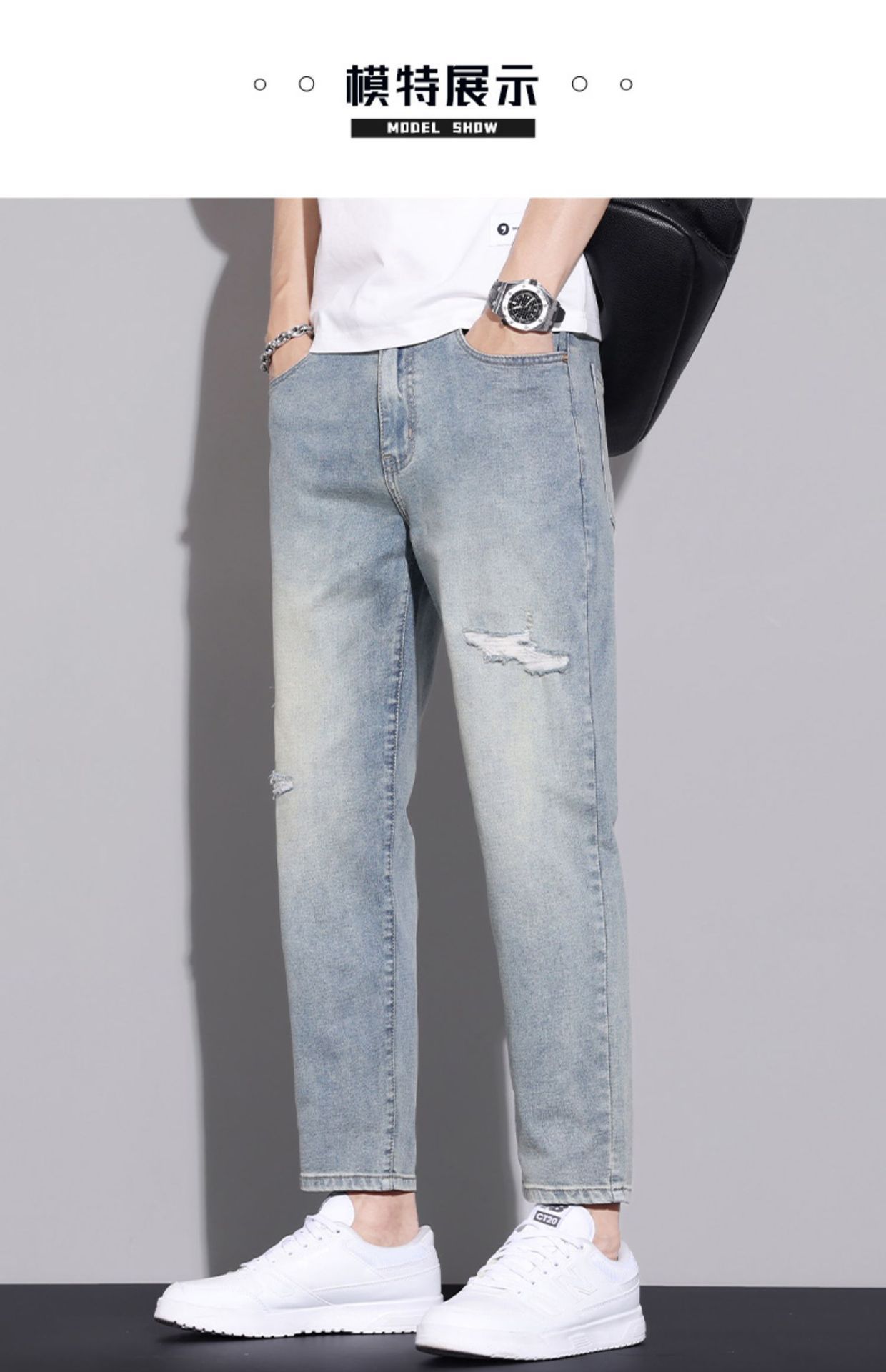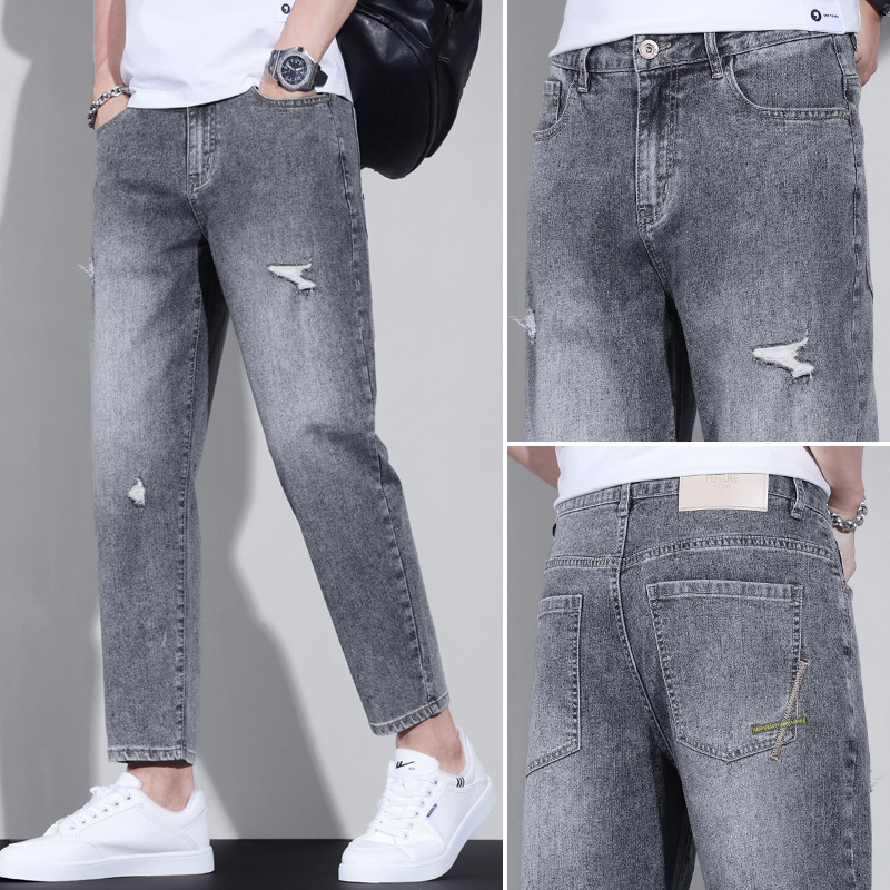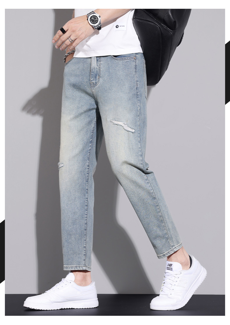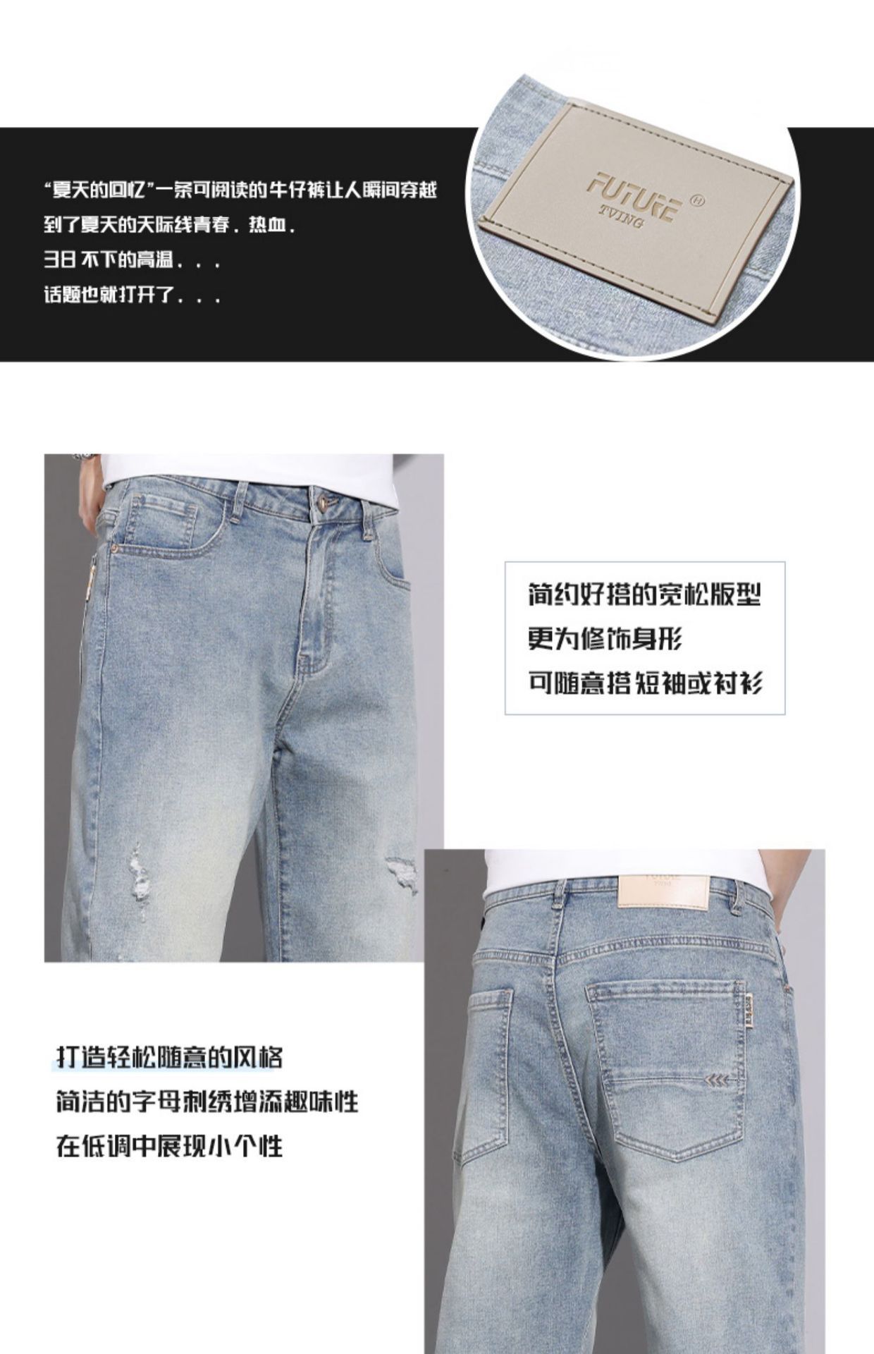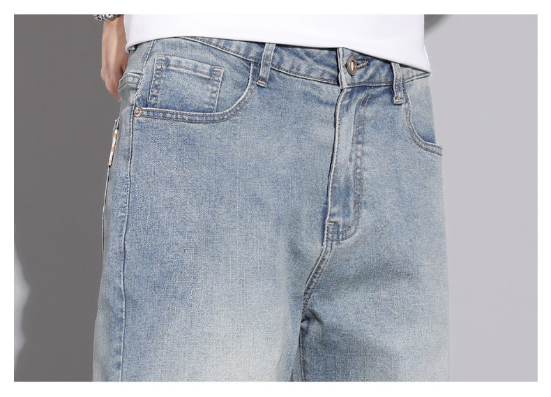 찢어진 청바지 남자 여름 얇은 2025 새로운 미국 스타일 레트로 느슨한 스트레이트 아이스 실크 자른 바지스토어 가기