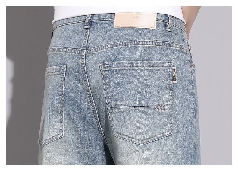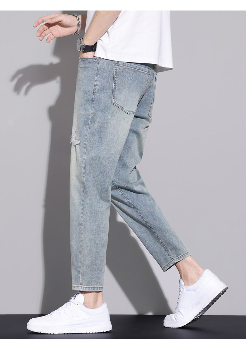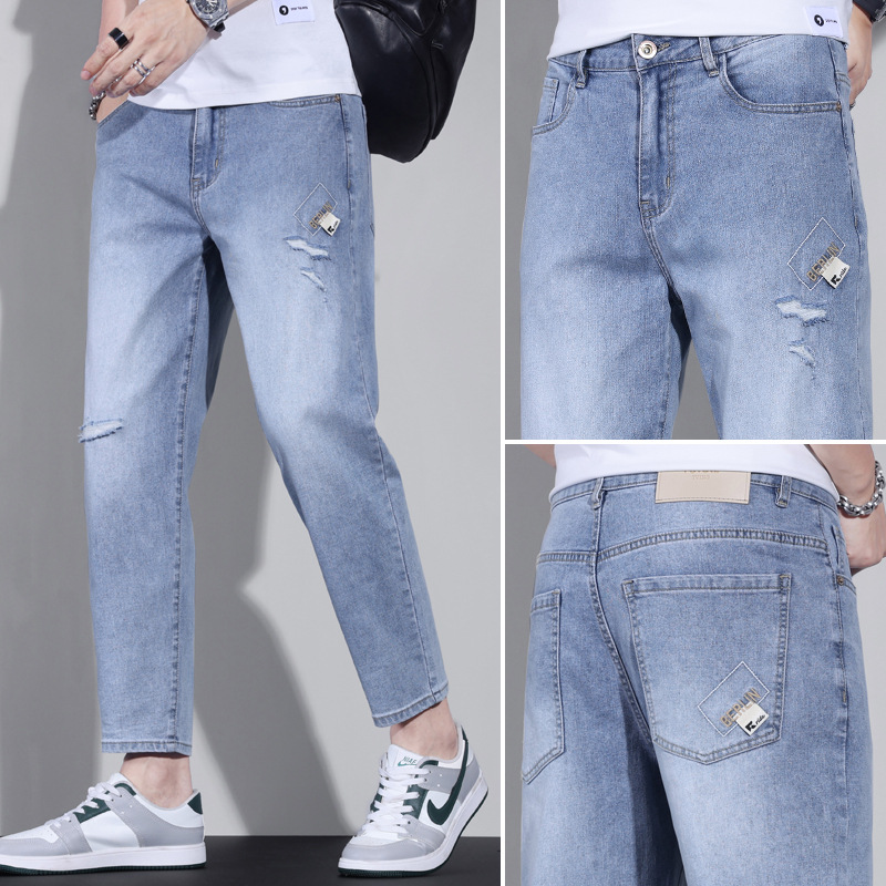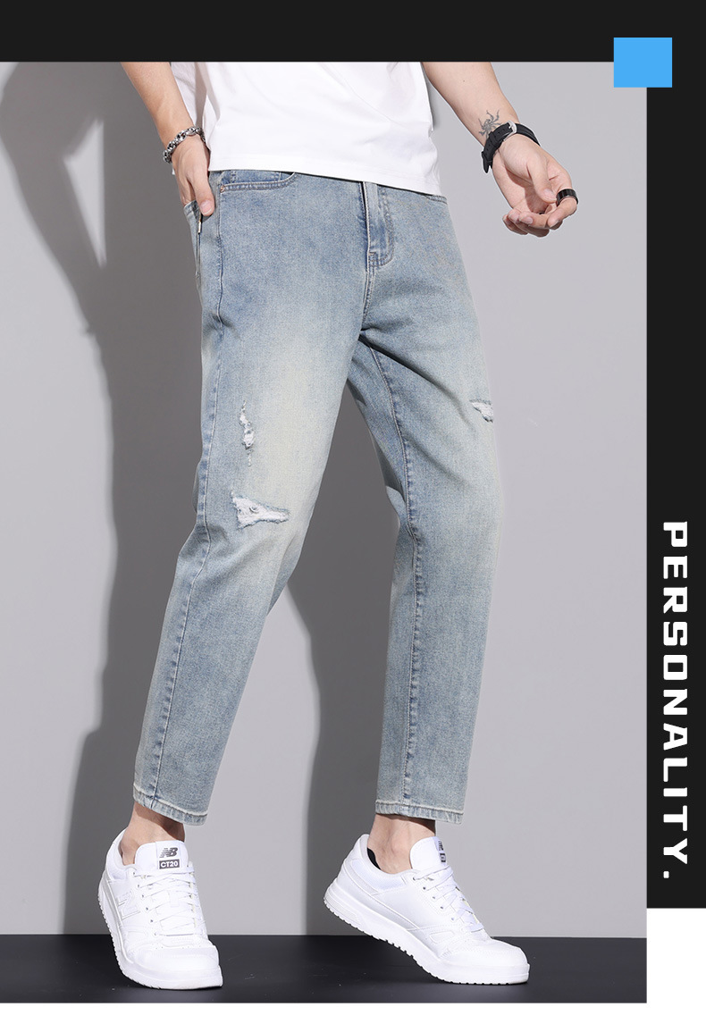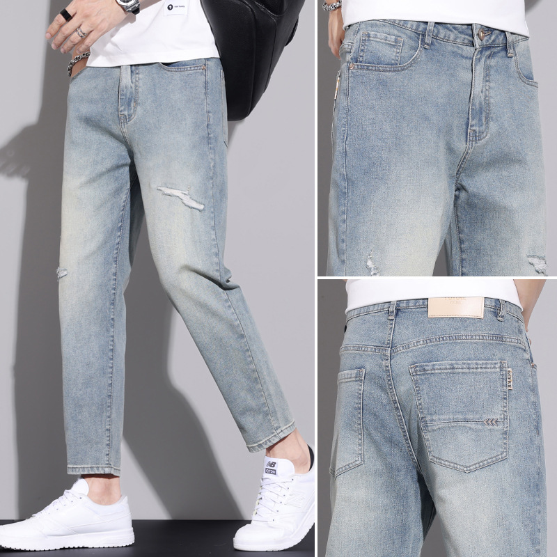 찢어진 청바지 남자 여름 얇은 2025 새로운 미국 스타일 레트로 느슨한 스트레이트 아이스 실크 자른 바지스토어 가기