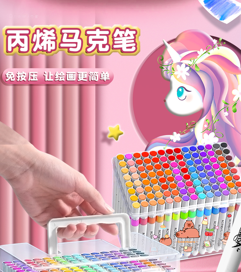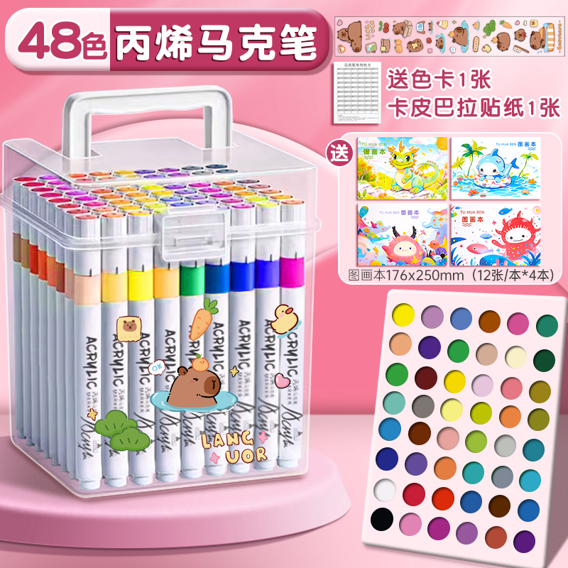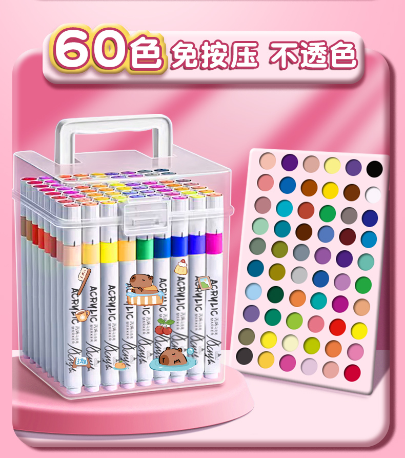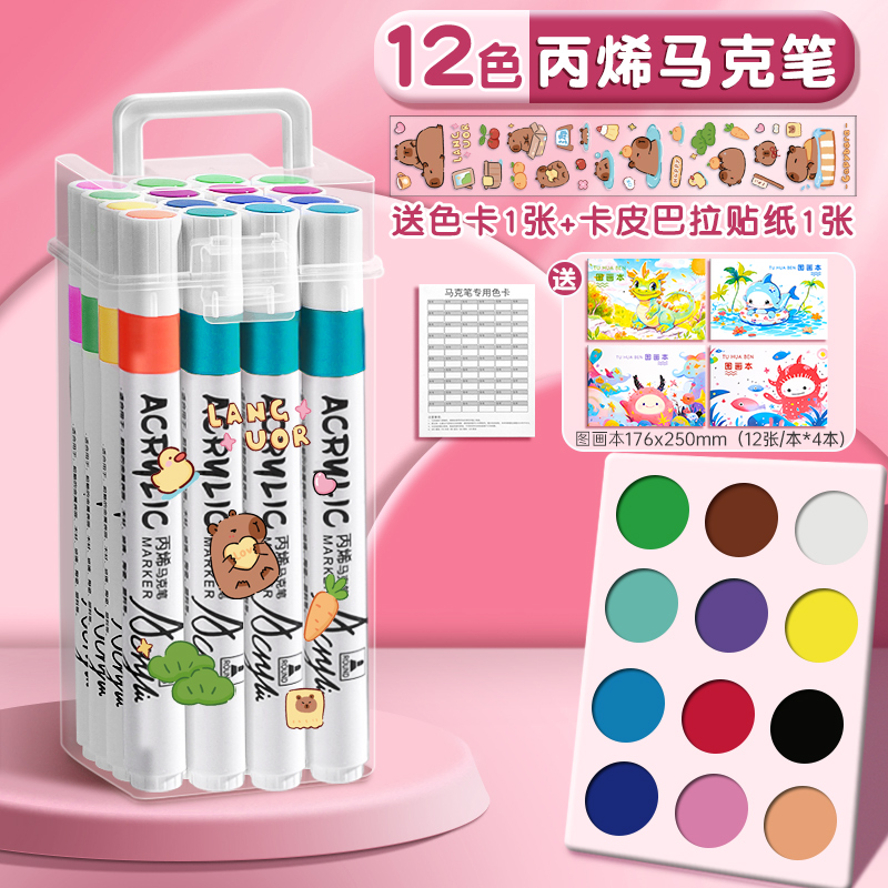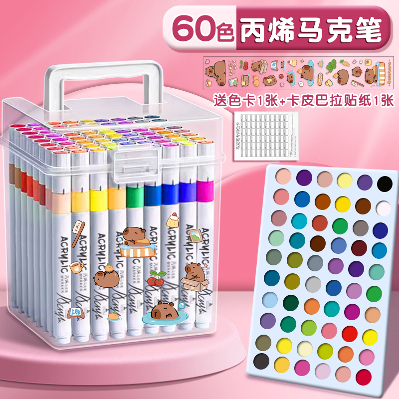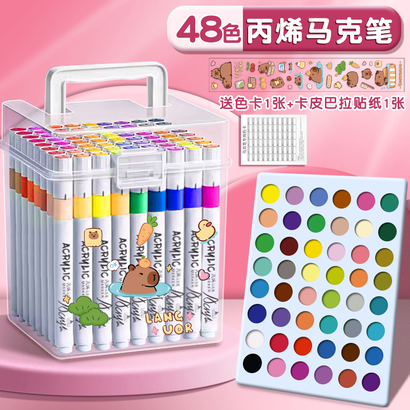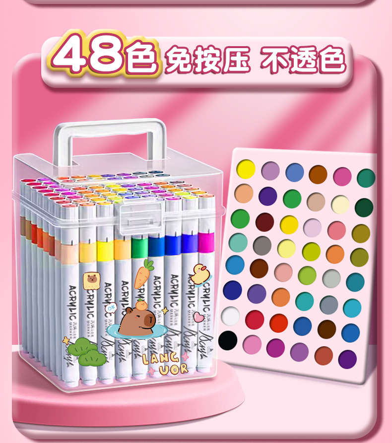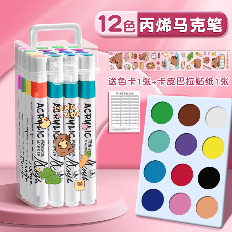 아크릴 마커 펜 어린이 그림 브러시 빠른 건조 방수 비 페이딩 컬러 펜 예술 학생을위한 불투명 한 색상을 쌓을 수 있습니다.스토어 가기