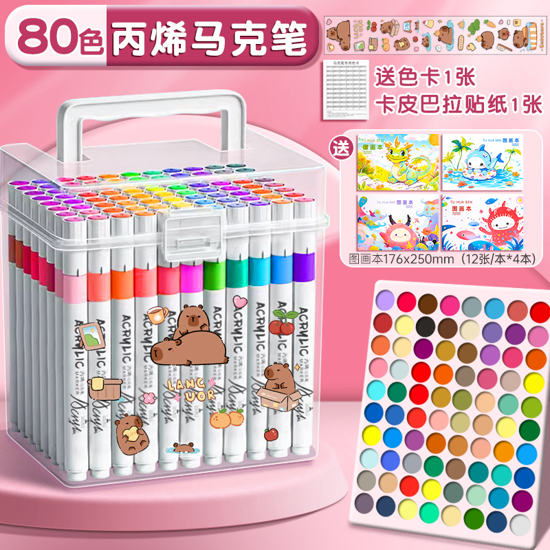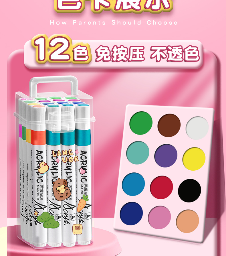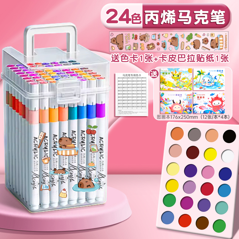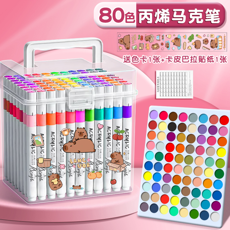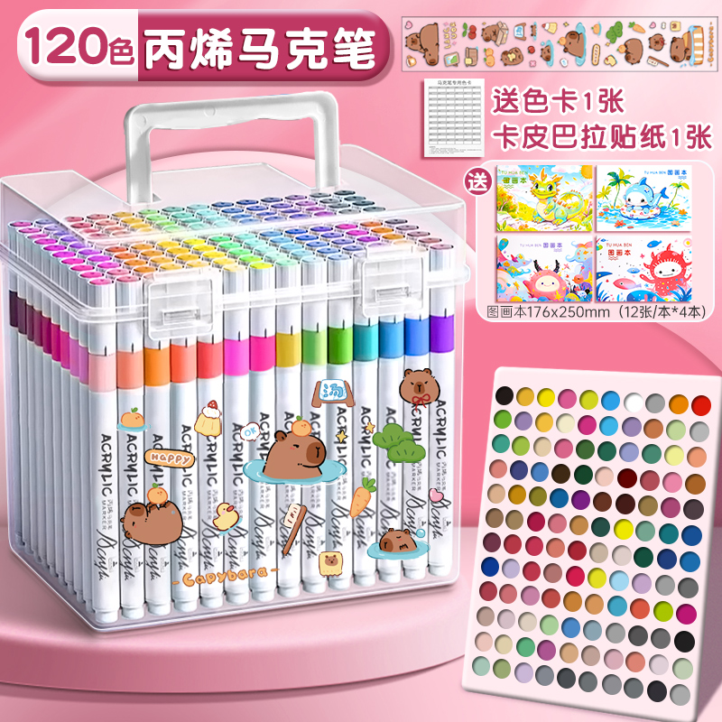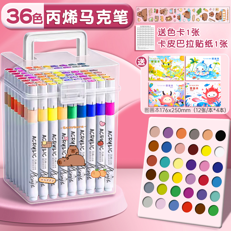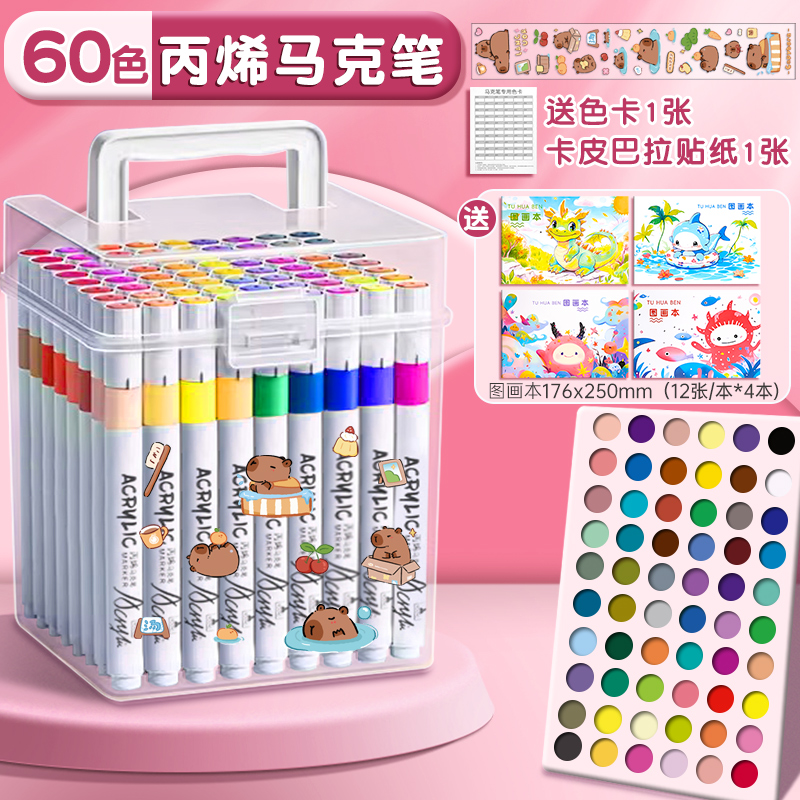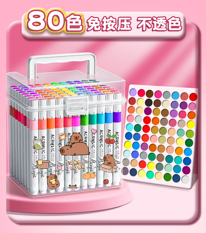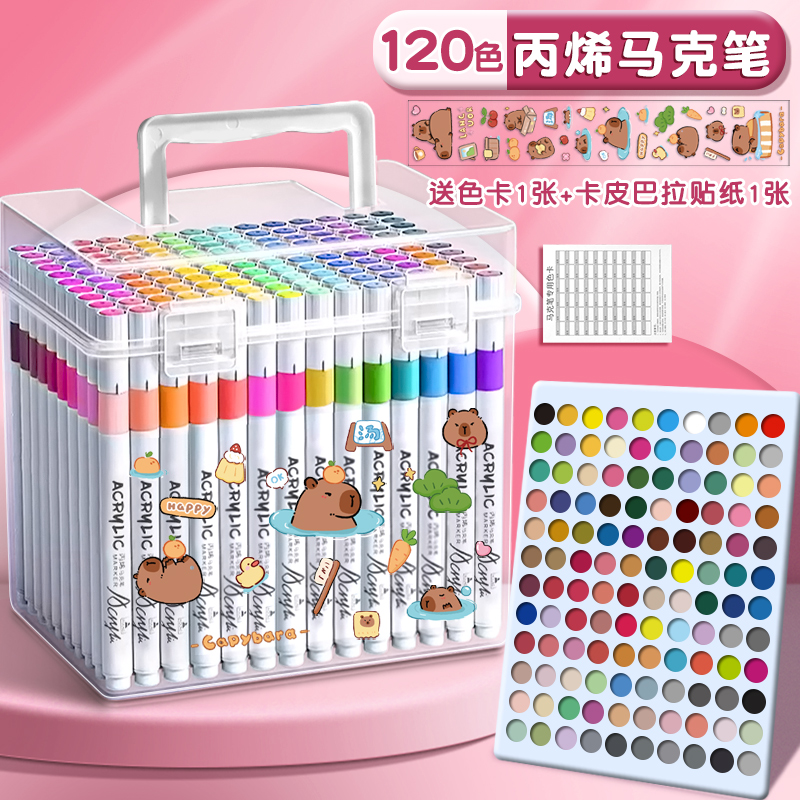 아크릴 마커 펜 어린이 그림 브러시 빠른 건조 방수 비 페이딩 컬러 펜 예술 학생을위한 불투명 한 색상을 쌓을 수 있습니다.스토어 가기
