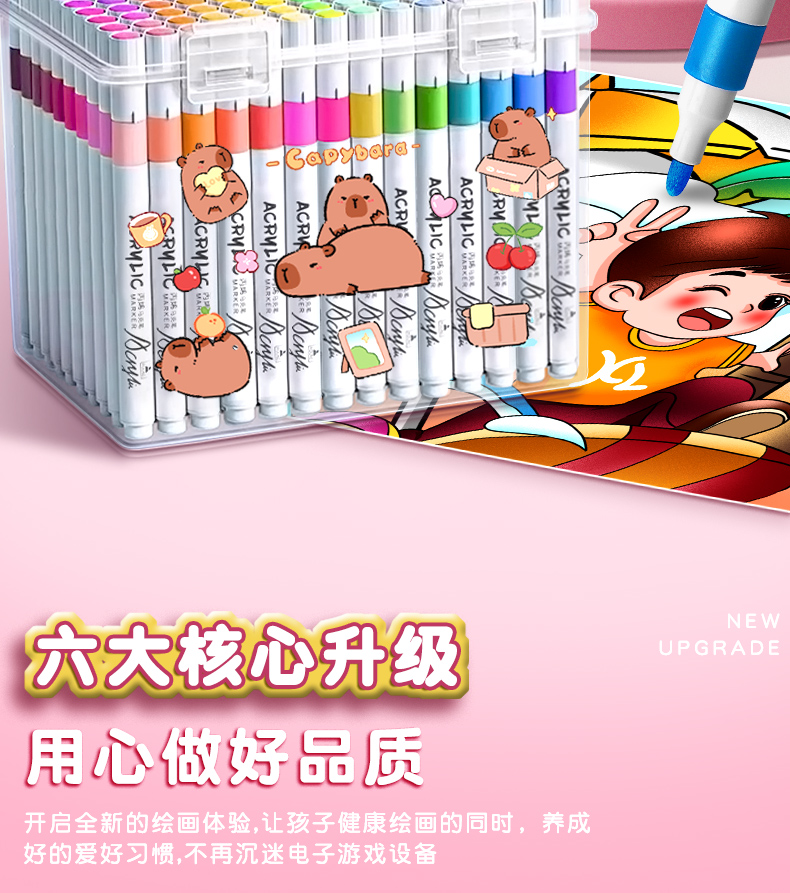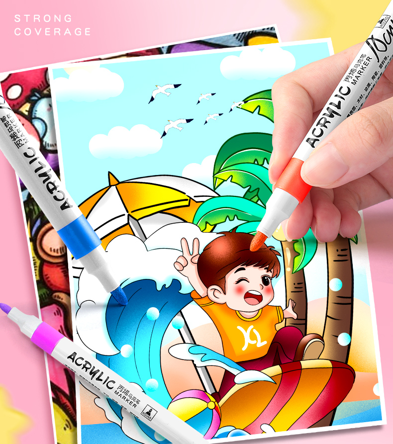 아크릴 마커 펜 어린이 그림 브러시 빠른 건조 방수 비 페이딩 컬러 펜 예술 학생을위한 불투명 한 색상을 쌓을 수 있습니다.