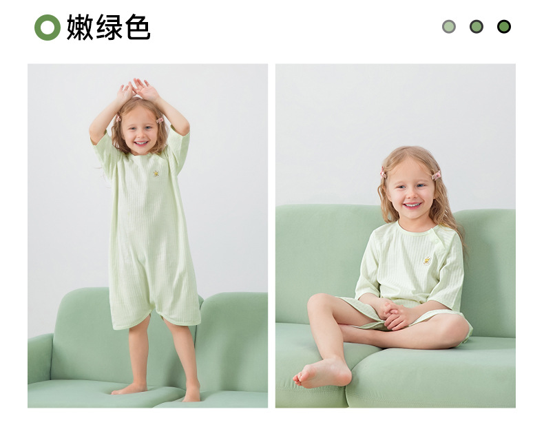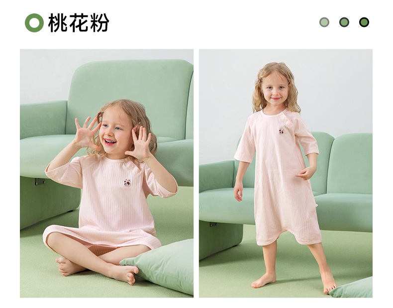 Beptide Children's Nightgress 2025 여름 새로운 얇은 순수한 면 아기 소녀의 집 원피스 7 소매 시원한 느낌의 잠옷스토어 가기