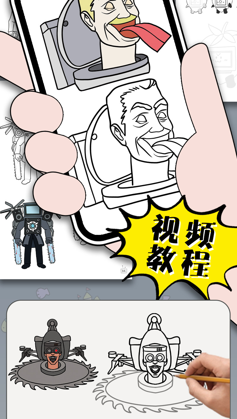 사람과 화장실 사람 다중 애니메이션 추적 책 제어 스트로크 페인팅 책 그리기 초등학생 스케치북 모니터링