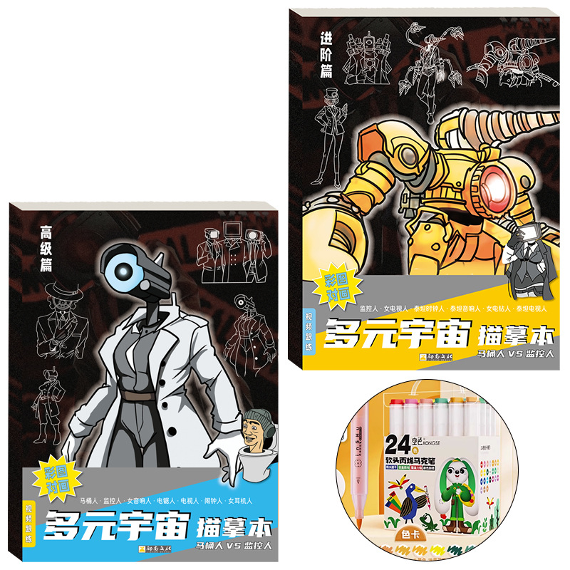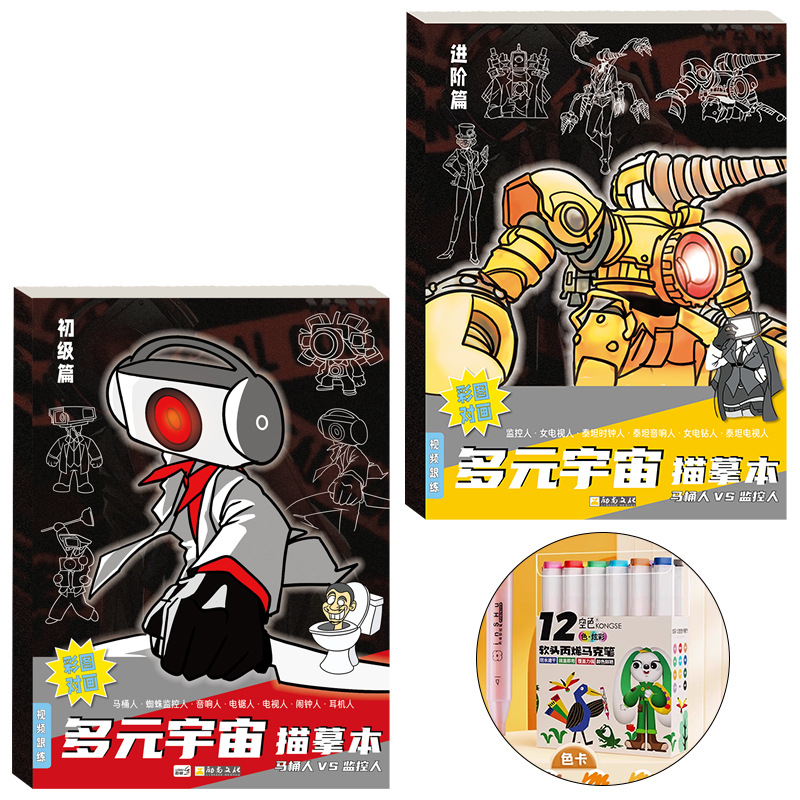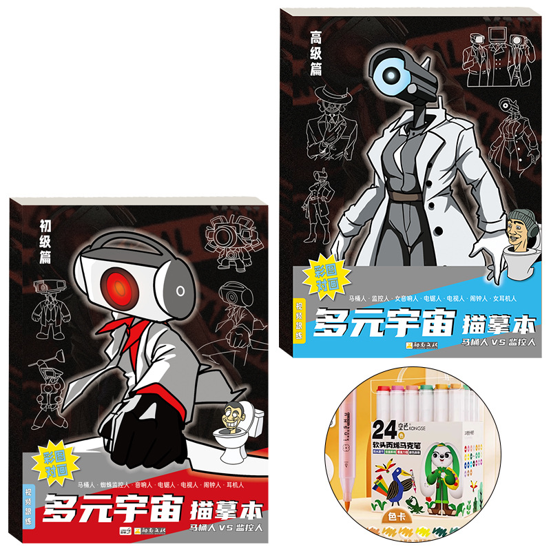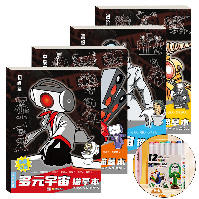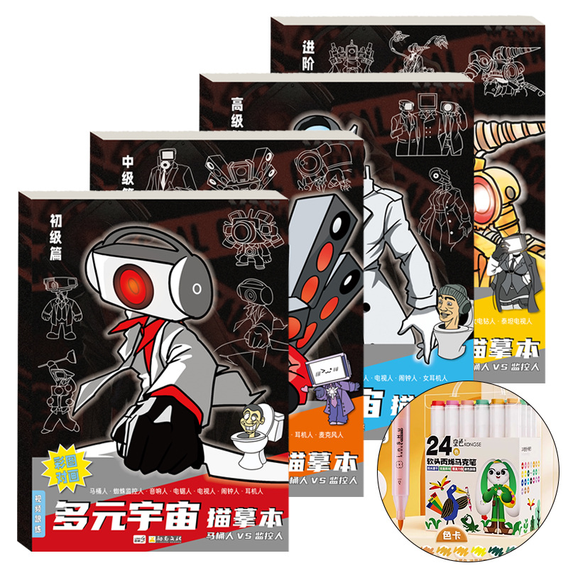 사람과 화장실 사람 다중 애니메이션 추적 책 제어 스트로크 페인팅 책 그리기 초등학생 스케치북 모니터링스토어 가기