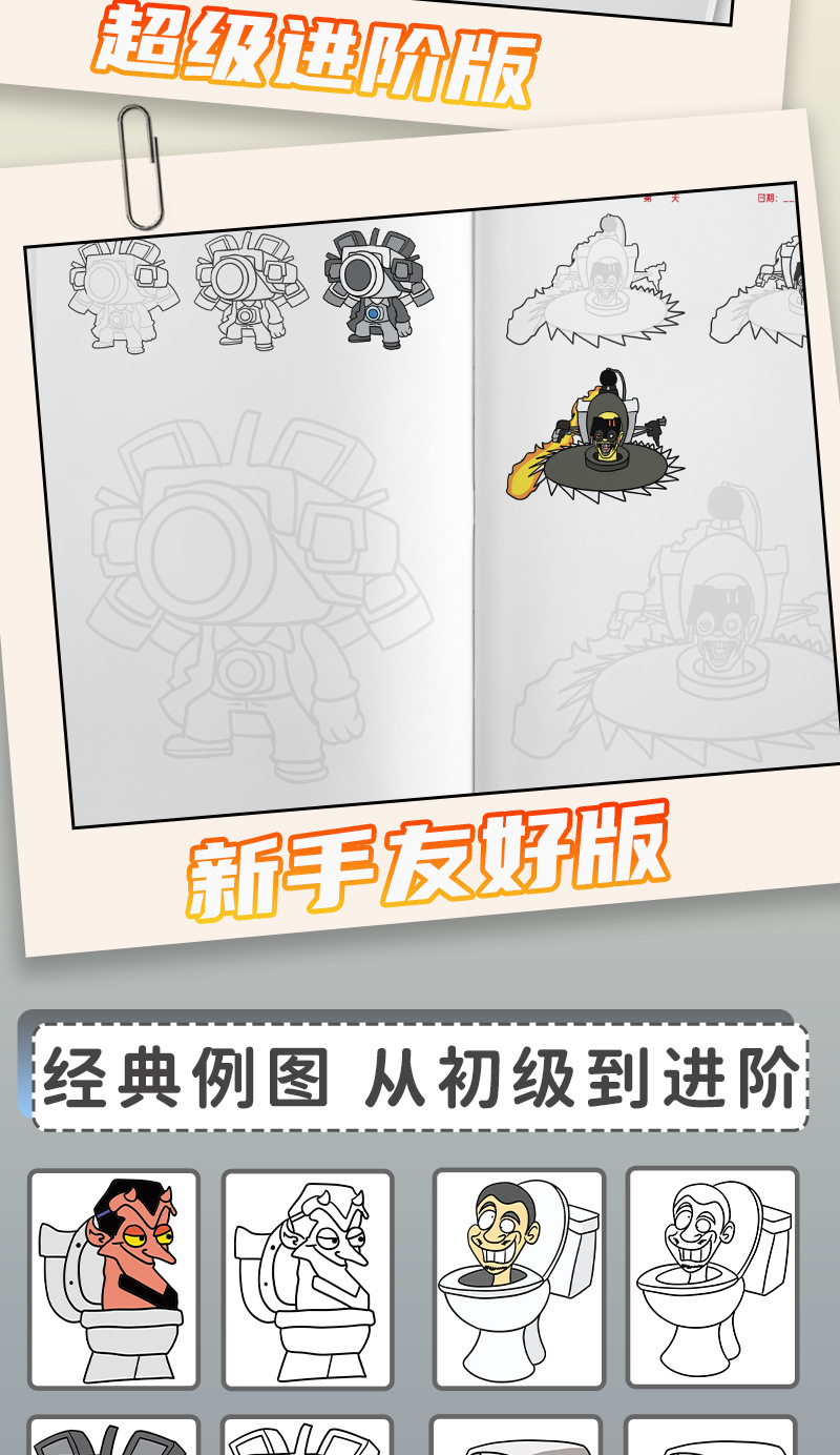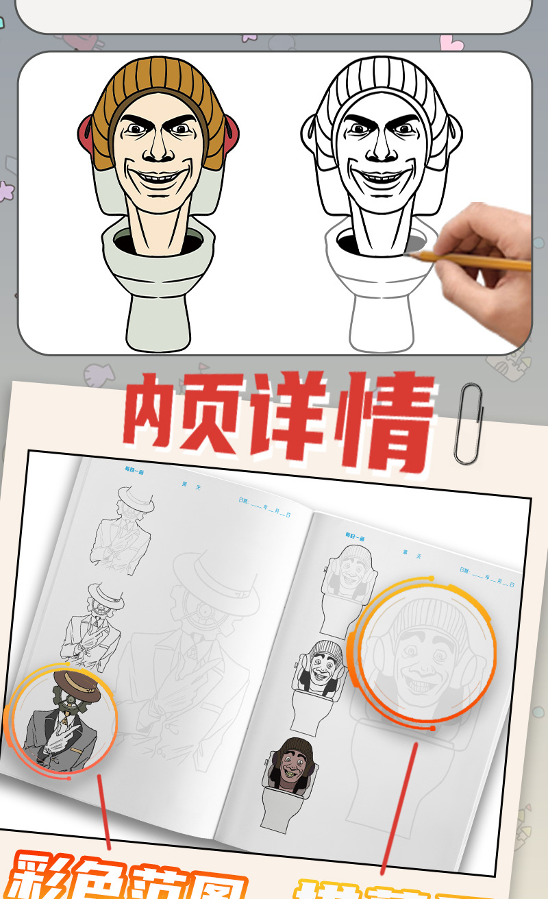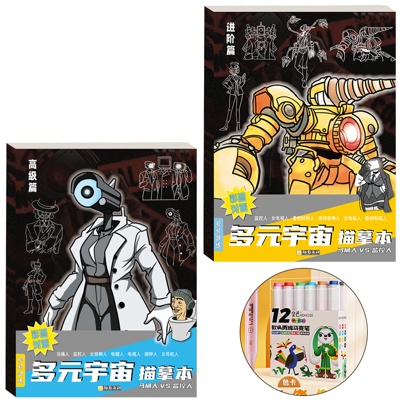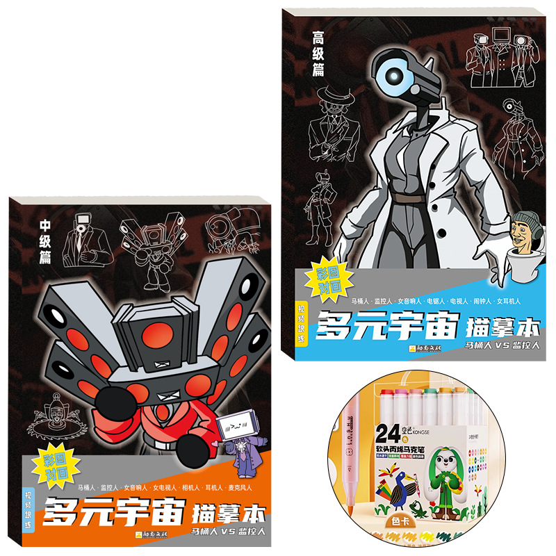 사람과 화장실 사람 다중 애니메이션 추적 책 제어 스트로크 페인팅 책 그리기 초등학생 스케치북 모니터링스토어 가기