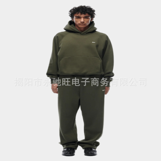 새로운 스타일의 유럽 및 미국 스타일 프린트 스포츠 세트, 남녀 공용 후드티와 와이드 팬츠 세트
