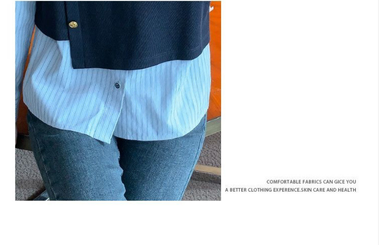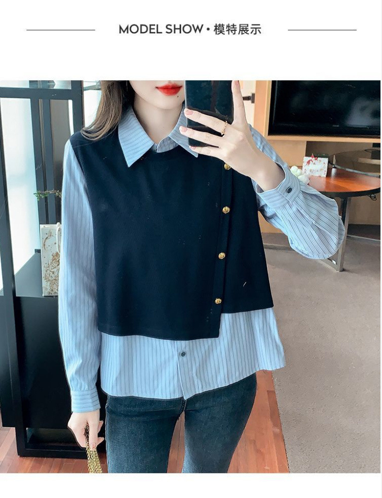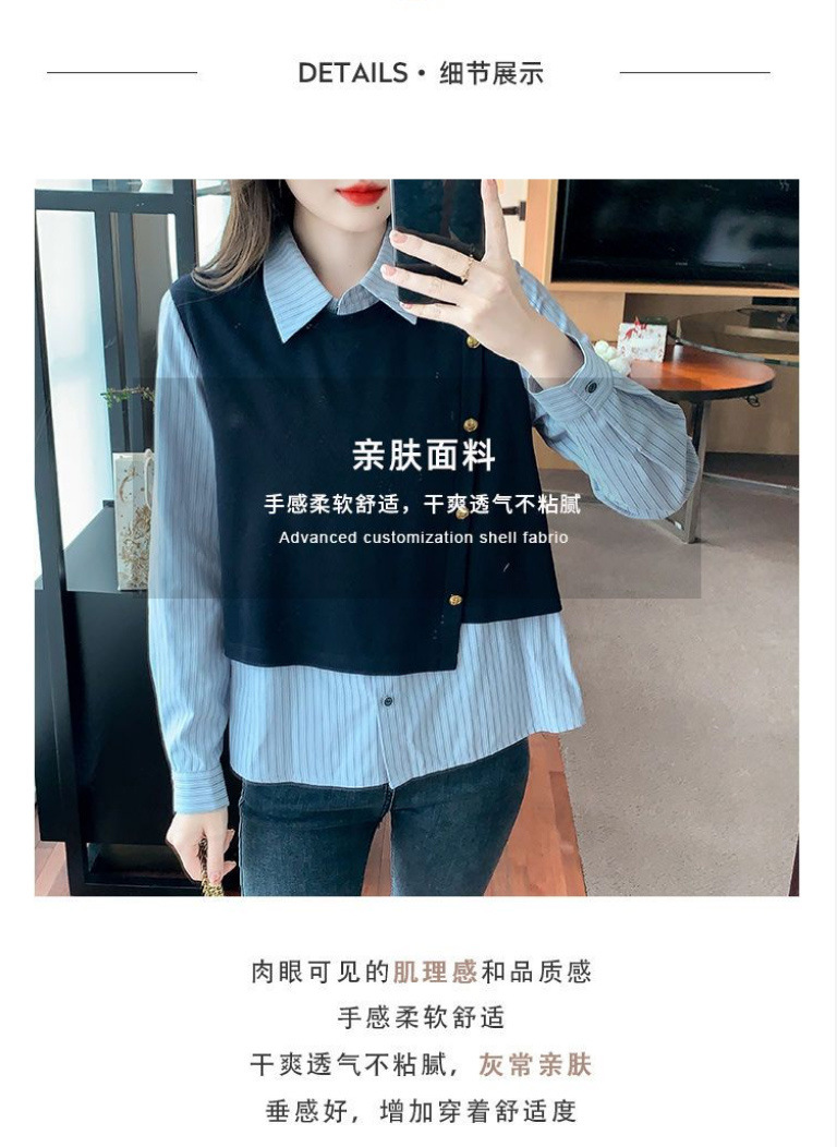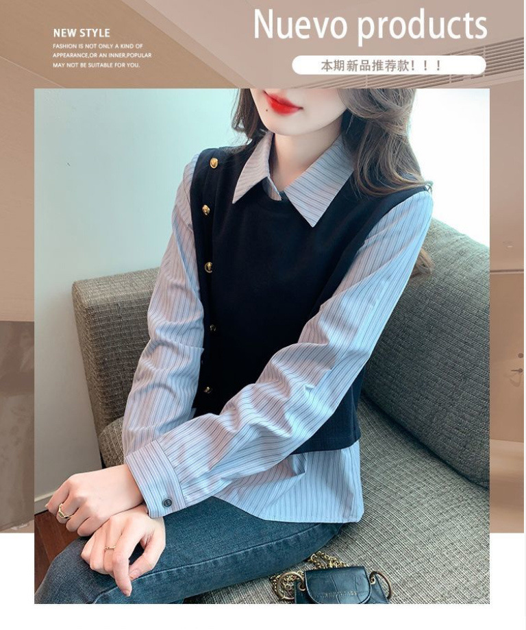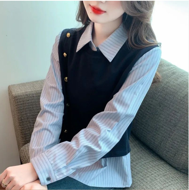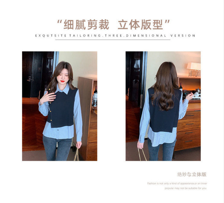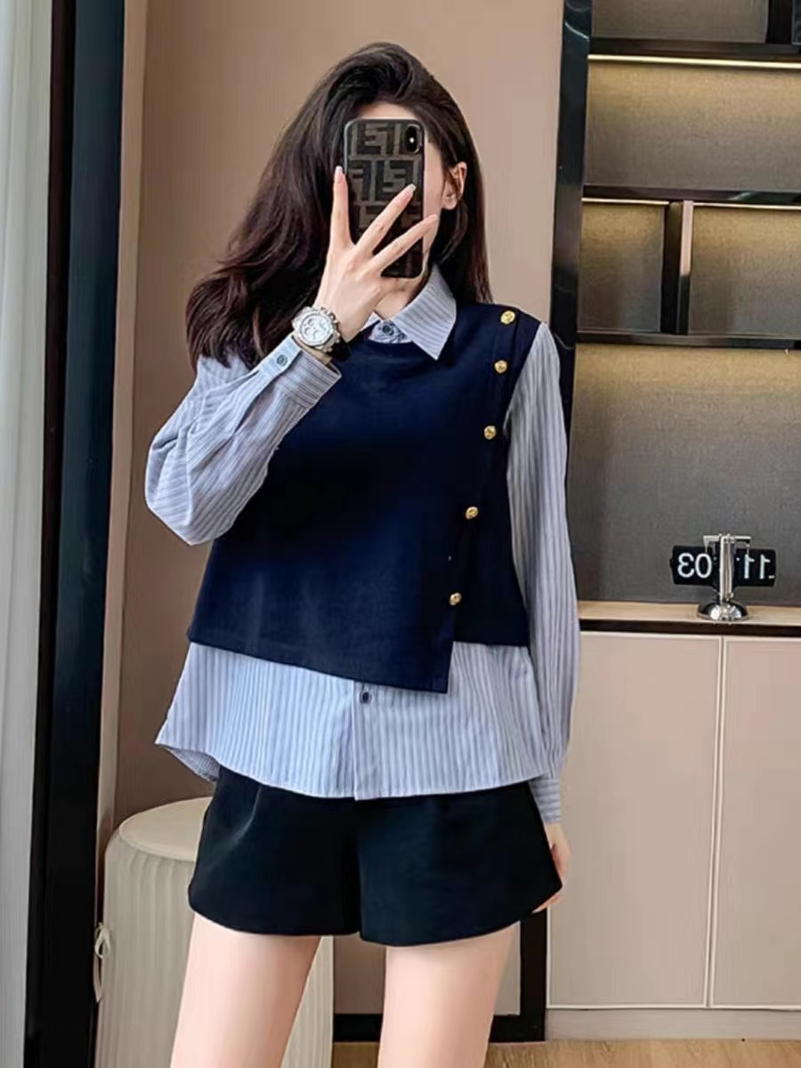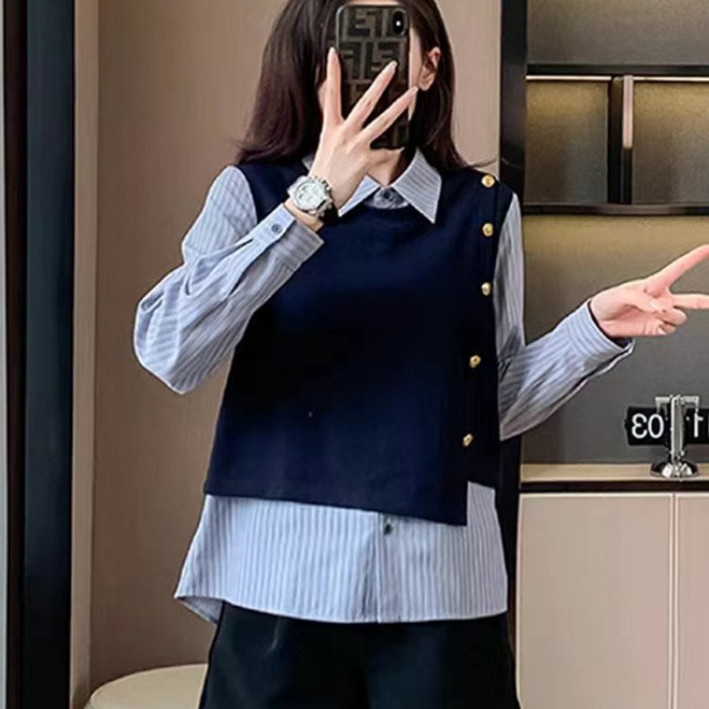 2025 새로운 가짜 투피스 줄무늬 셔츠 디자인 센스 틈새 올 매치 패션 탑스토어 가기