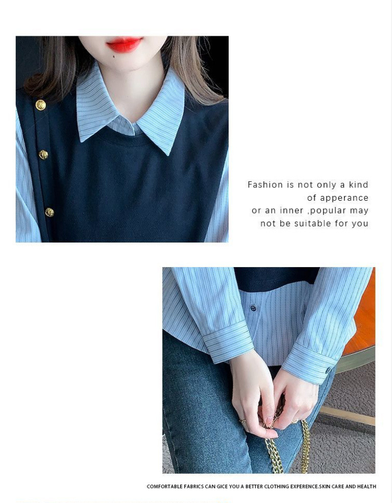 2025 새로운 가짜 투피스 줄무늬 셔츠 디자인 센스 틈새 올 매치 패션 탑