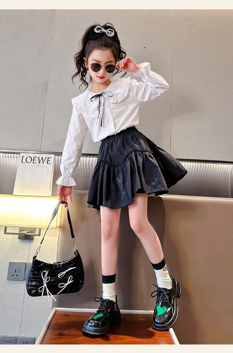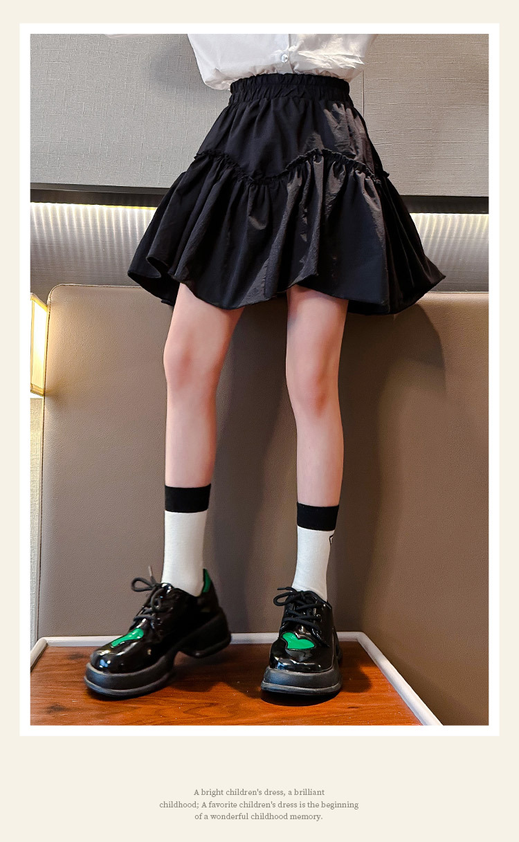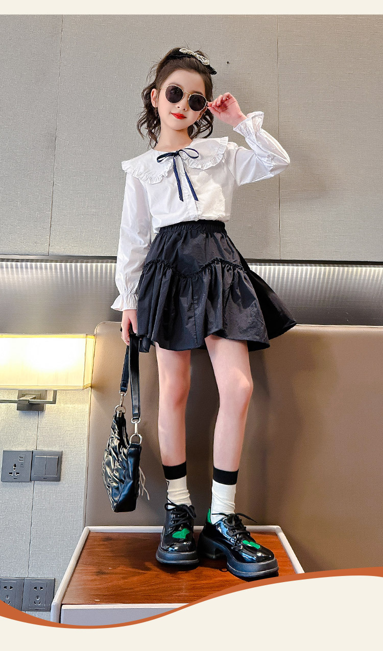 소녀 스커트 가을 원피스 여자 학술 스타일 A-라인 스커트 봄과 가을 다목적 대형 어린이 검은 판초 스커트