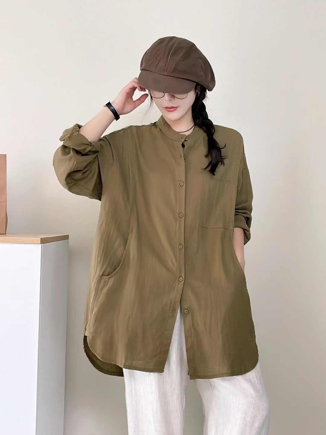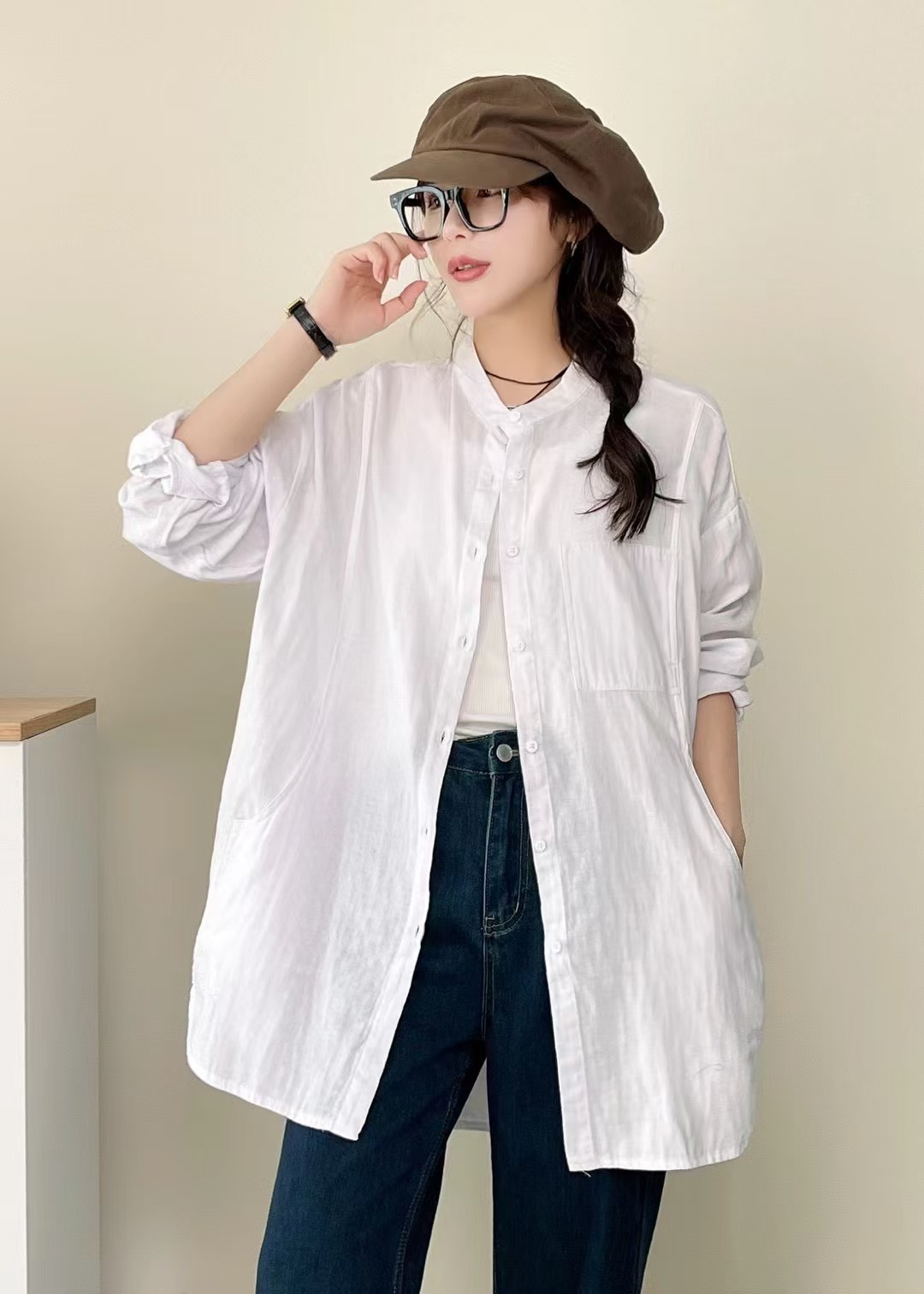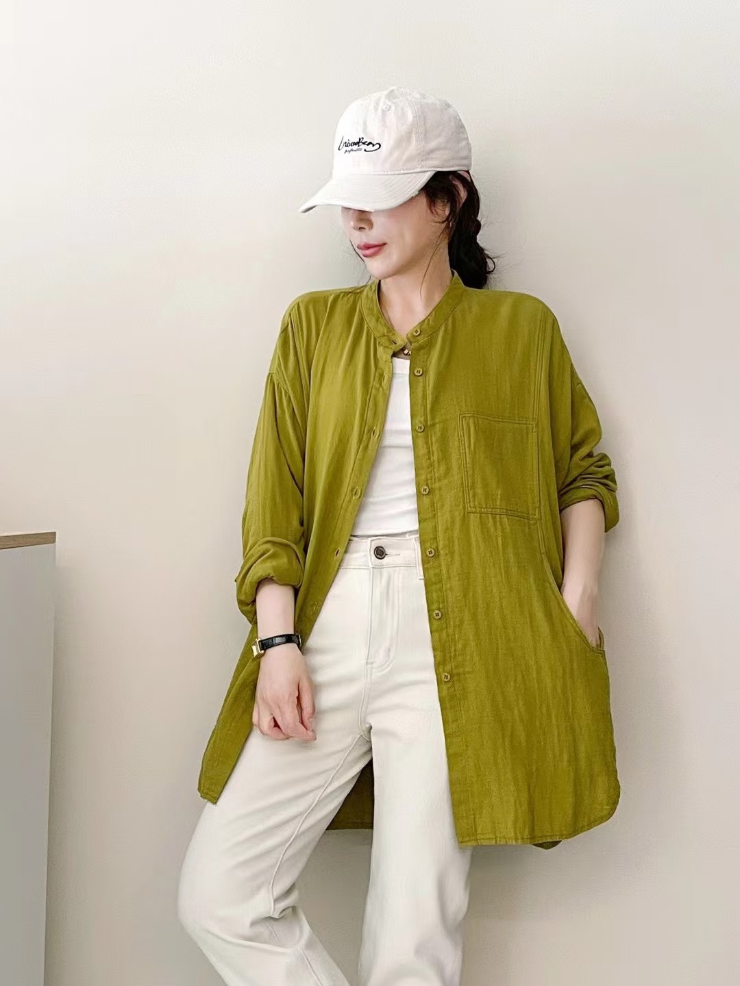 솔리드 컬러 코튼 원사 긴팔 셔츠 2025 예술적 일본 스타일 모리 여성 스타일 싱글 브레스트 느슨한 중간 길이 탑스토어 가기