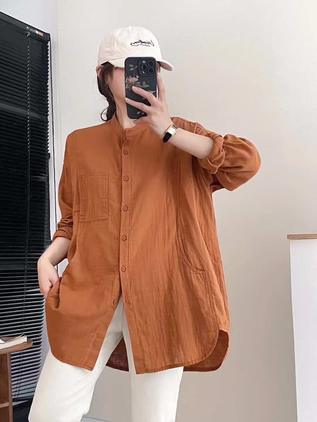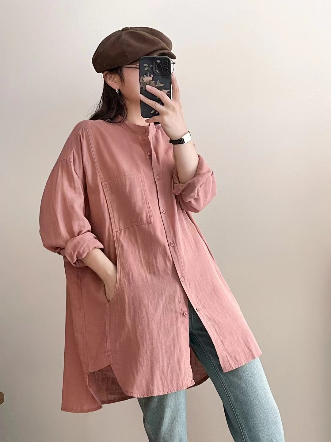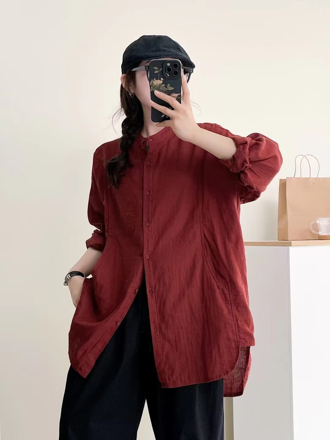 솔리드 컬러 코튼 원사 긴팔 셔츠 2025 예술적 일본 스타일 모리 여성 스타일 싱글 브레스트 느슨한 중간 길이 탑스토어 가기