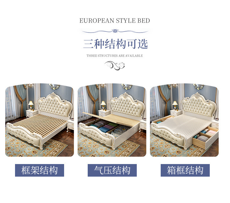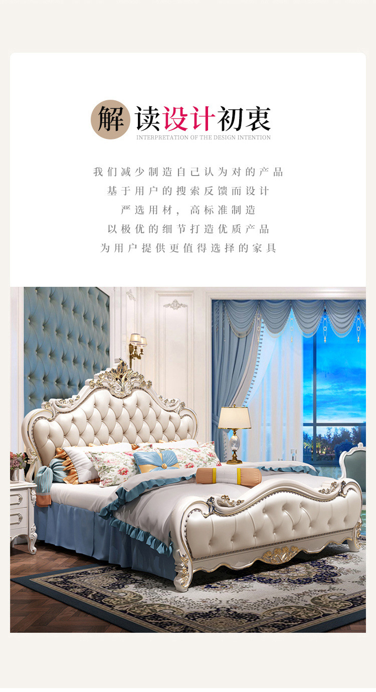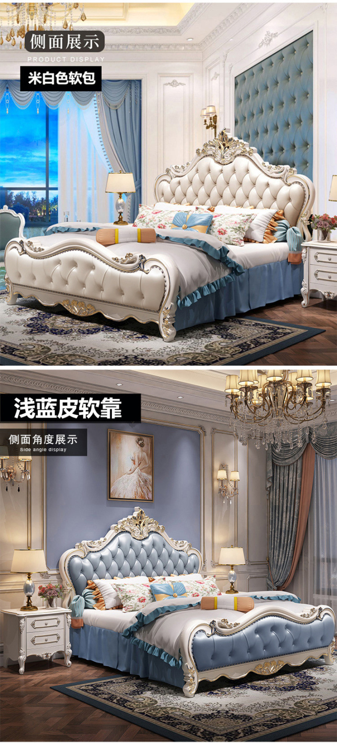 유럽 스타일의 단단한 나무 더블 침대 1.8m 가죽 부드러운 조각 공주 침대 프랑스 웨딩 침대 럭셔리 큰 유럽 마스터 침대스토어 가기